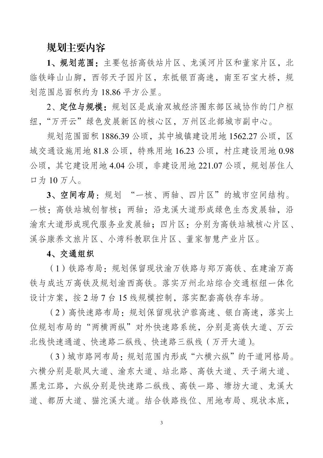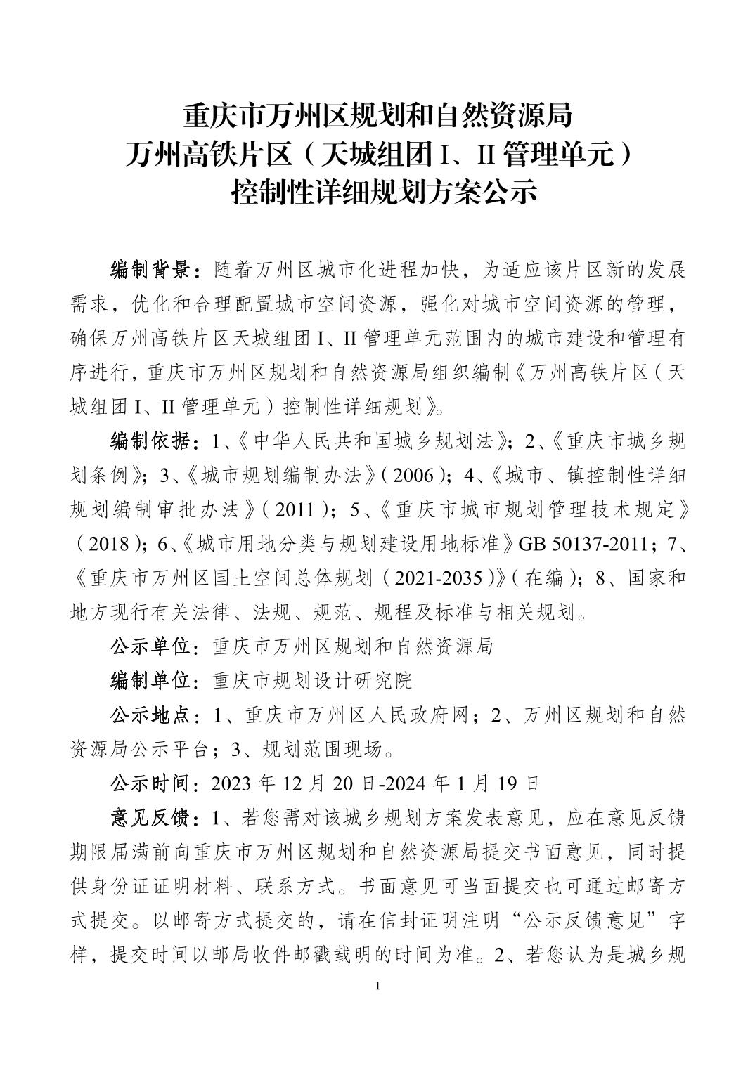 万州高铁片区(天城组团I、II 管理单元) 控制性详细规划方案公示