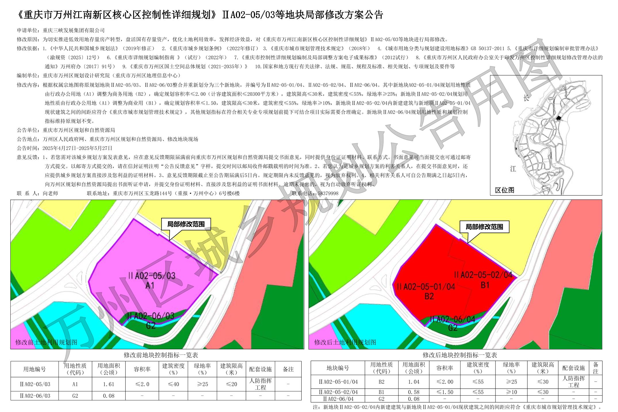《重庆市万州江南新区核心区控制性详细规划》ⅡA02-05/03等地块局部修改方案公告