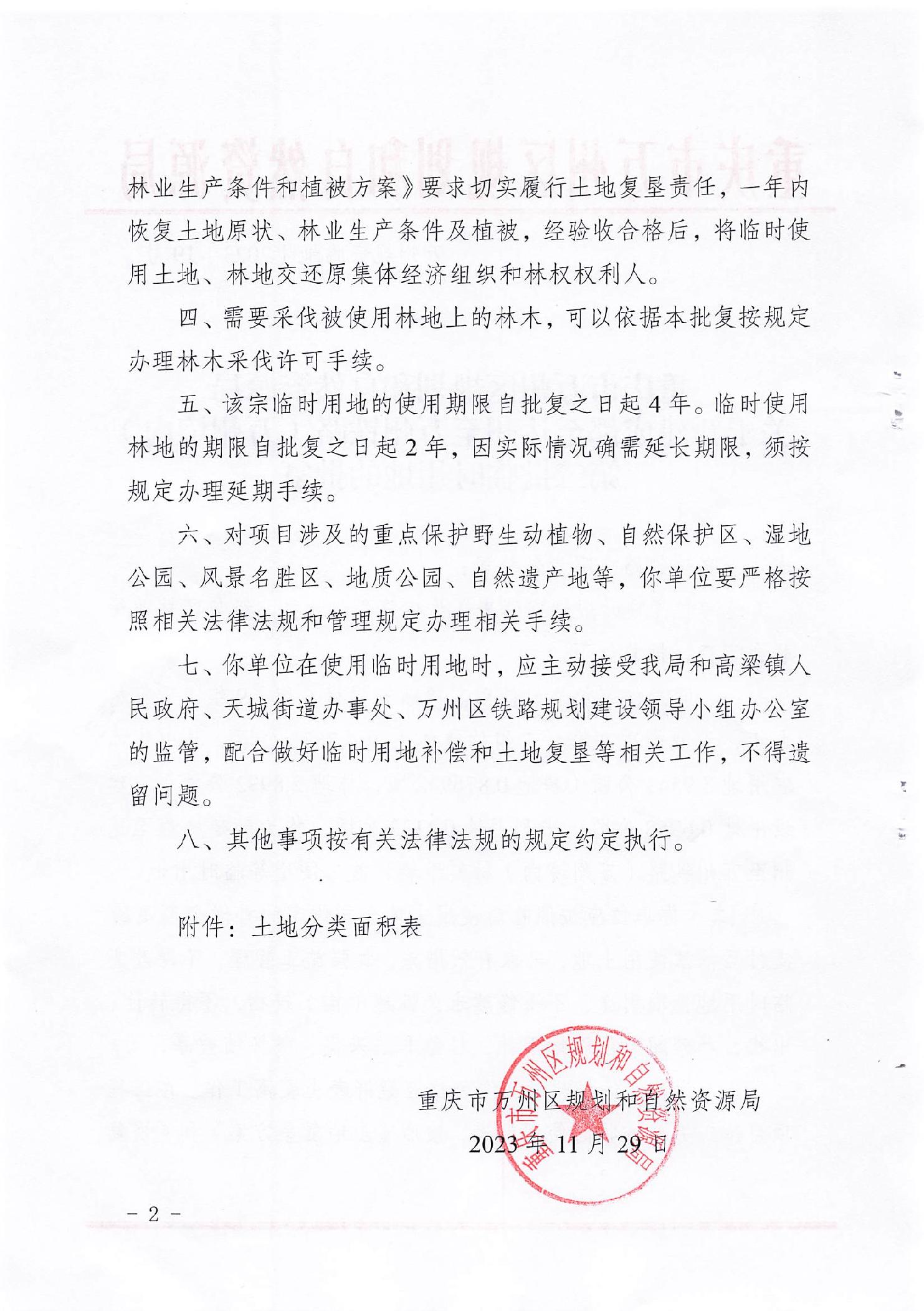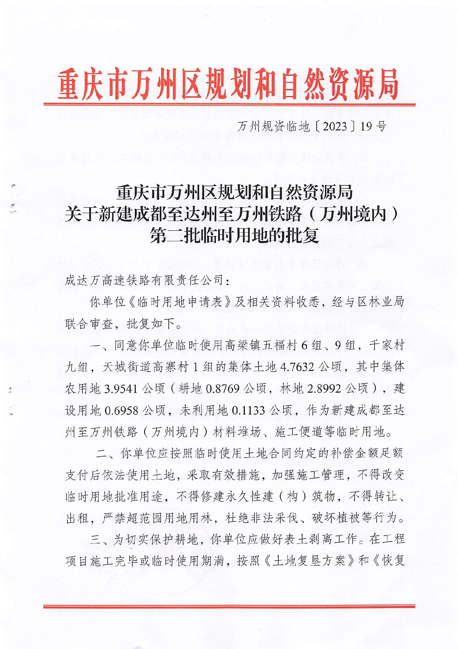 关于新建成都至达州至万州铁路(万州境内)第二批临时用地的批复