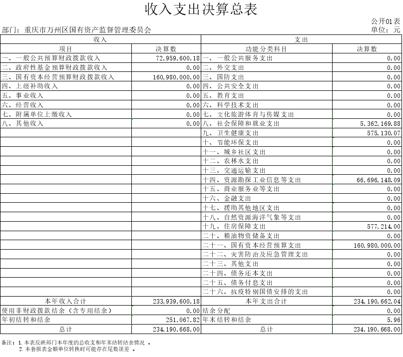 重庆市万州区国有资产监督管理委员会2024年度部门决算情况说明