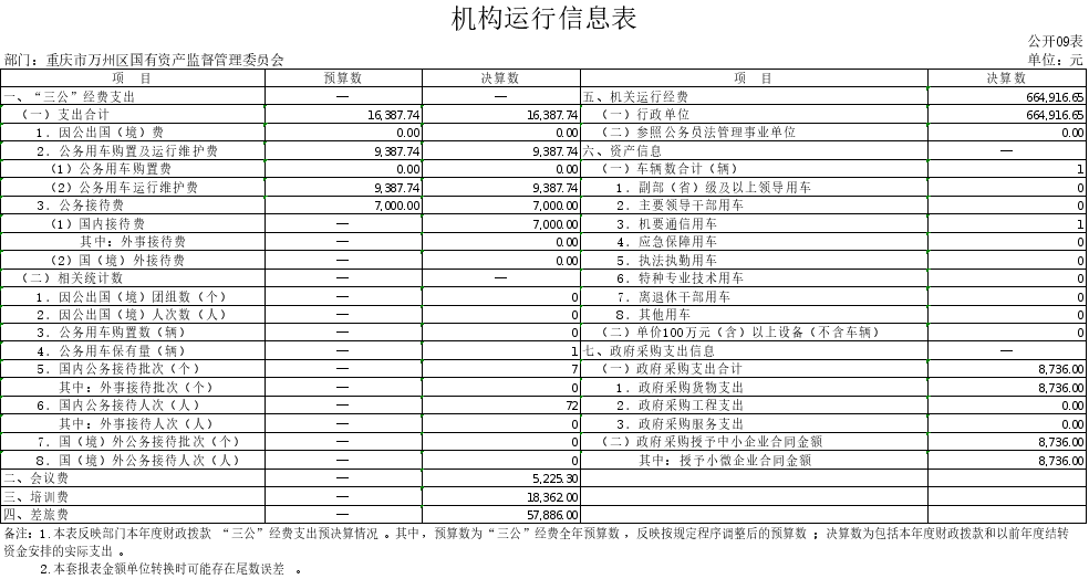 公务车运行维护费0.94万元,主要用于机要文件交换、应急、乡村振兴帮扶等工作所需车辆的燃料费、维修费、过路费、保险费等。费用支出较年初预算数减少2.06万元,下降68.67%,主要原因是严格执行公务车使用管理规定,且现公务车为新购置的新能源电动车,燃料及维修费用大幅下降。较2023年支出数减少1.46万元,下降60.83%,主要原因是严格执行公务车使用管理规定,且现公务车为新购置的新能源电动车,燃料及维修费用大幅下降。公务接待费0.70万元,主要用于国资监管机构的学习、考察、调研等公务活动支出,接待全国脱贫人口就业帮扶工作推进会嘉宾,重庆市国企、民企、外企“三企”联动万州行活动支出,费用支出较年初预算数持平,无增减,主要原因是严格执行公务接待相关规定,控制公务接待费用。较2023年支出数增加0.4万元,增长133.33%,主要原因是2024年度国资监管行业学习交流活动增加。