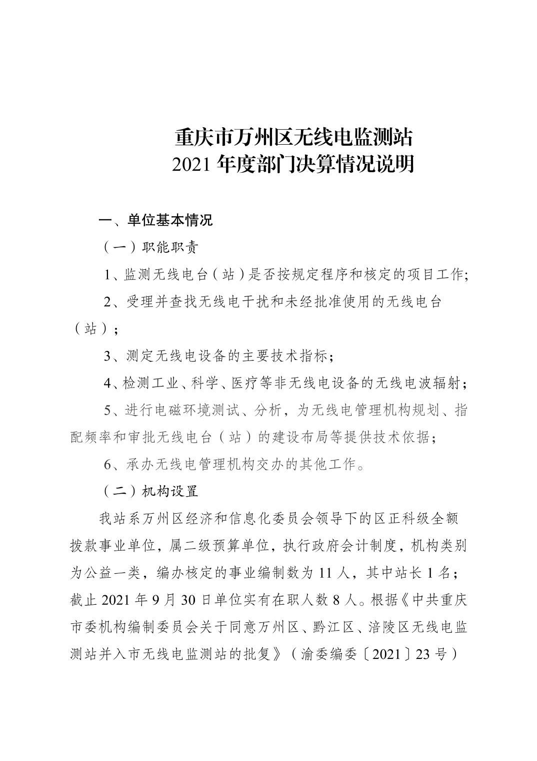 重庆市万州区无线电监测站2021年决算公开情况说明