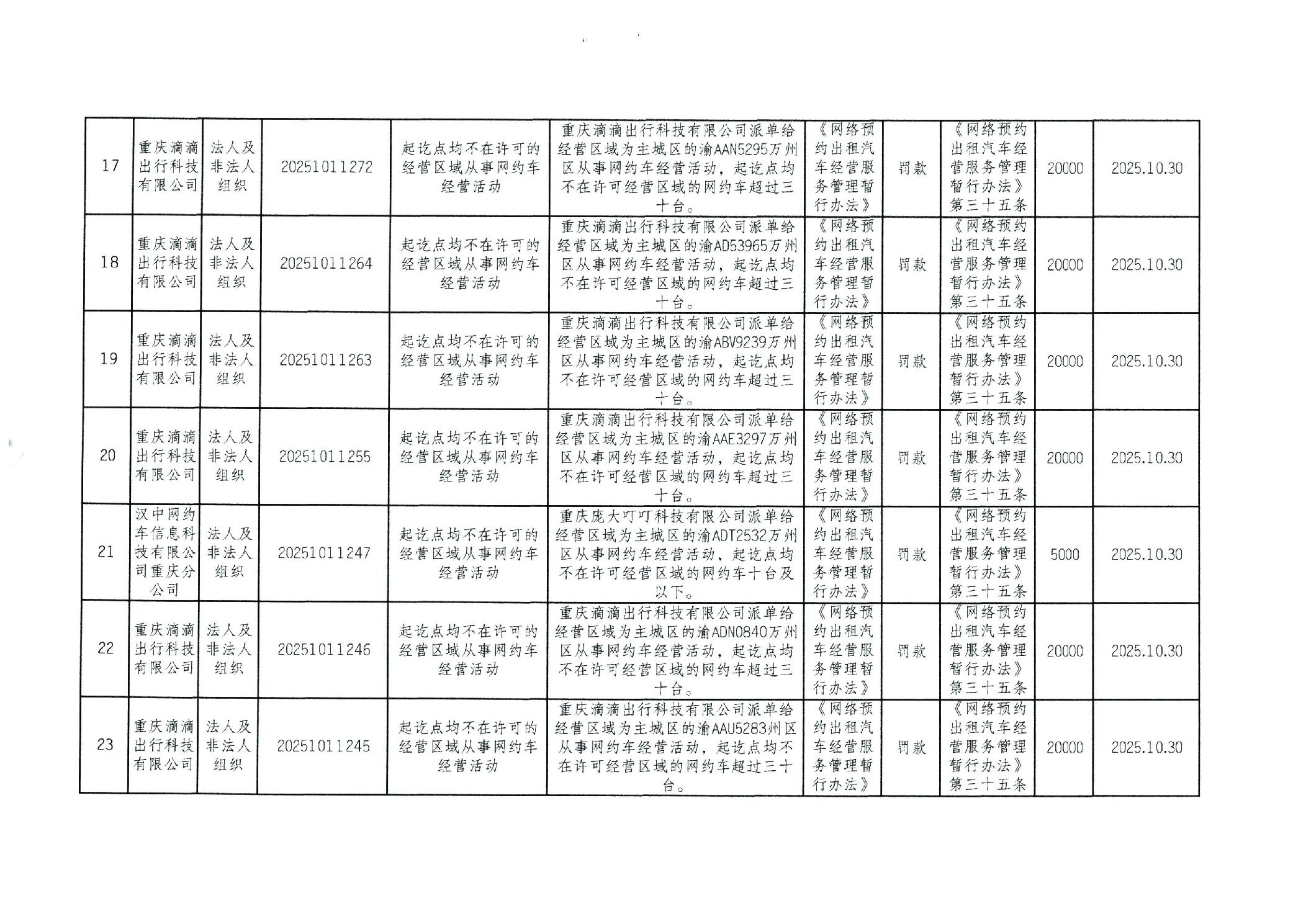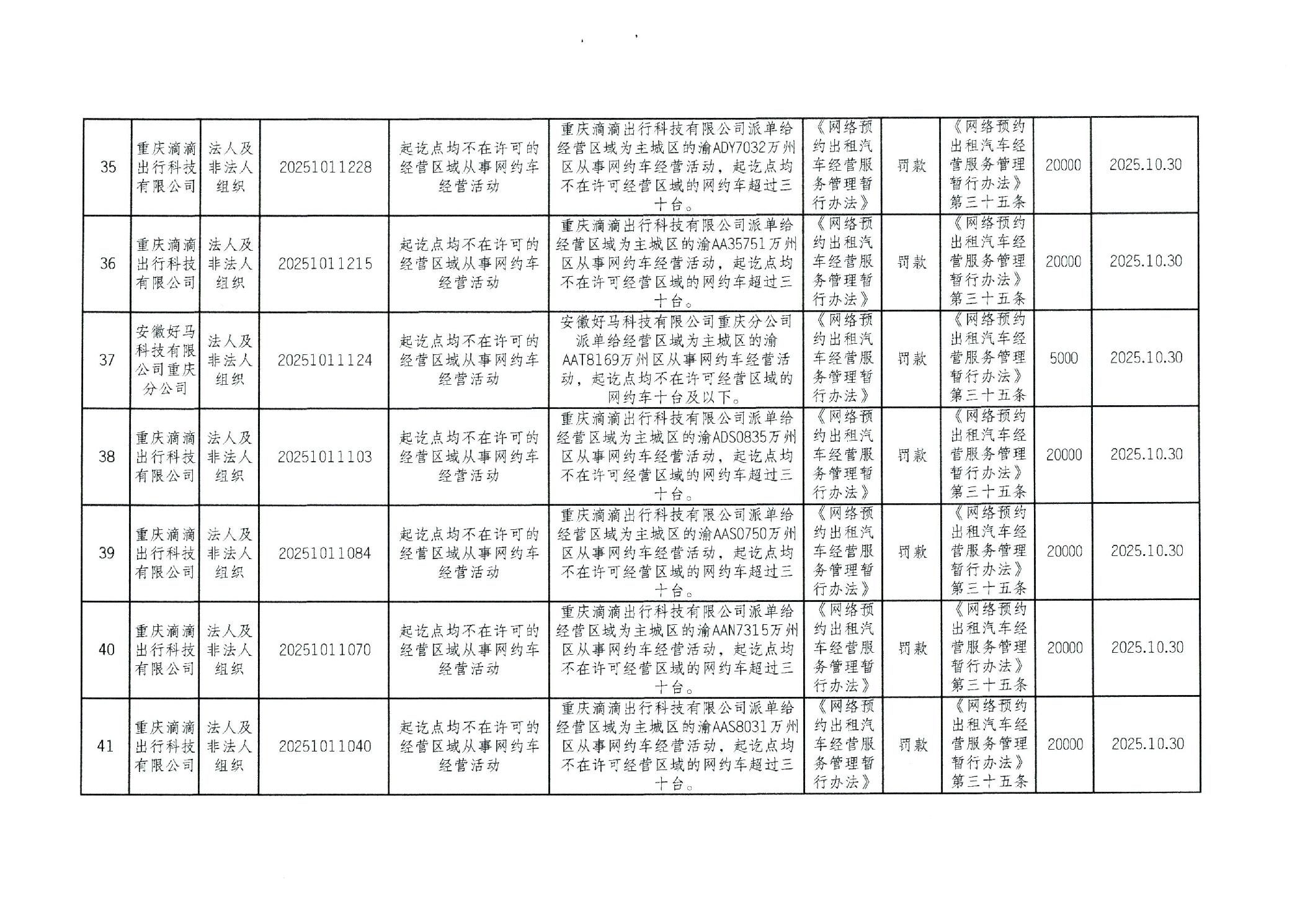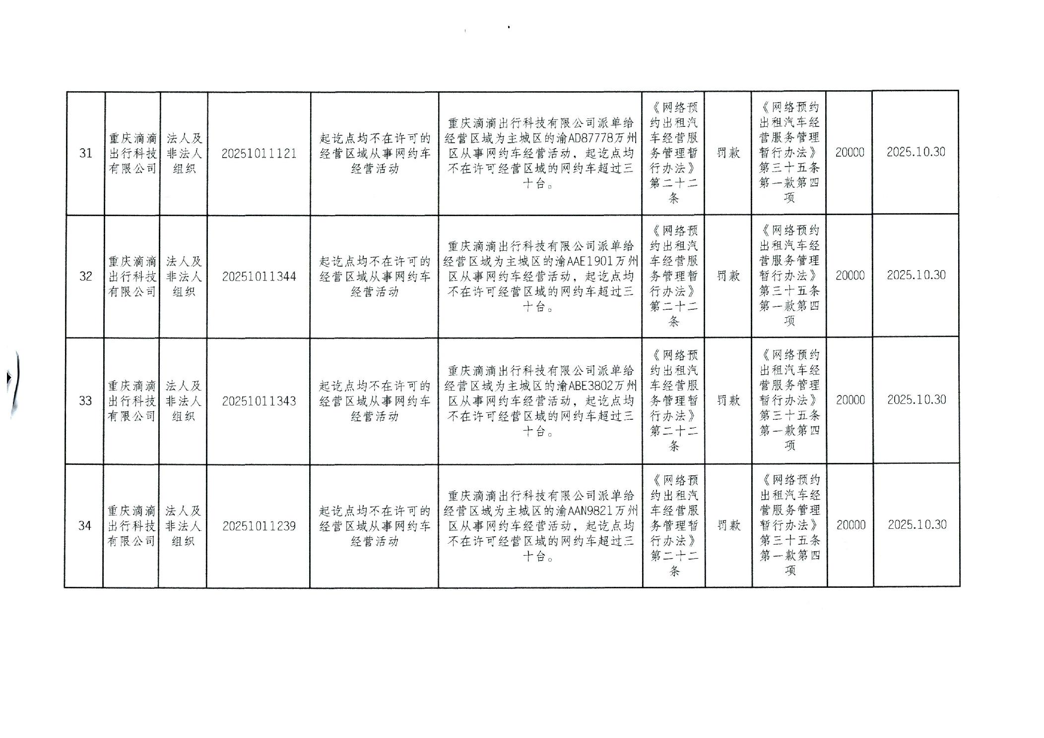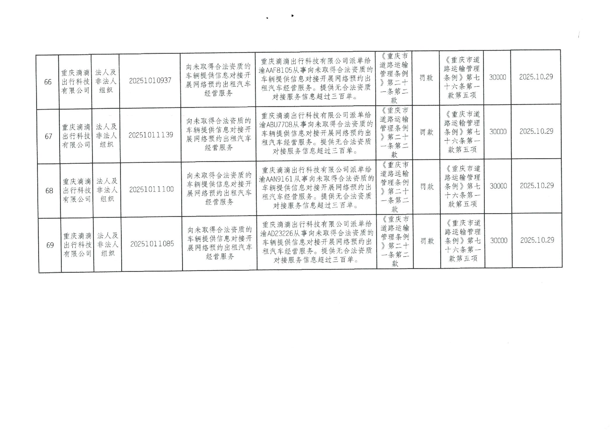 重庆市万州区交通系统较大数额行政处罚信息(2025年10月)
