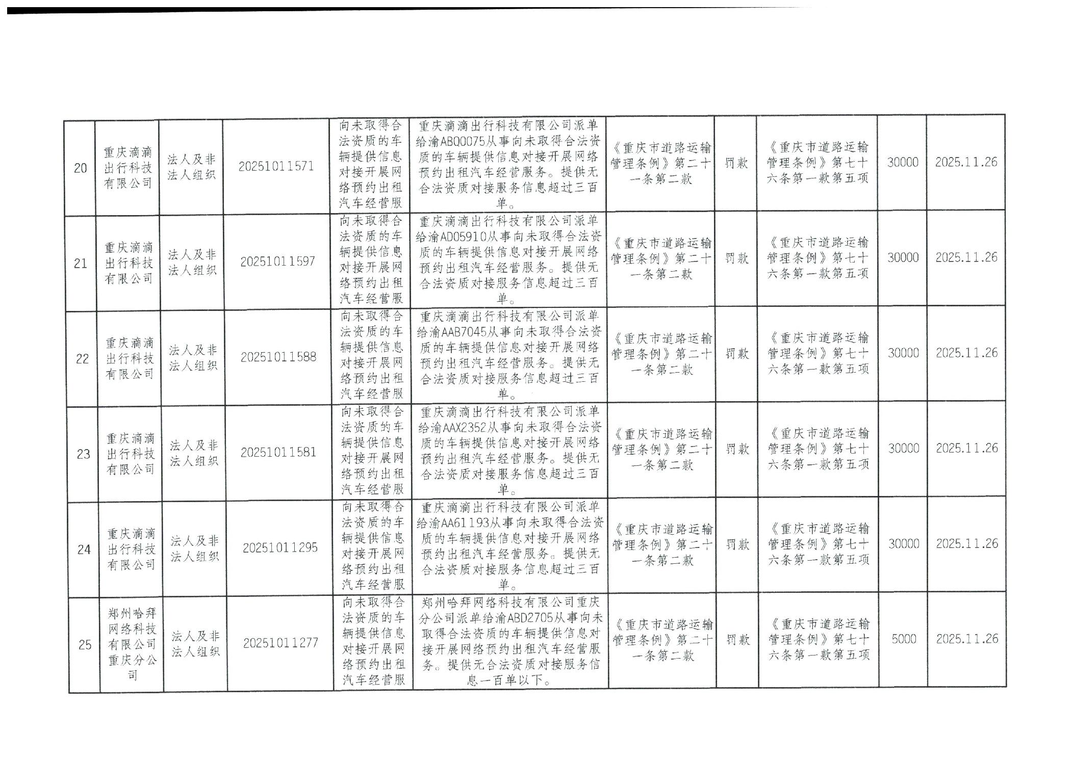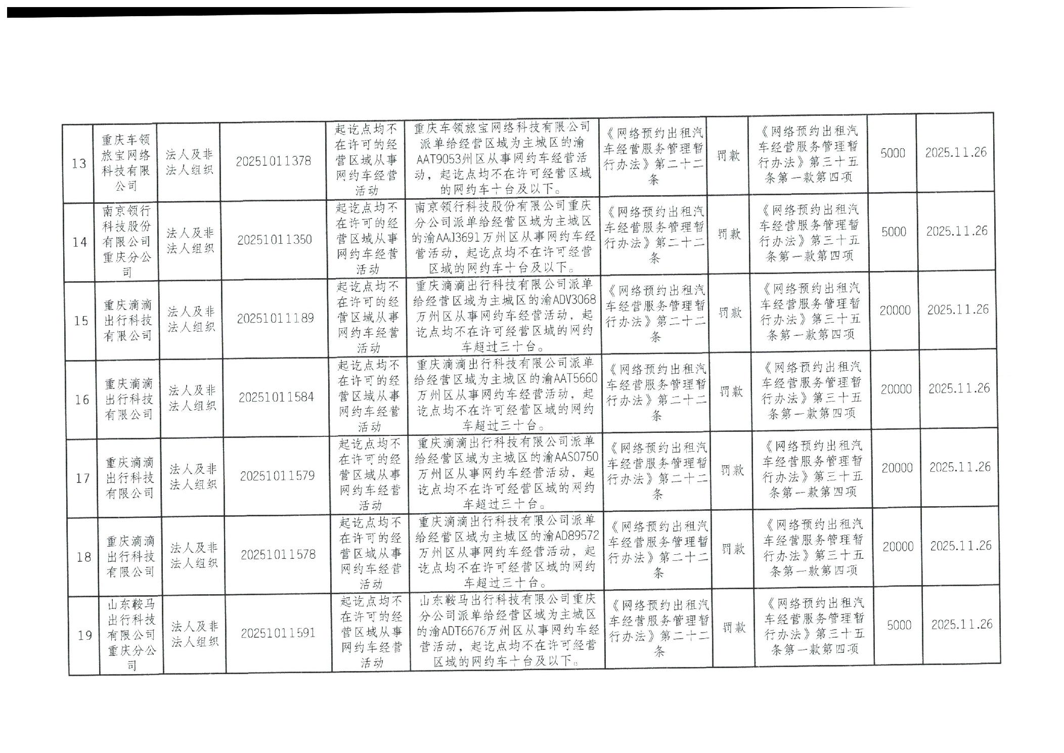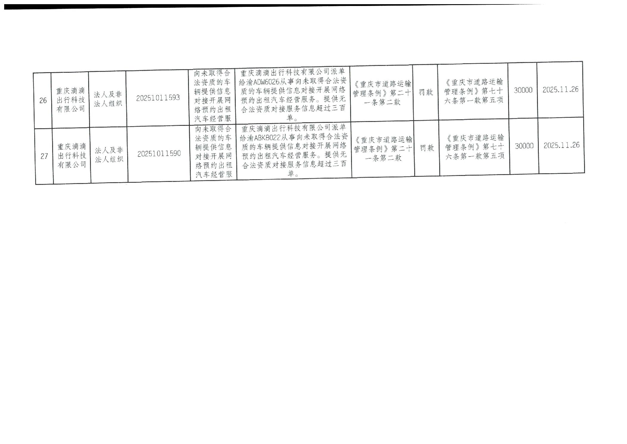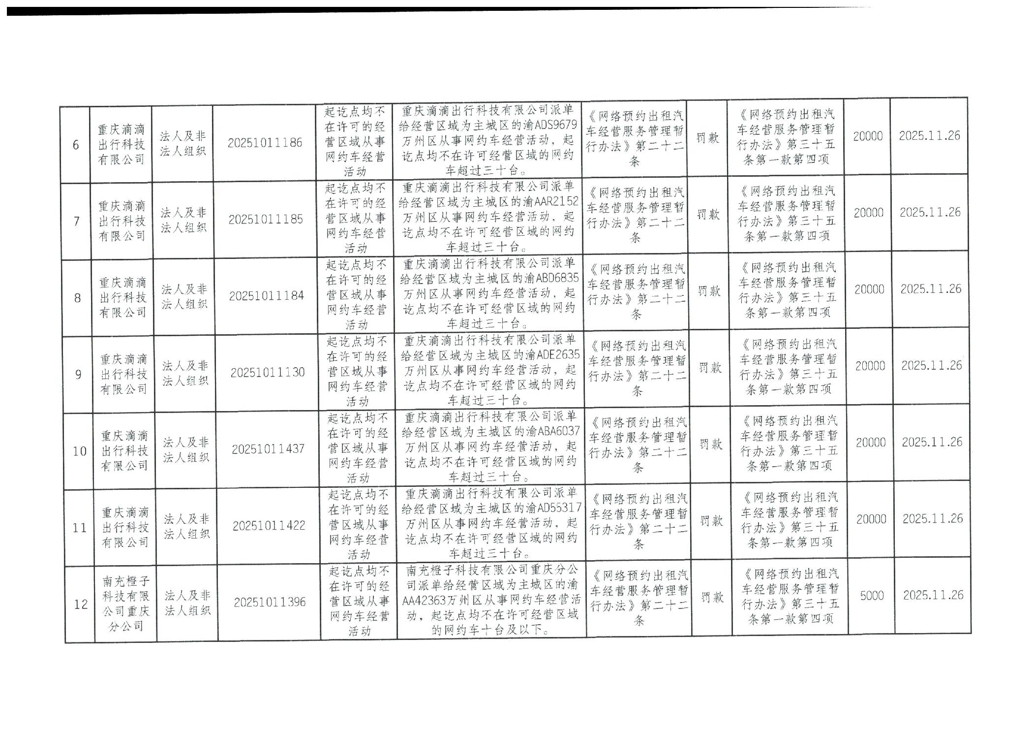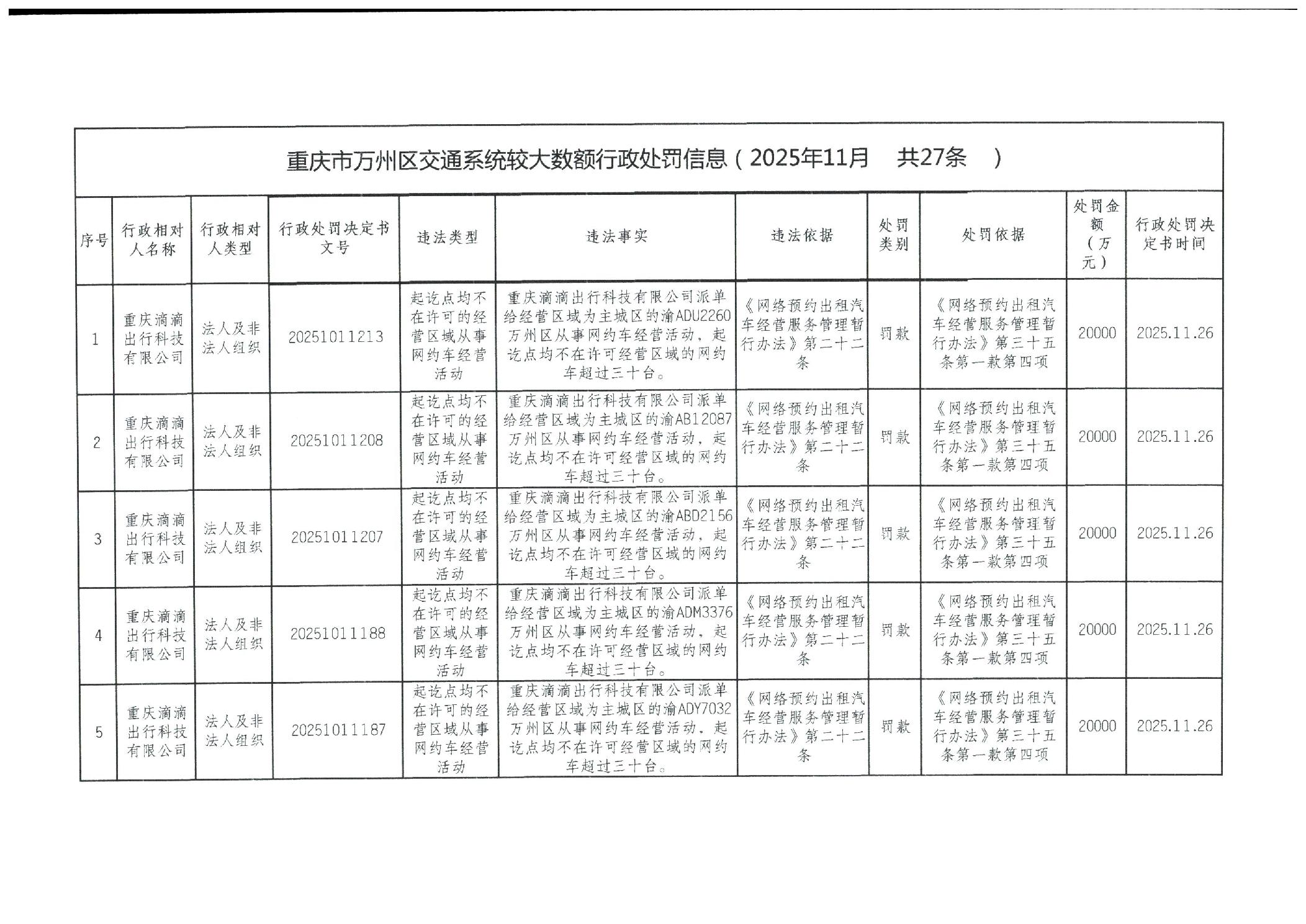 重庆市万州区交通系统较大数额行政处罚信息(2025年11月)
