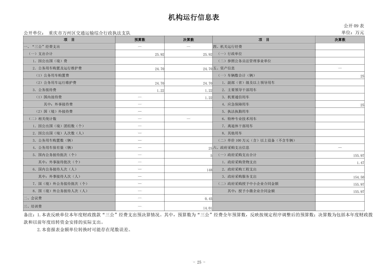 重庆市万州区交通运输综合行政执法支队2023年决算公开说明及公开报表