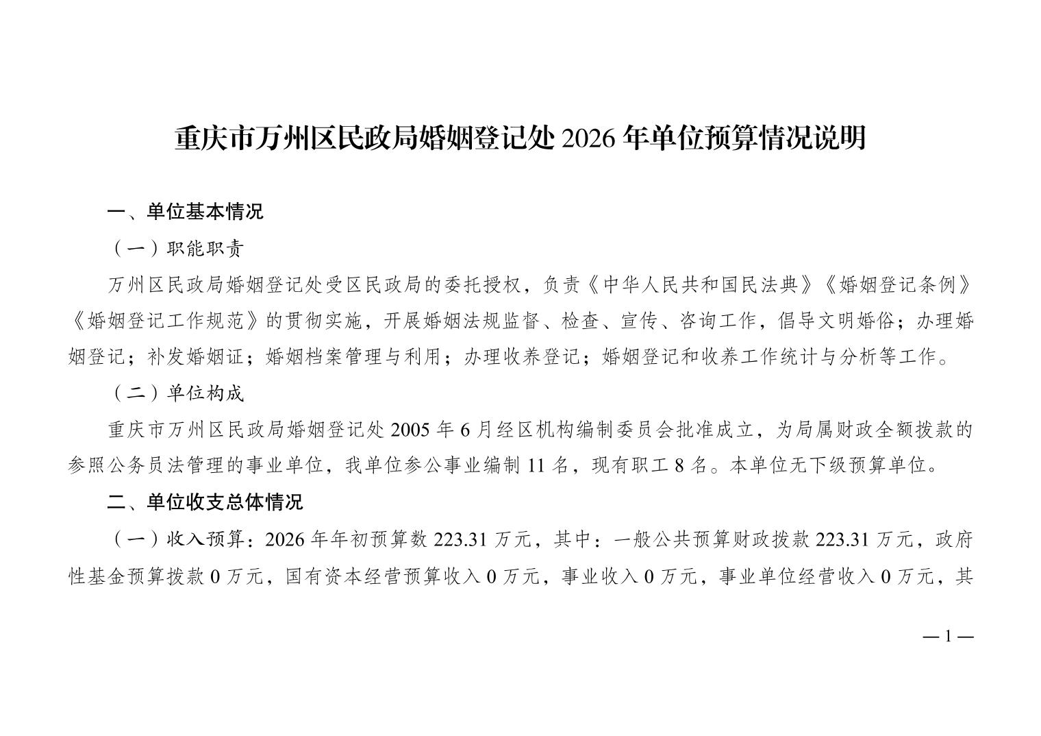 重庆市万州区民政局婚姻登记处2026年单位预算情况说明