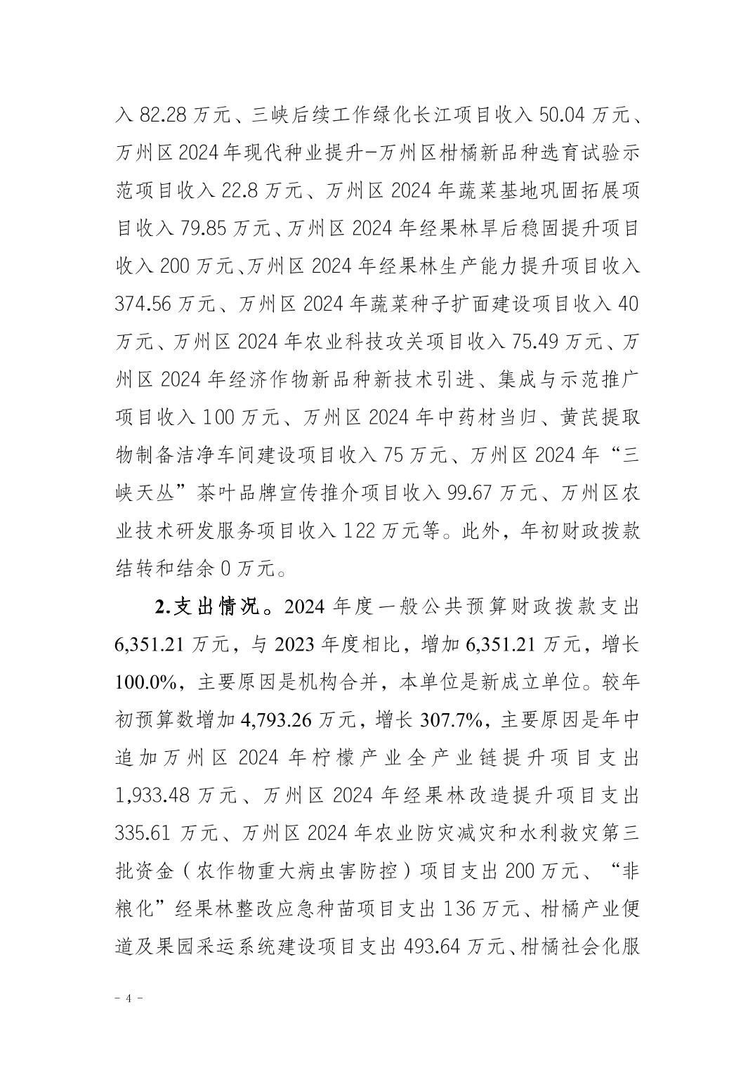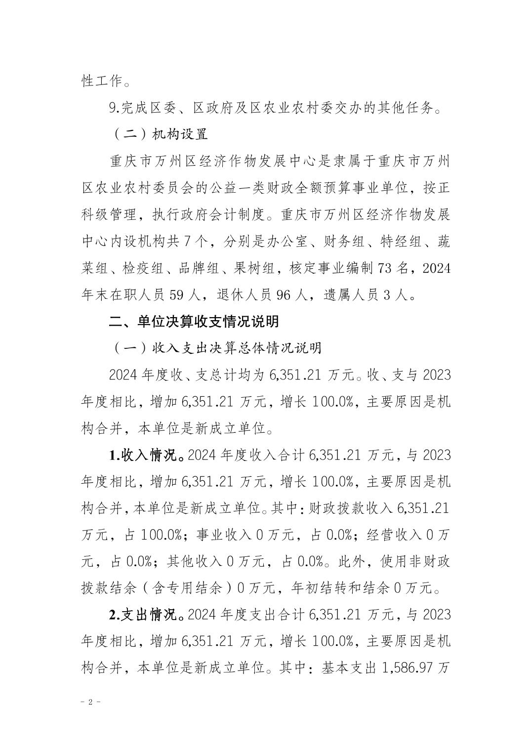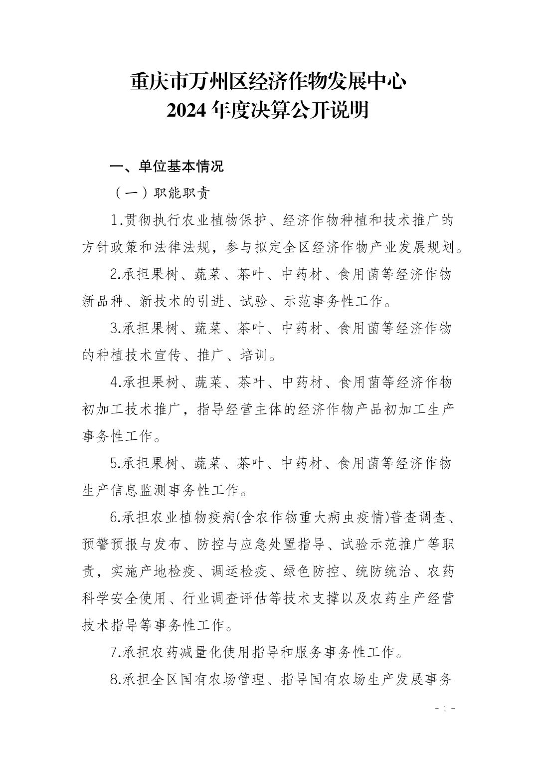 重庆市万州区经济作物发展中心2024年决算公开说明及公开报表
