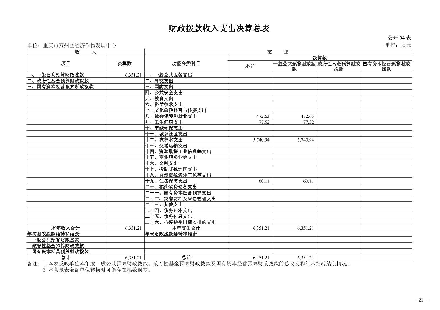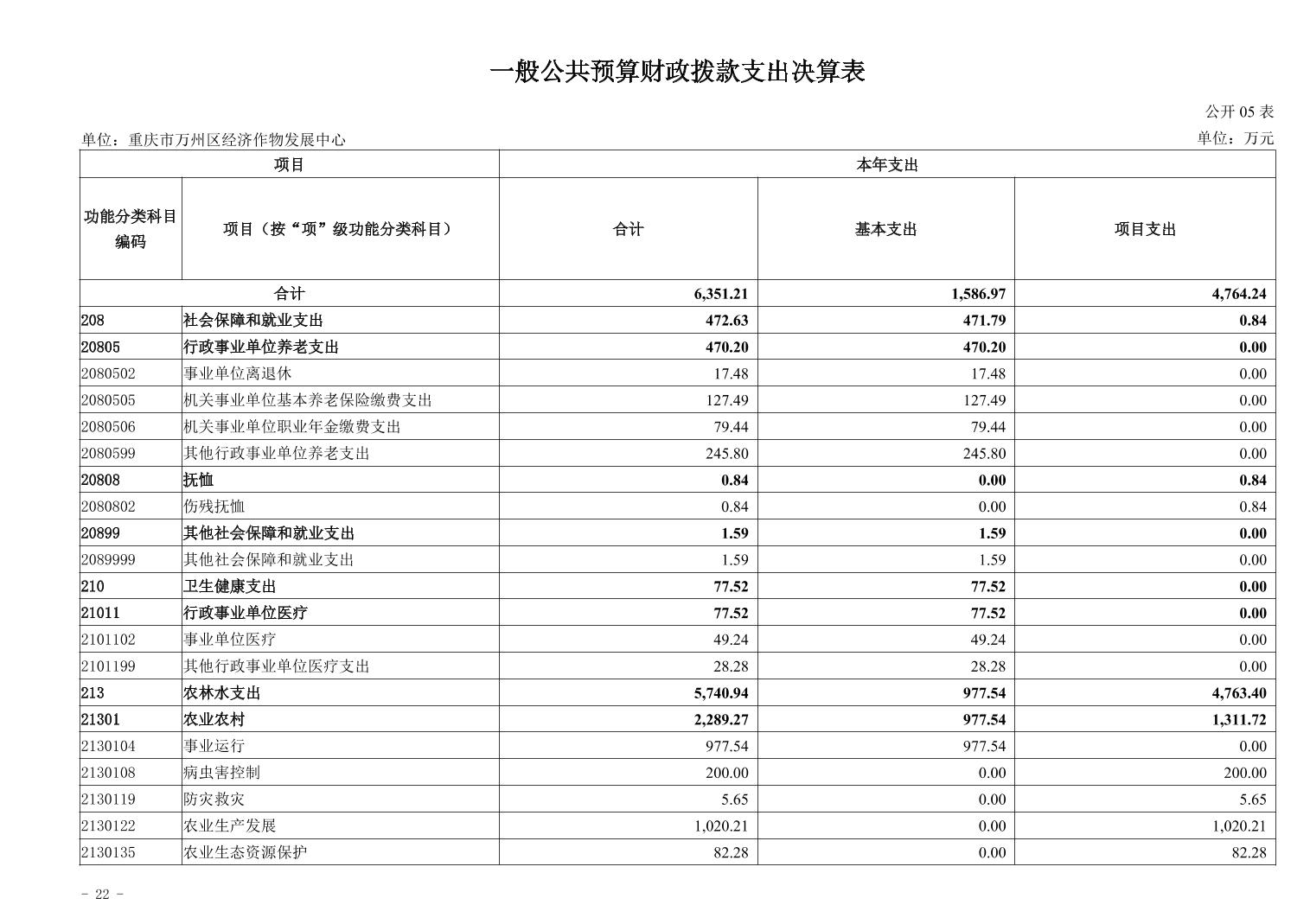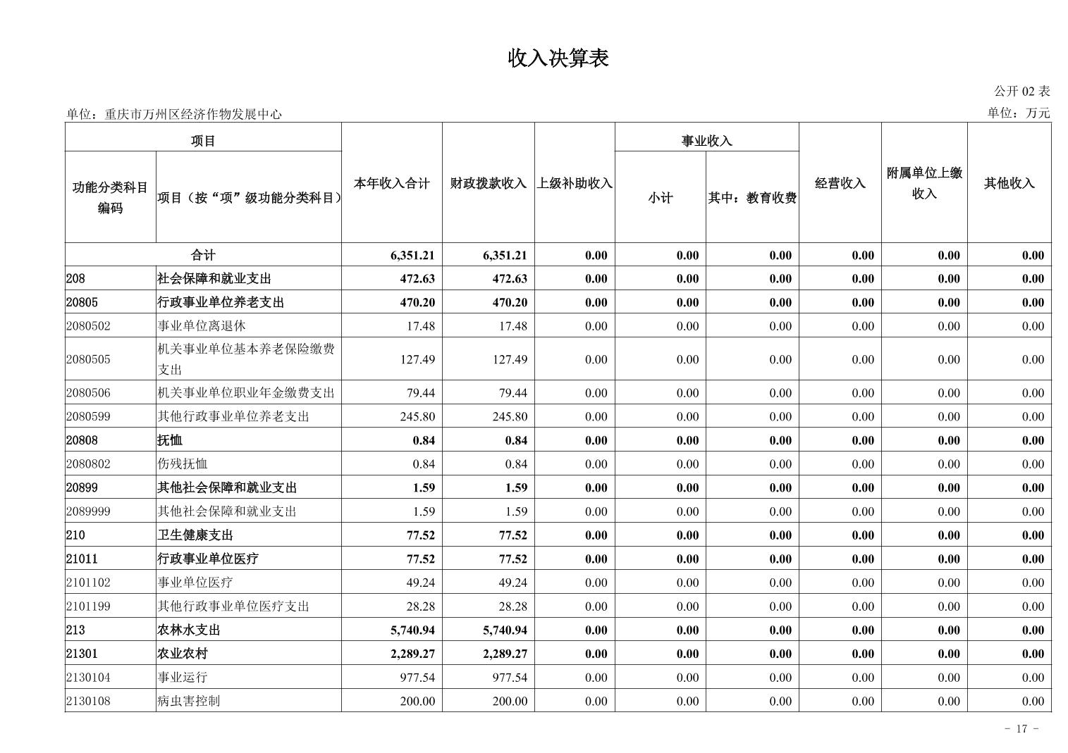 重庆市万州区经济作物发展中心2024年决算公开说明及公开报表