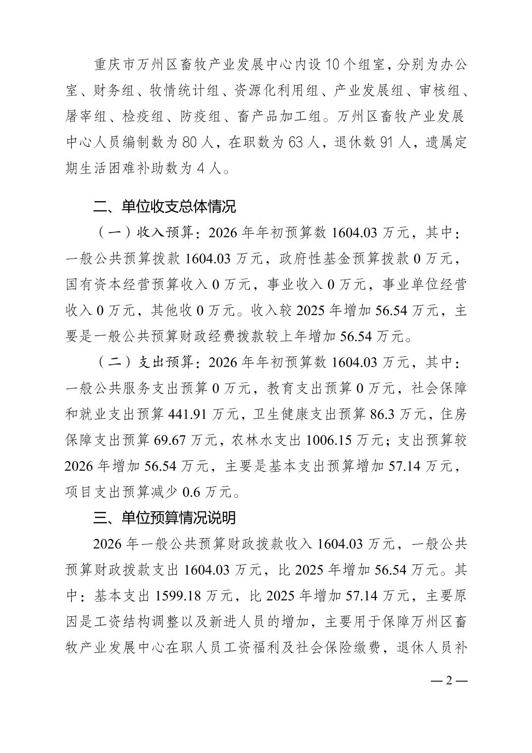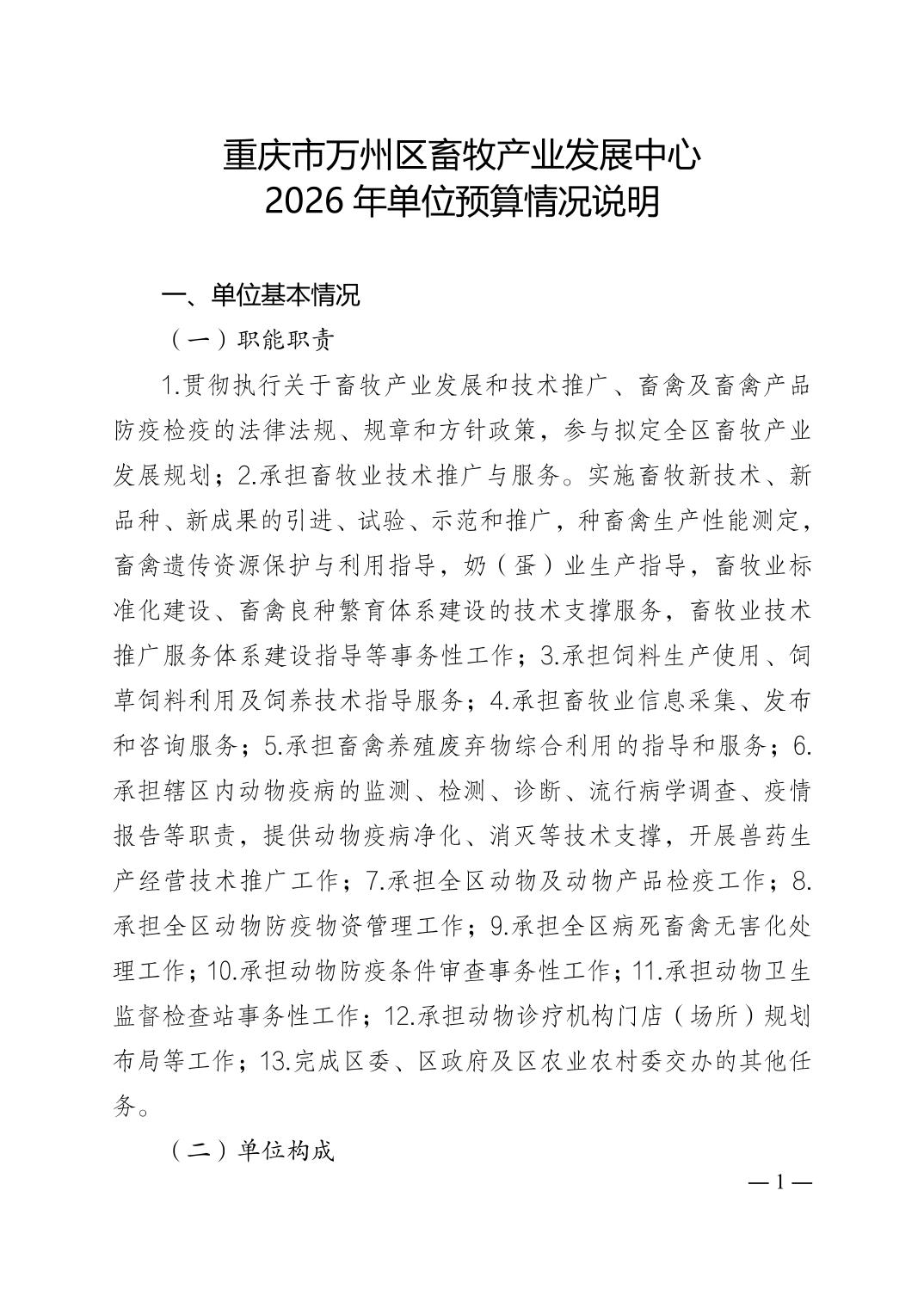 重庆市万州区畜牧产业发展中心2026年单位预算公开说明及预算附表