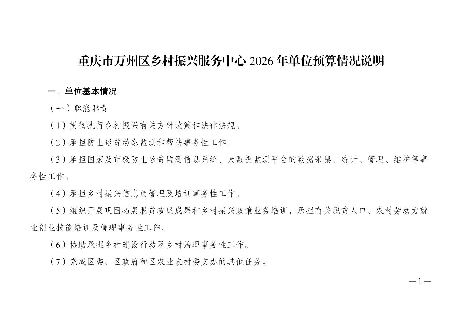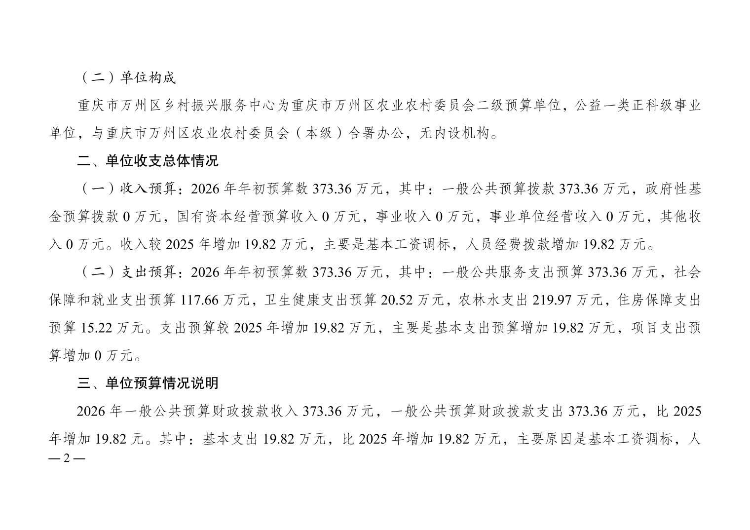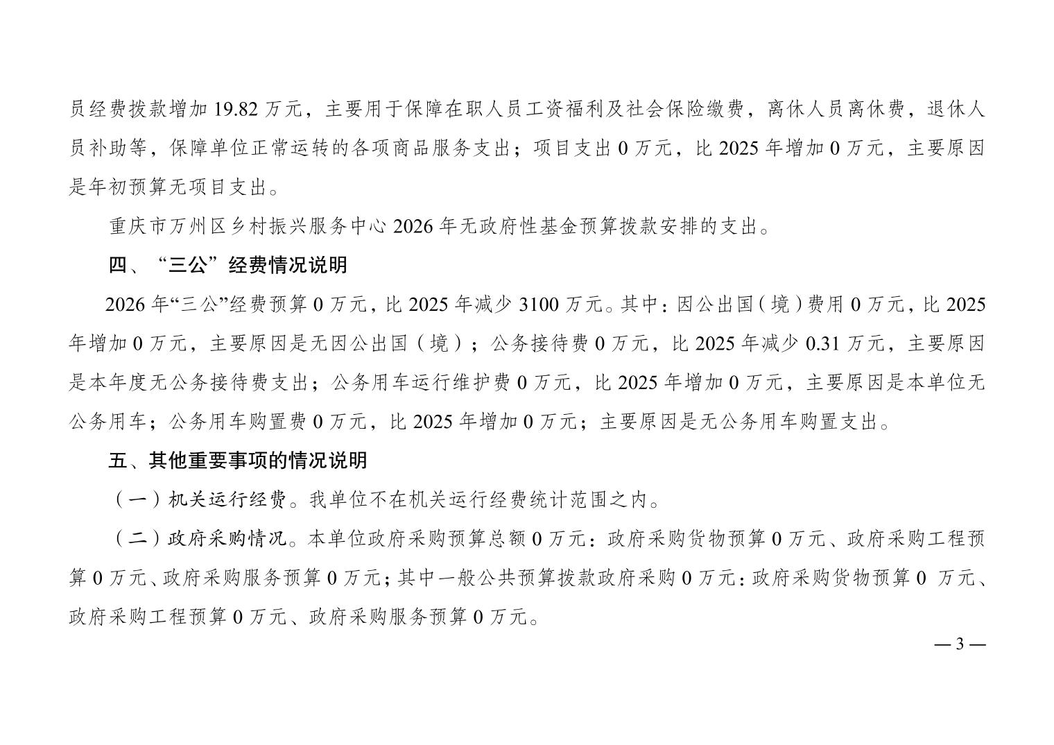重庆市万州区乡村振兴服务中心2026年单位预算公开说明及预算附表