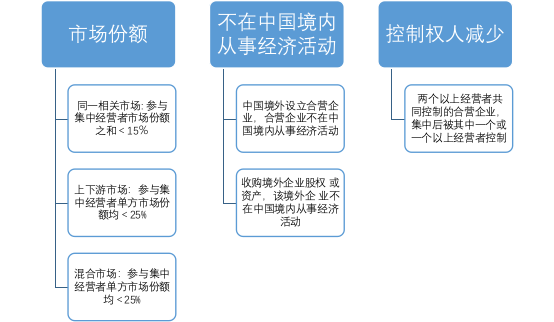 (二)参与集中的每个经营者50%以上有表决权的股份或者资产被同一个未参与集中的经营者拥有的。