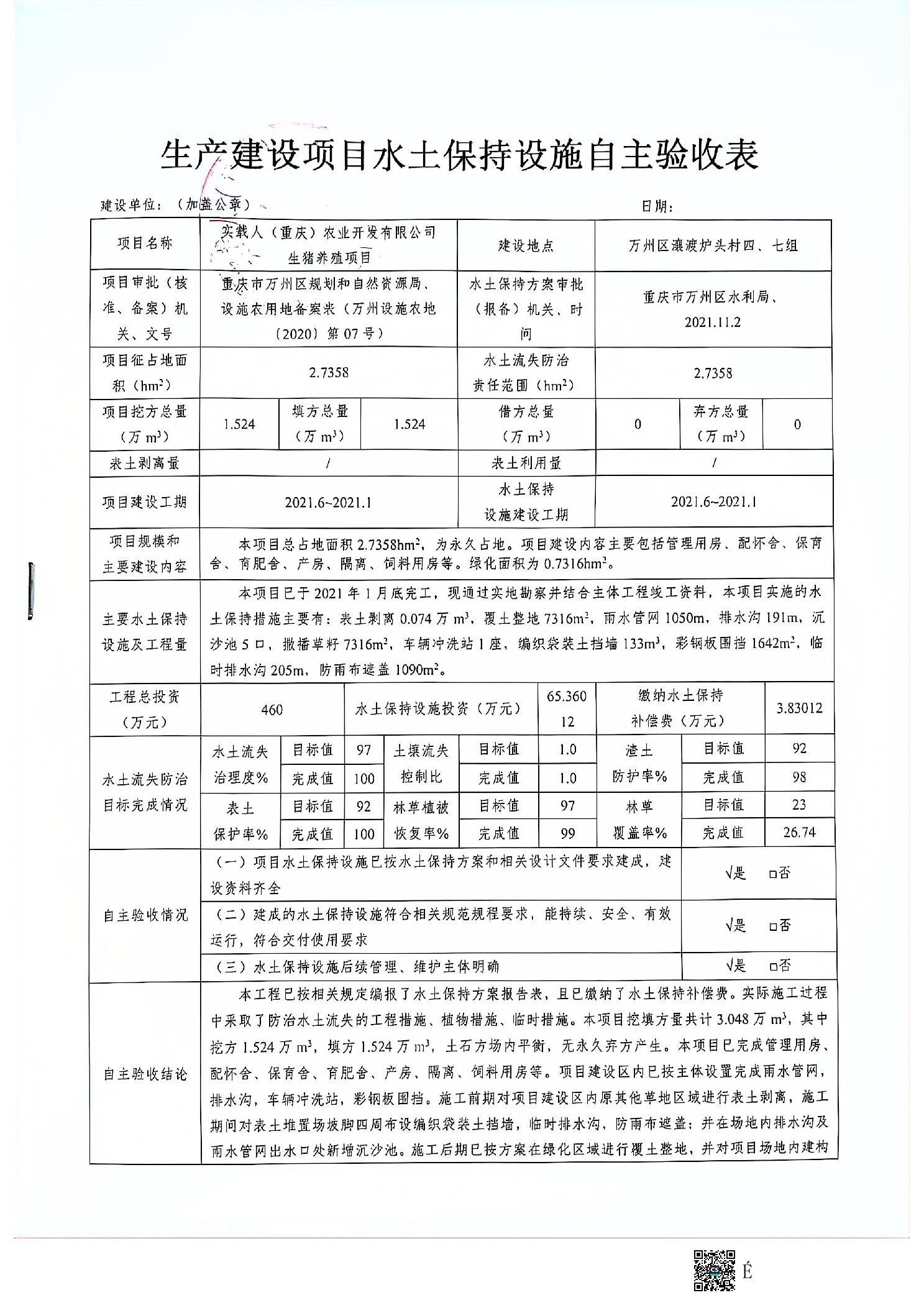 万州区生产建设项目水土保持设施自主验收公示(实载人(重庆)农业开发有限公司生猪养殖项目)