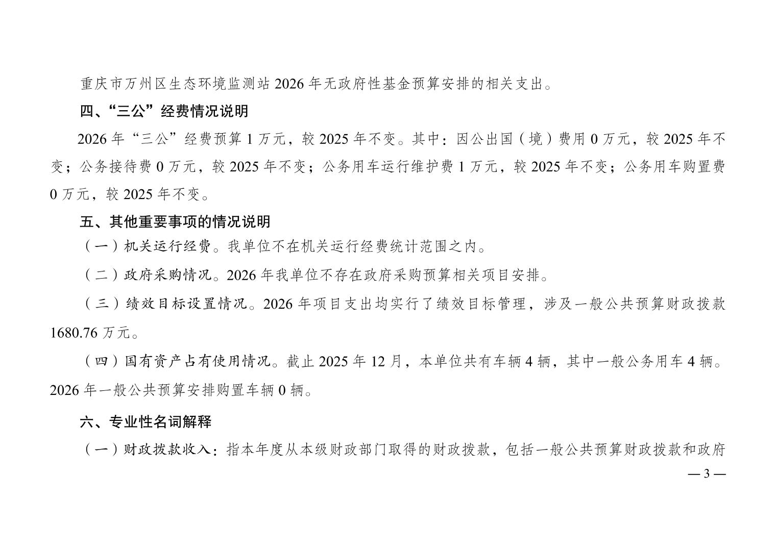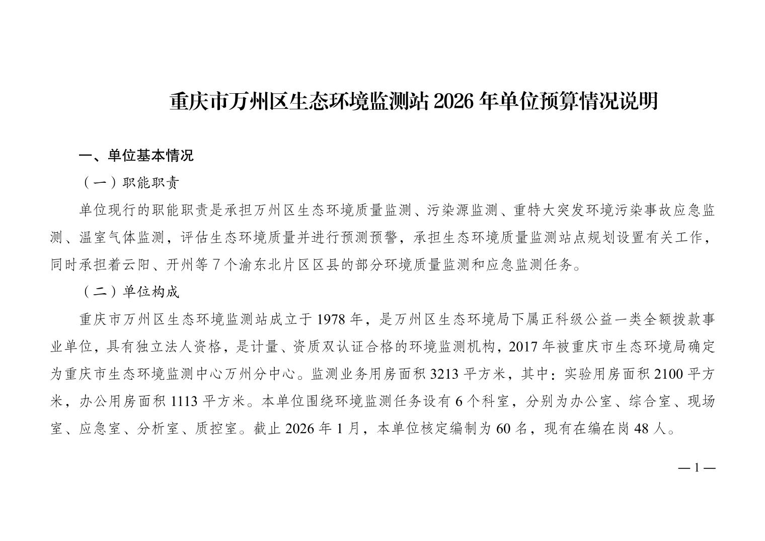 重庆市万州区生态环境监测站2026年单位预算情况说明