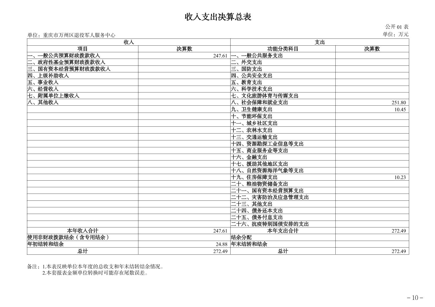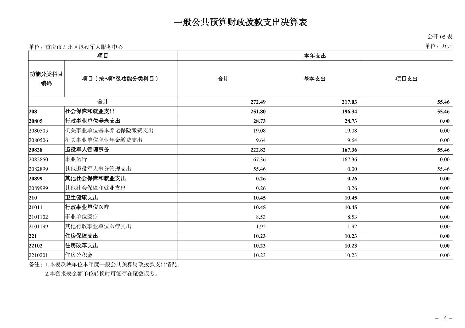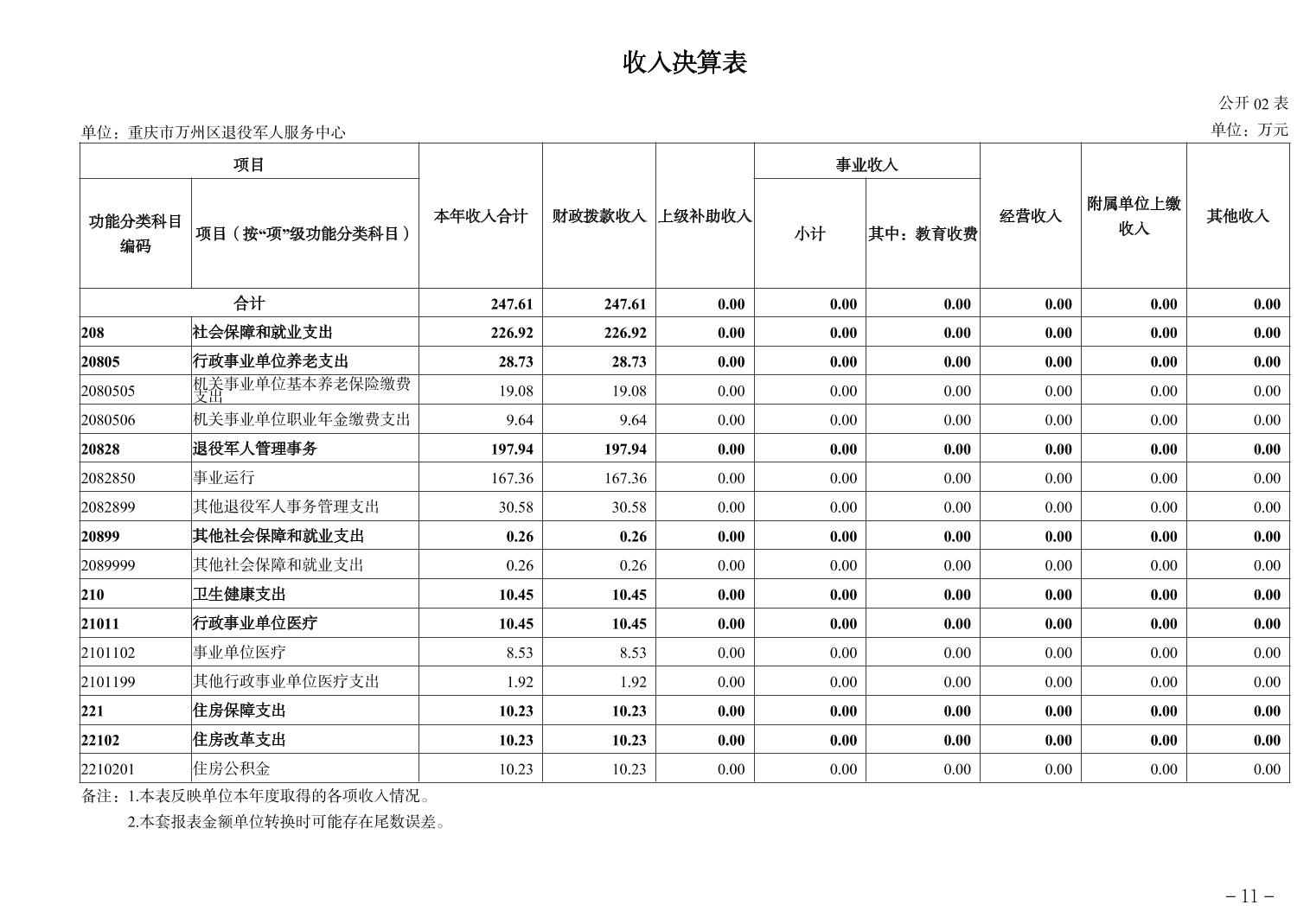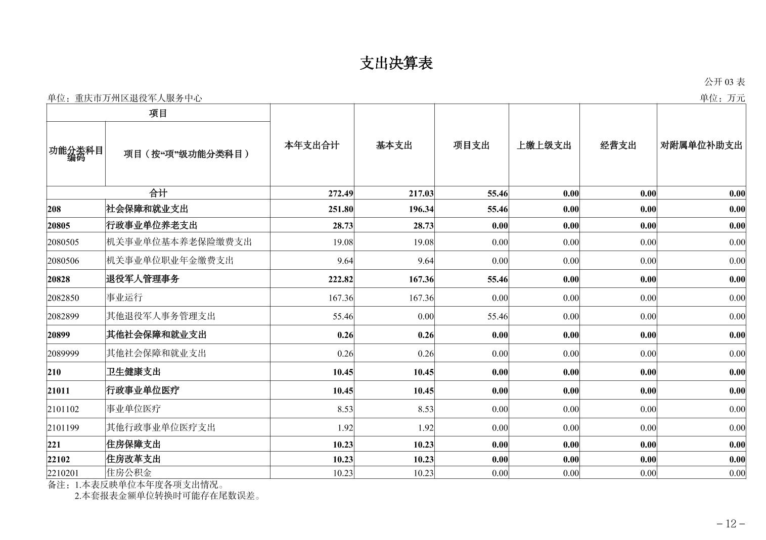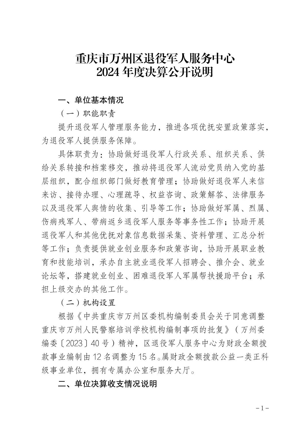 重庆市万州区退役军人服务中心 2024年度决算公开说明
