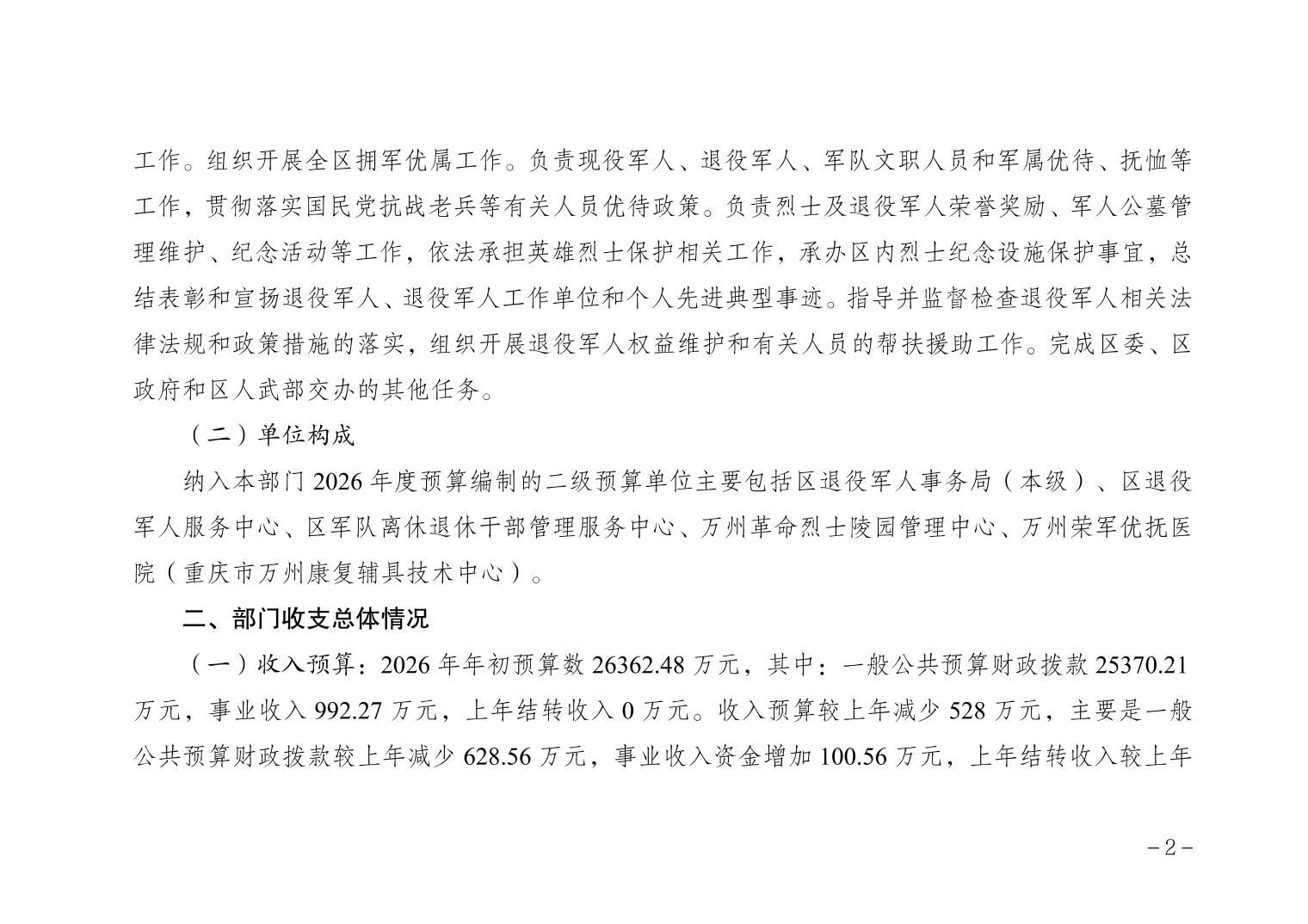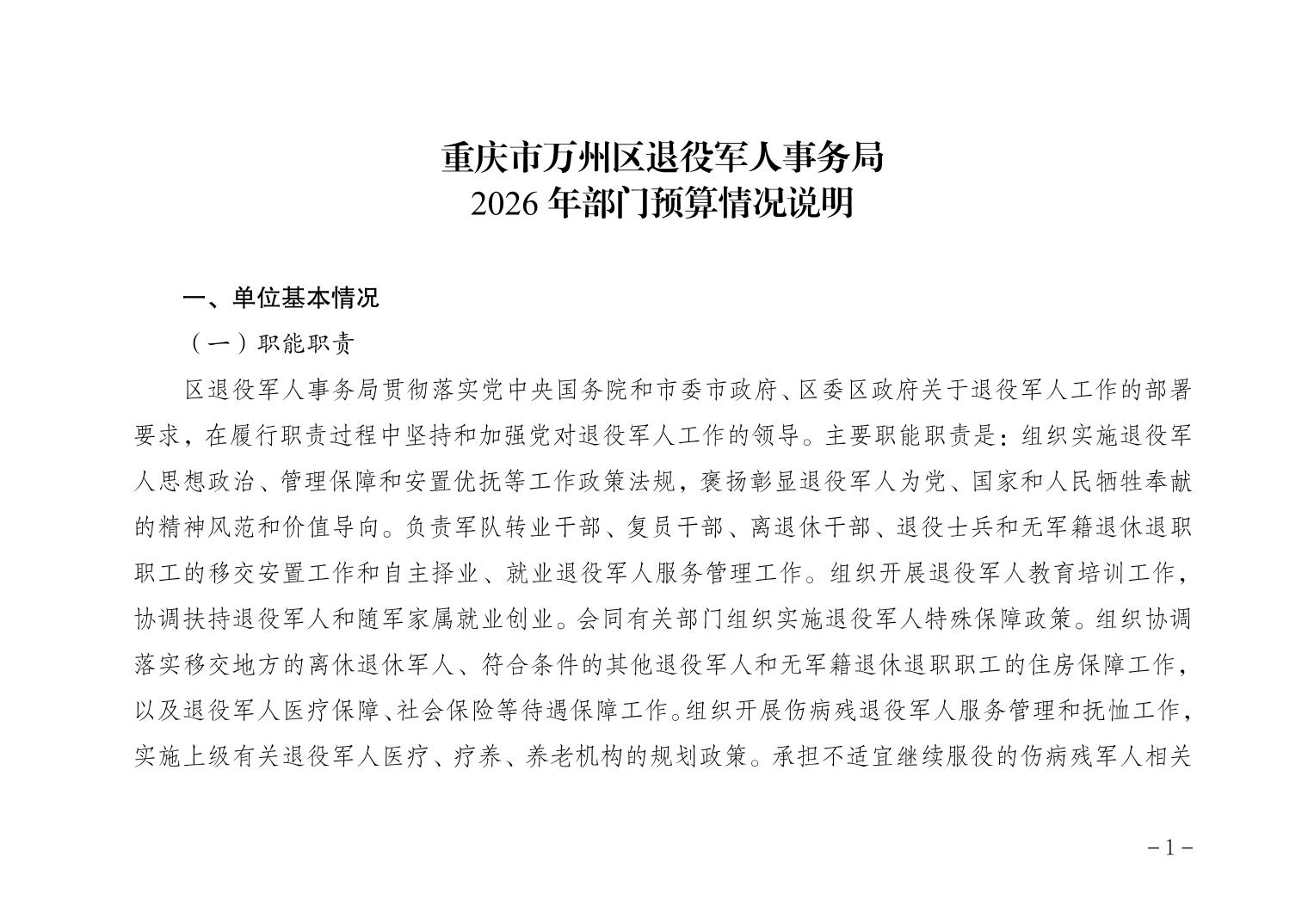 重庆市万州区退役军人事务局 2026年部门预算情况说明