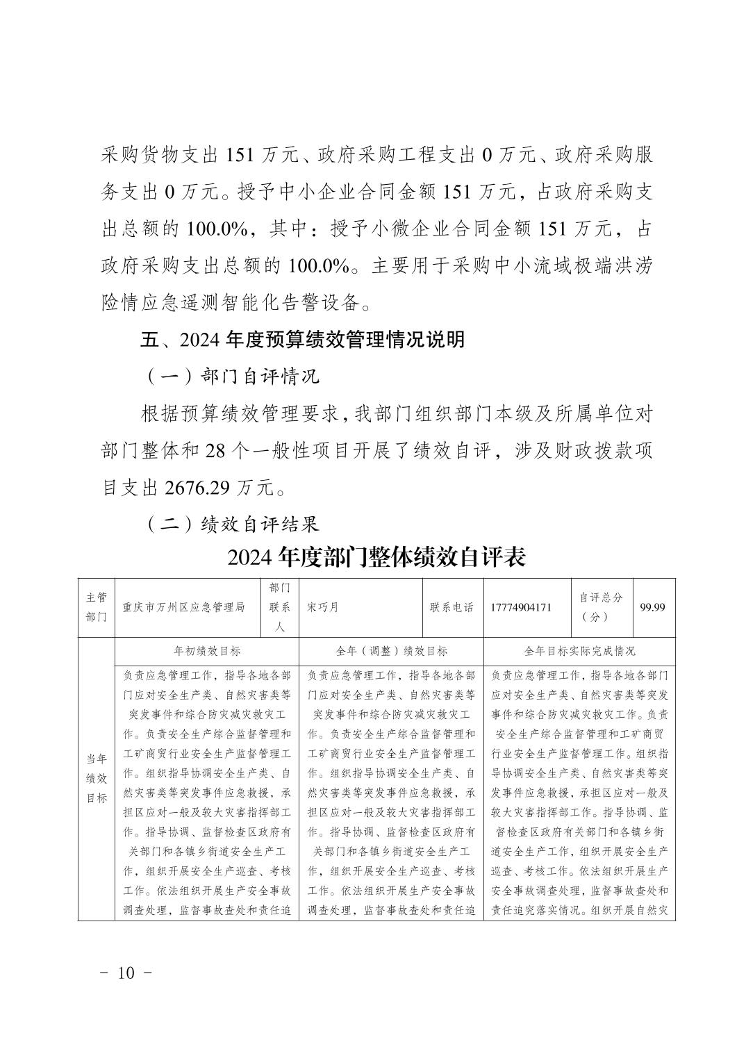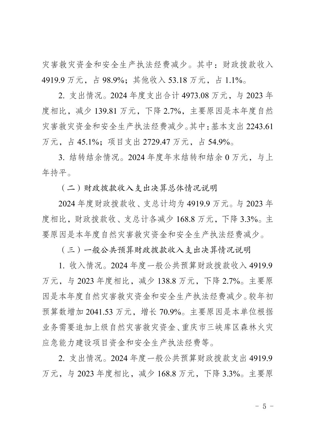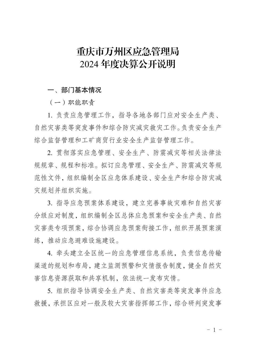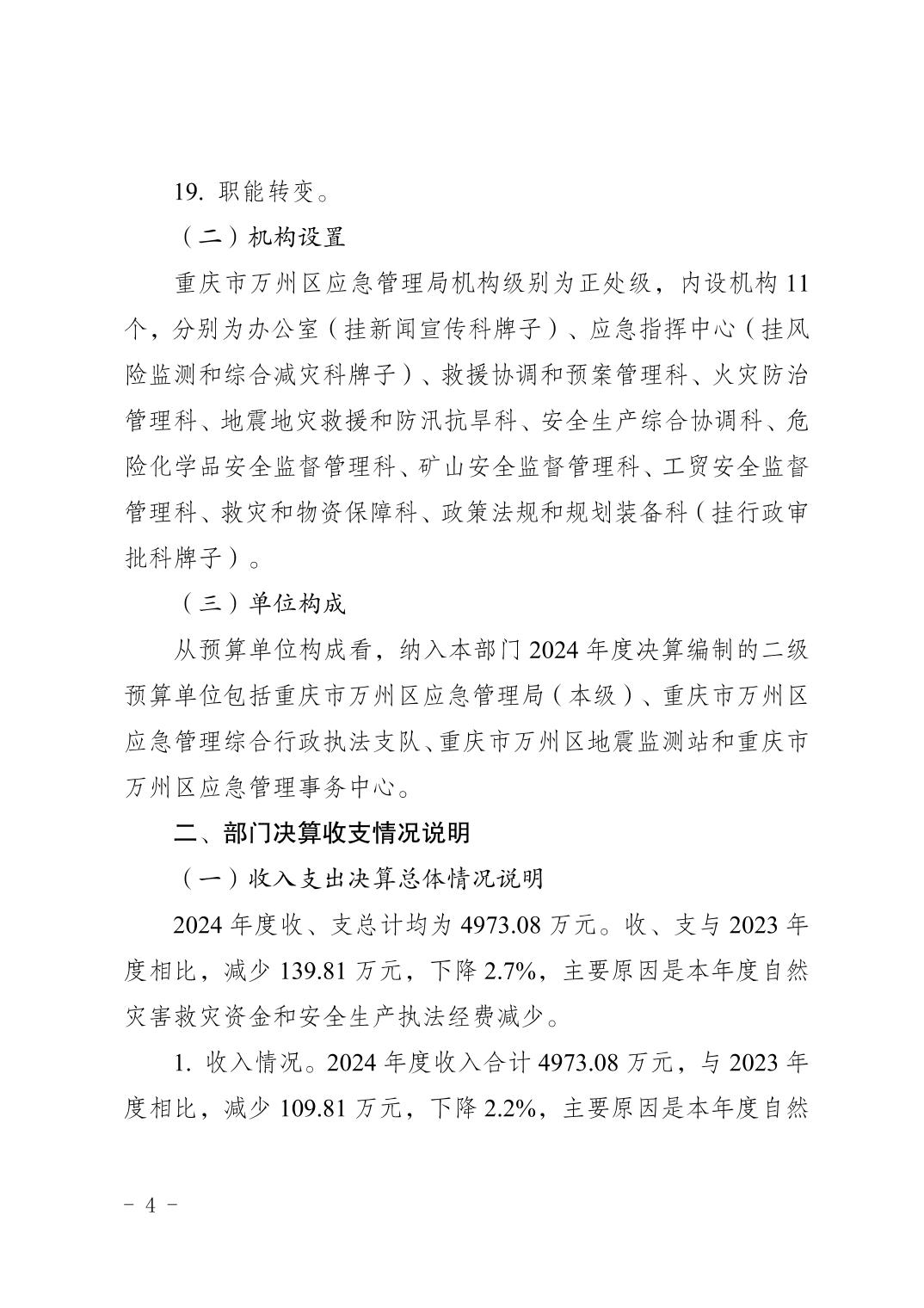 重庆市万州区应急管理局2024年度决算公开说明及报表