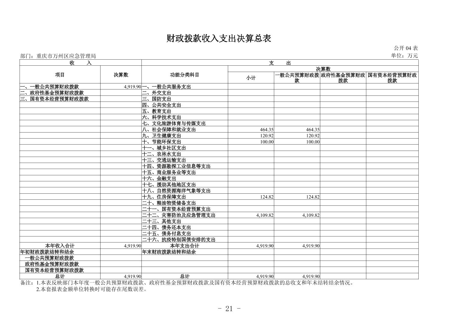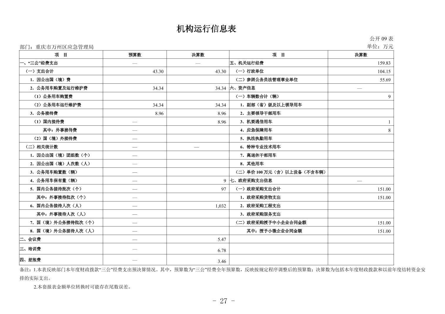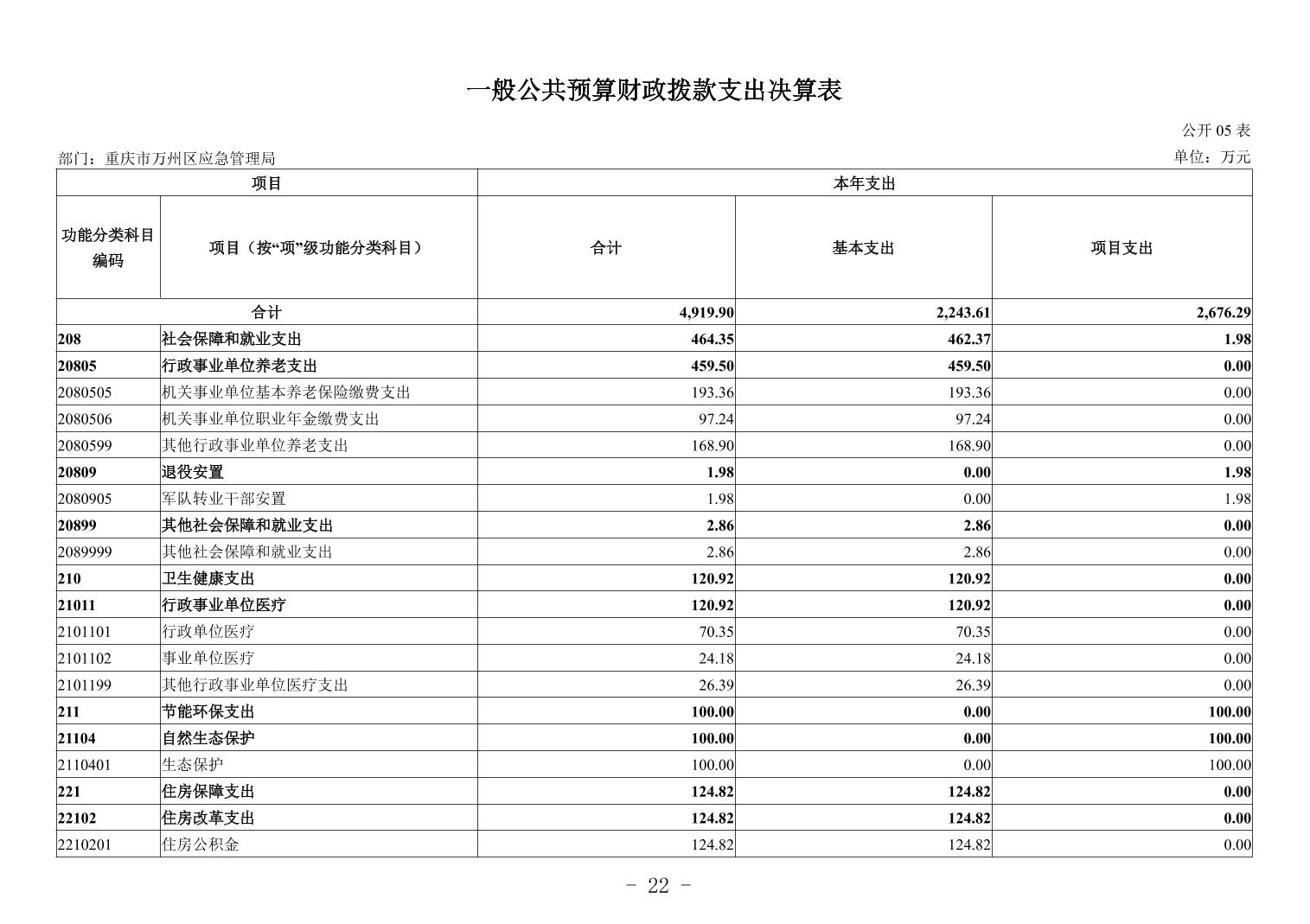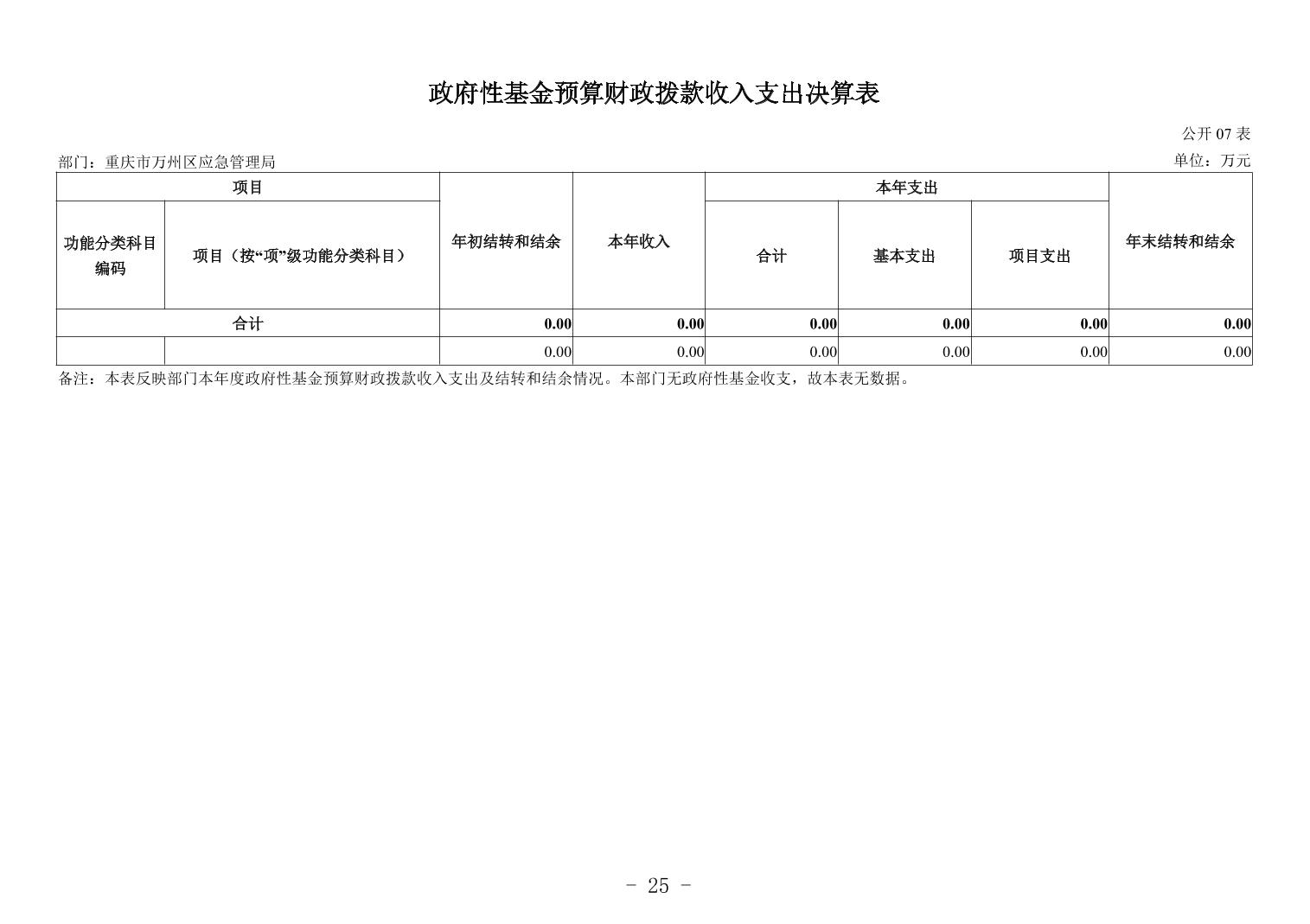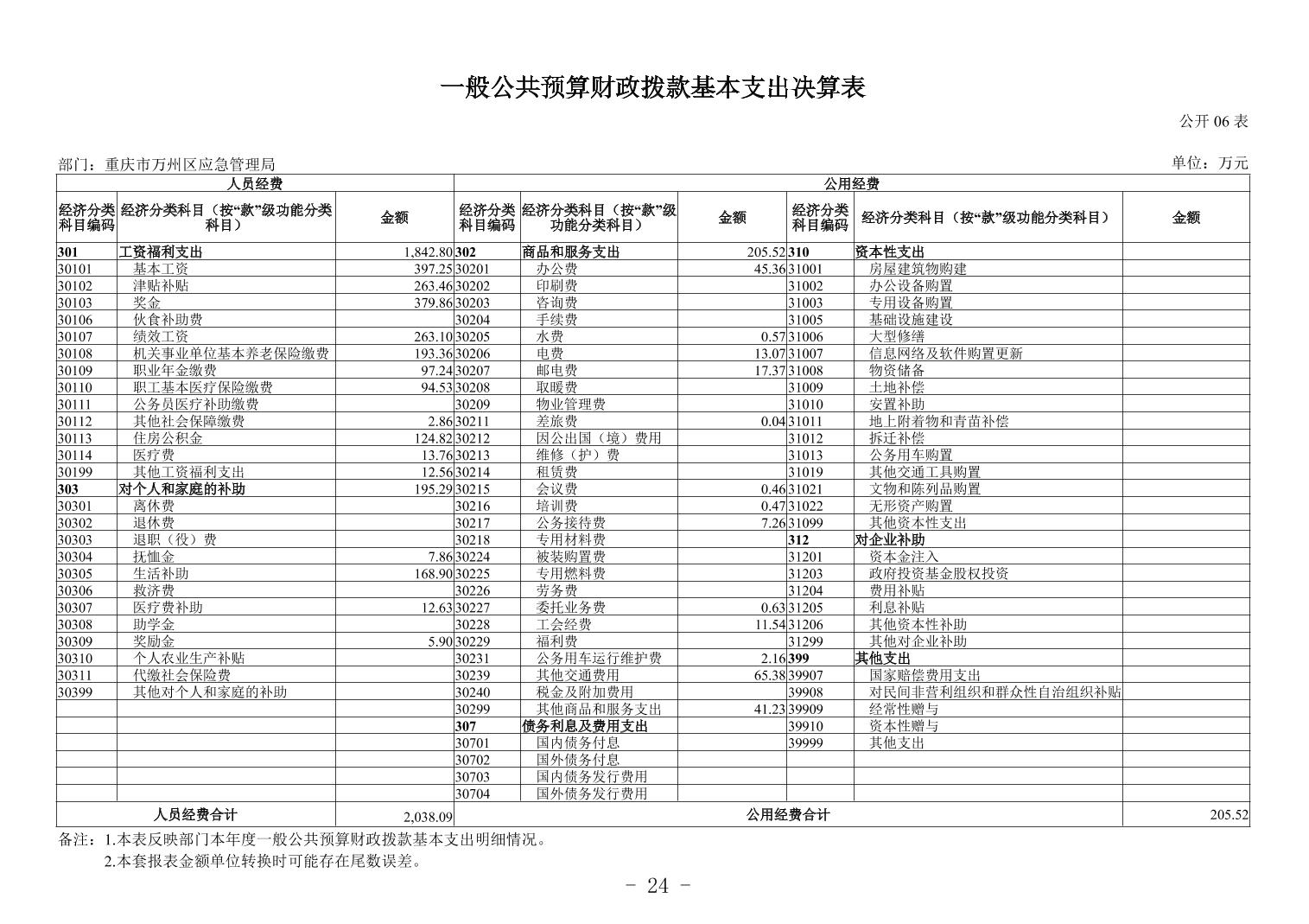 重庆市万州区应急管理局2024年度决算公开说明及报表