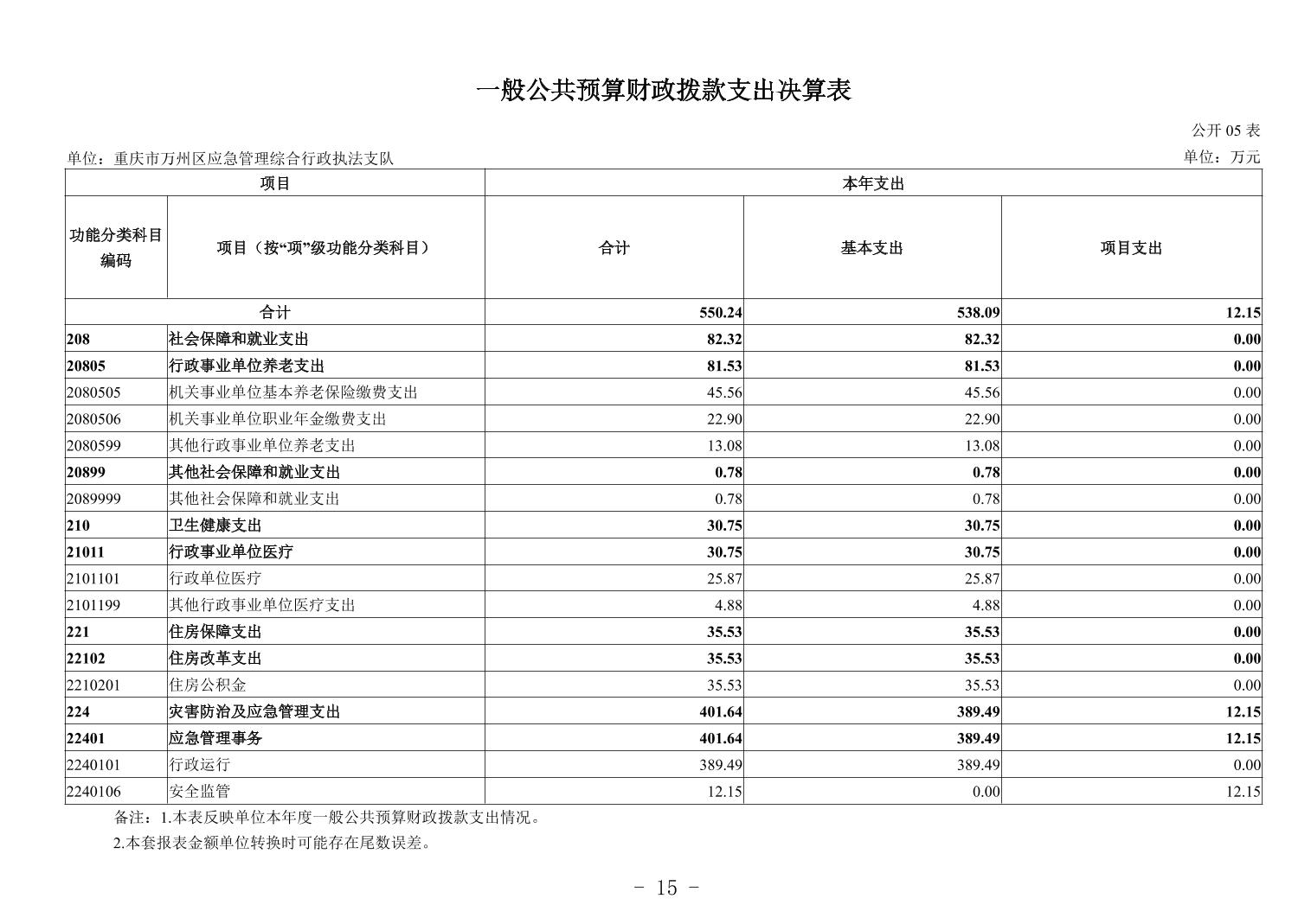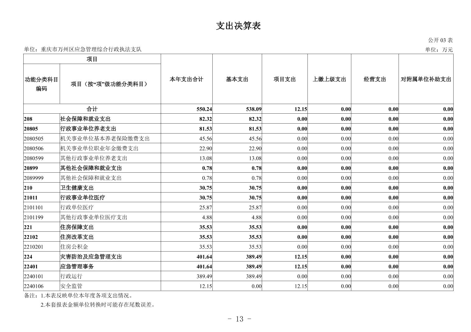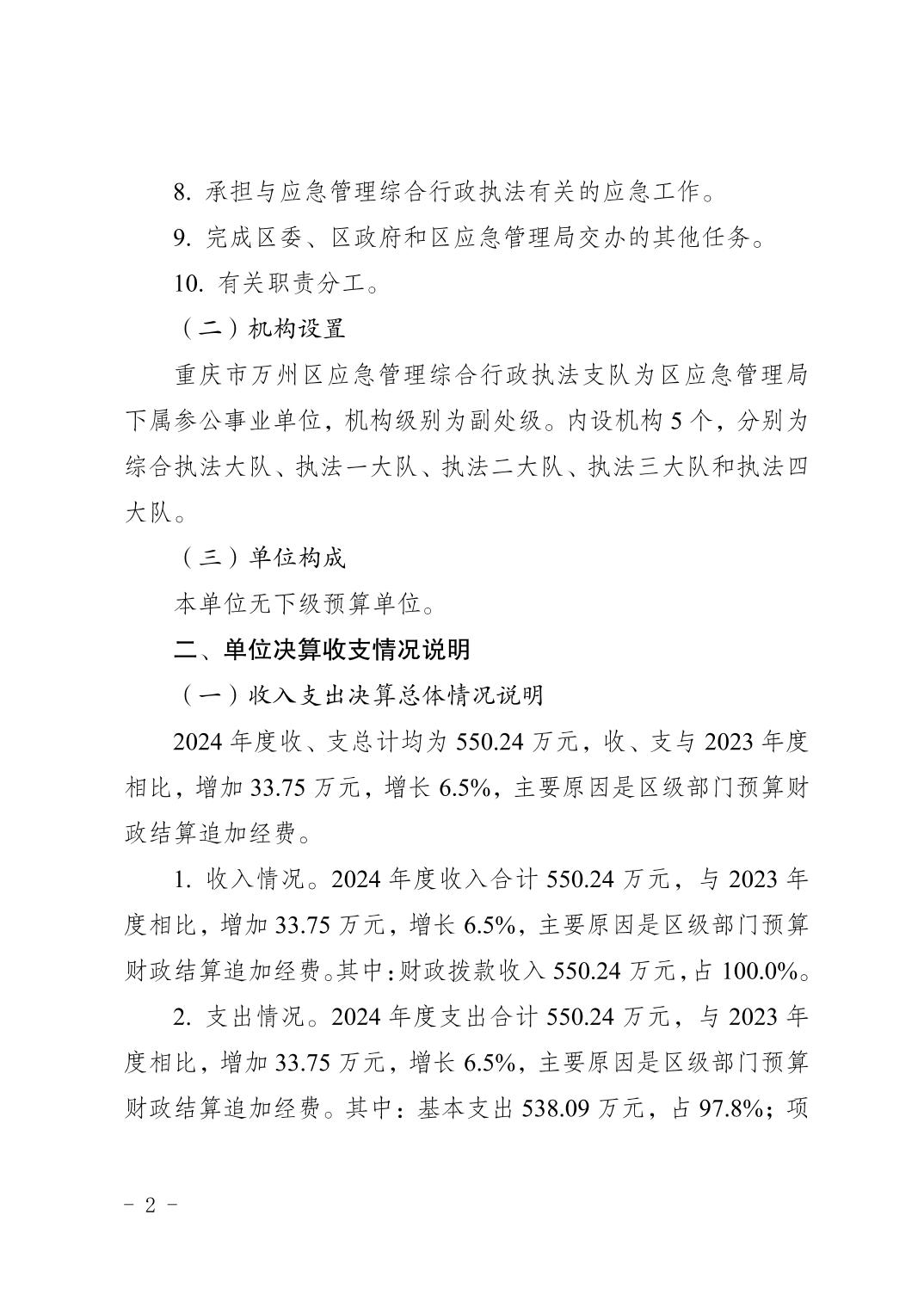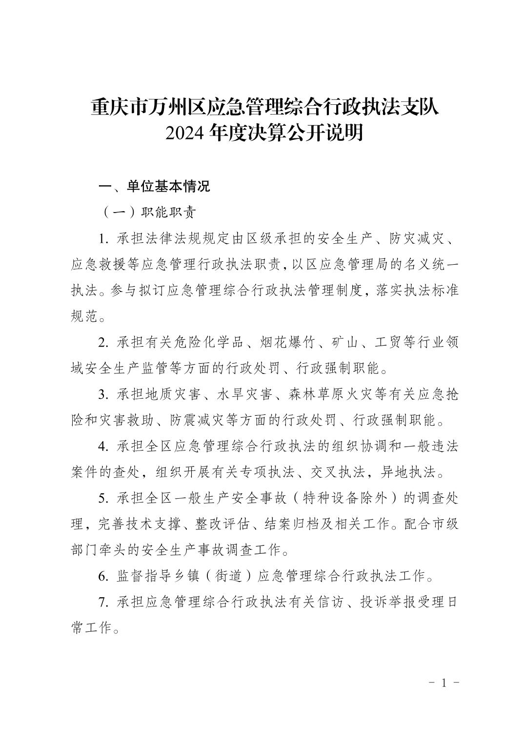 重庆市万州区应急管理综合行政执法支队2024年度决算公开说明及报表