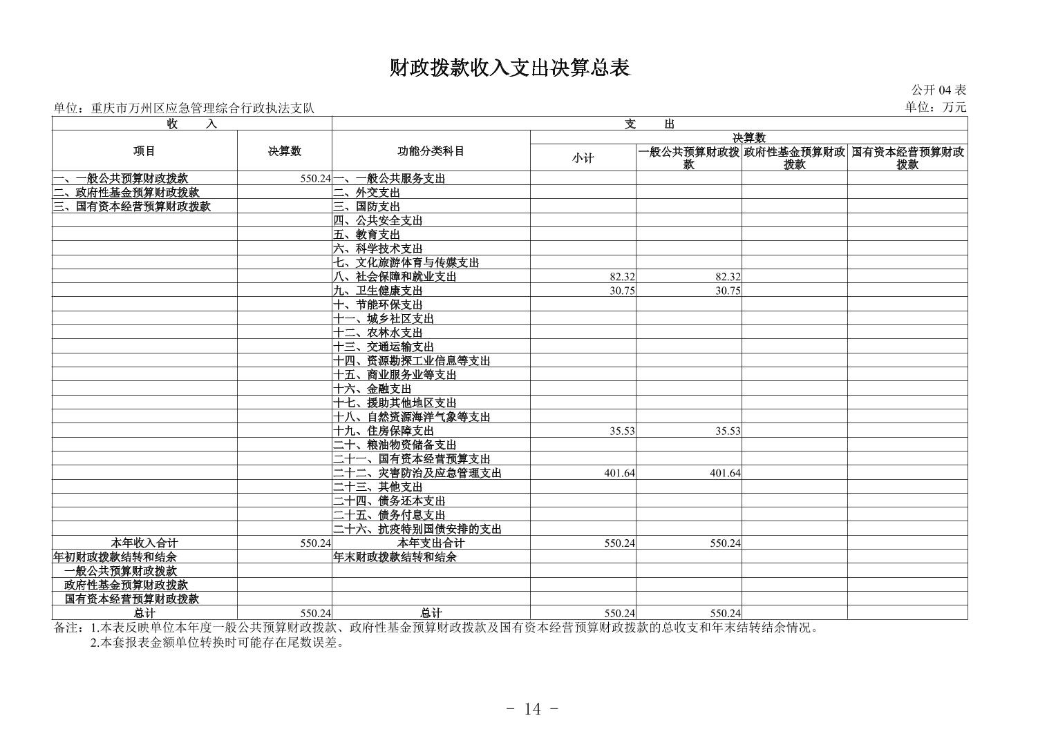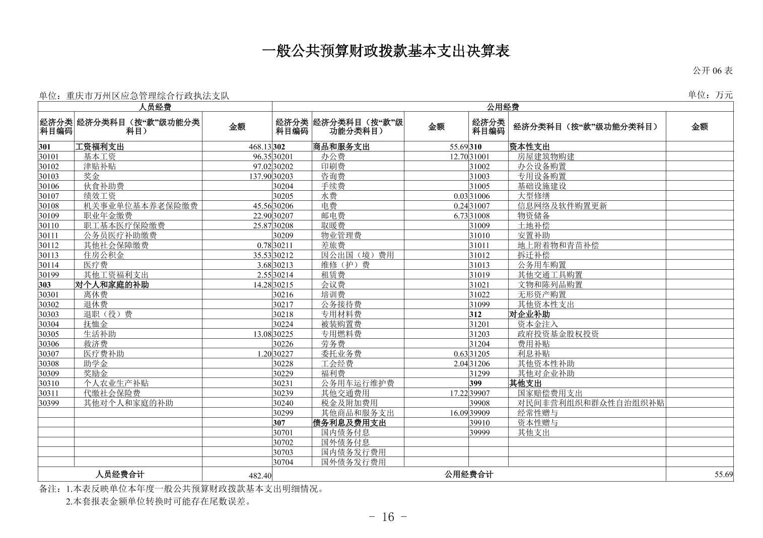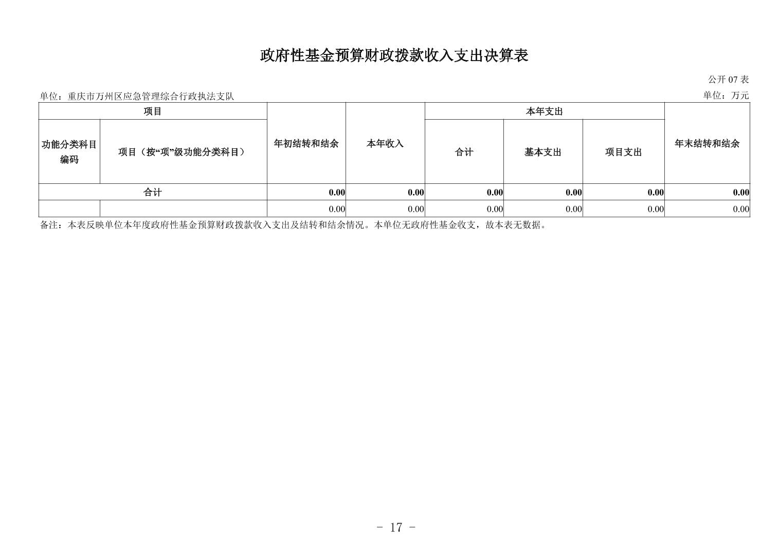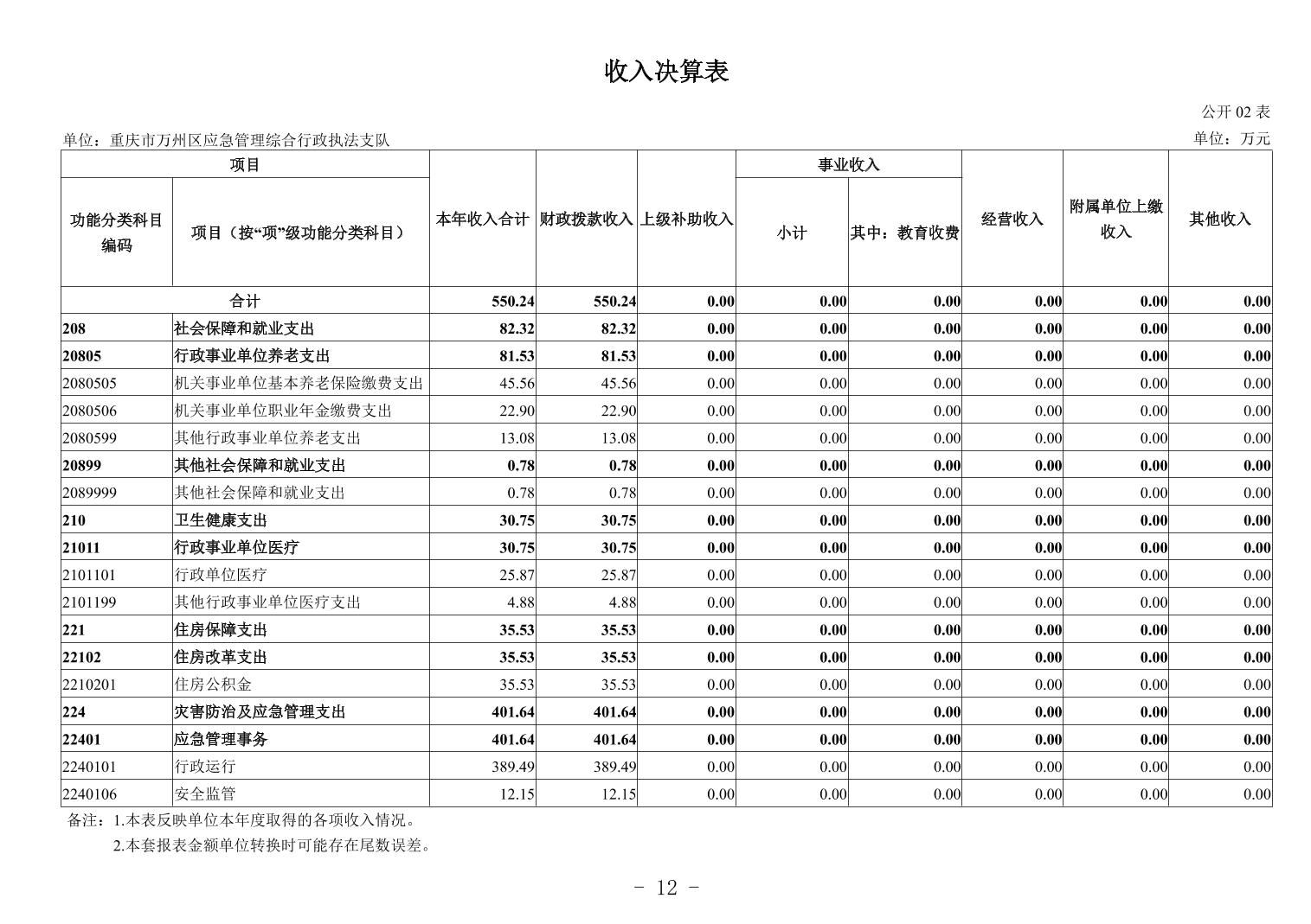 重庆市万州区应急管理综合行政执法支队2024年度决算公开说明及报表