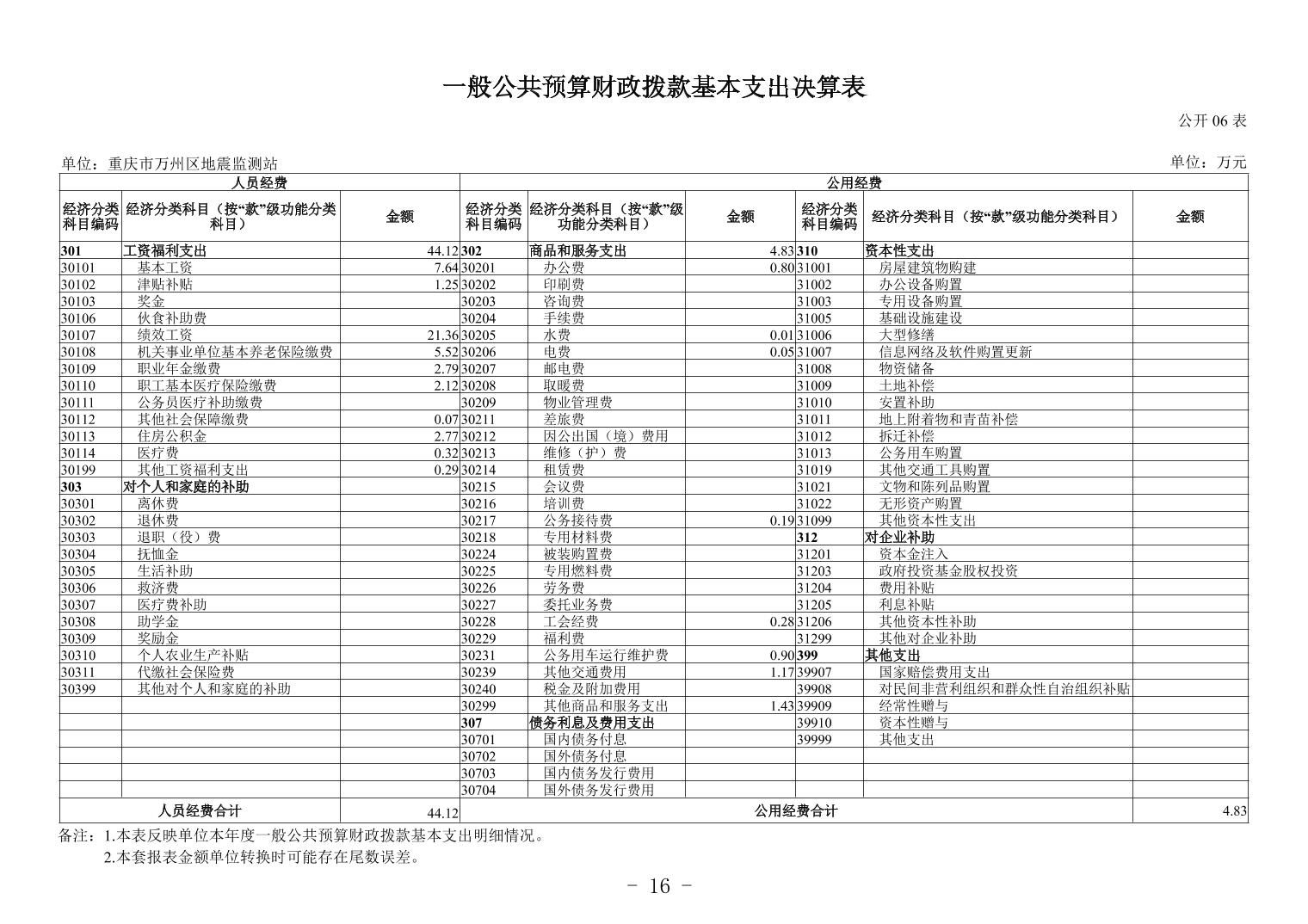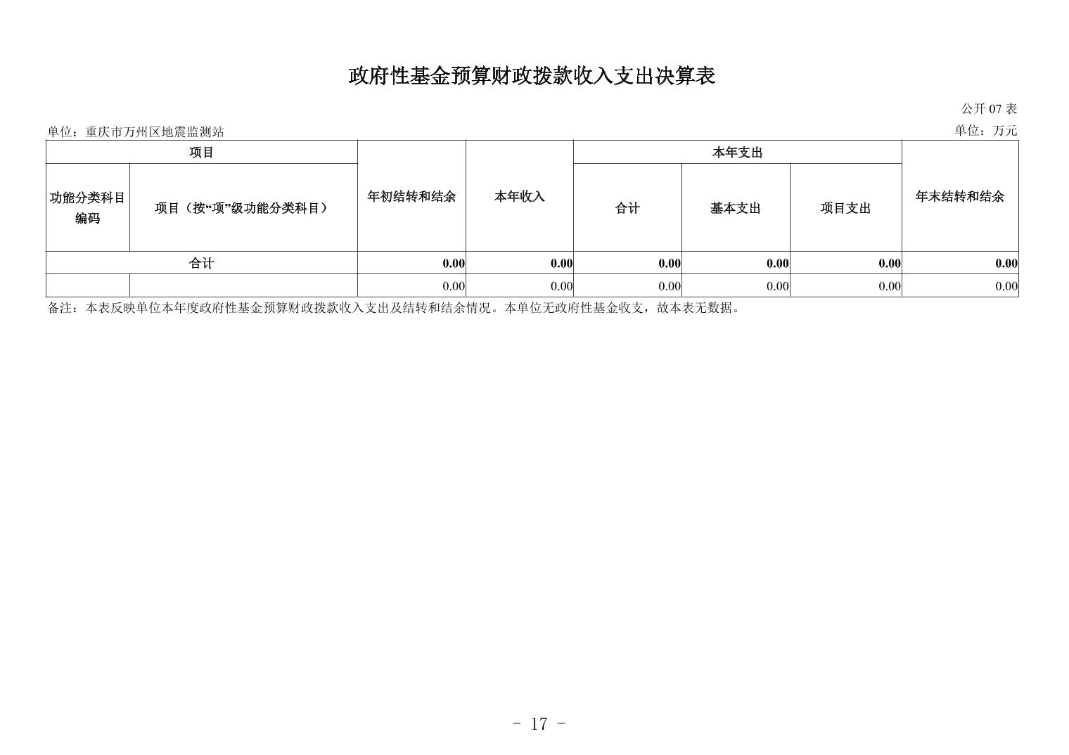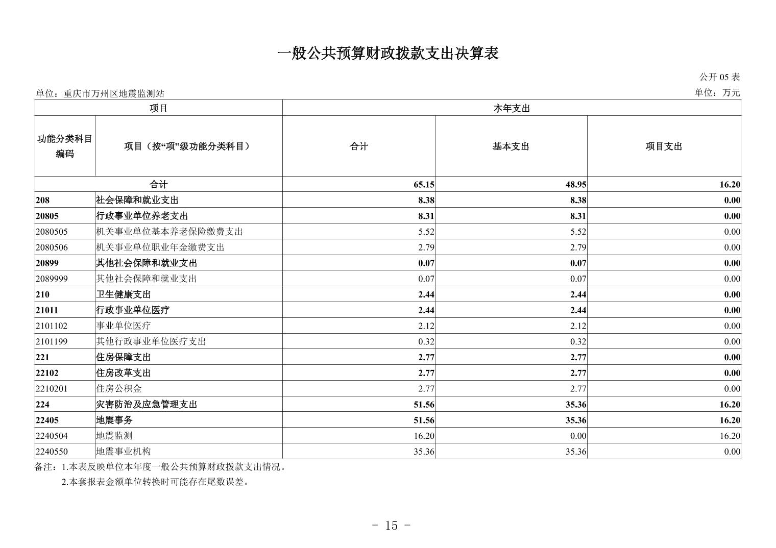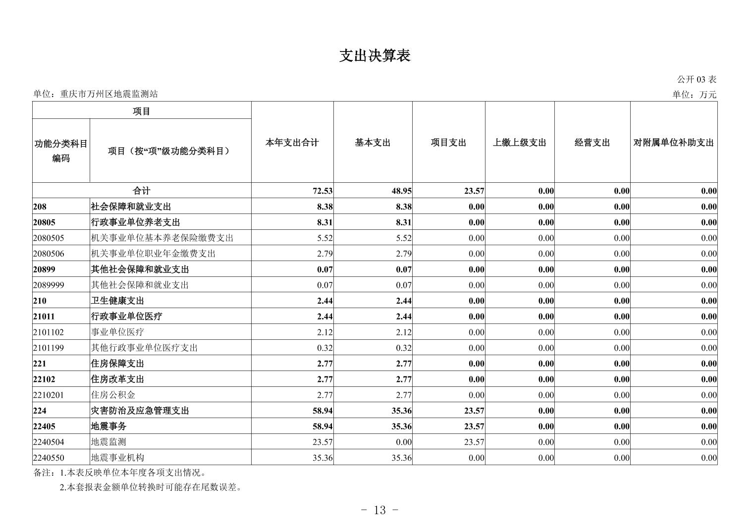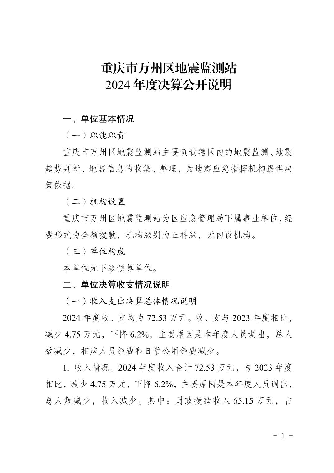 重庆市万州区地震监测站2024年度决算公开说明及报表