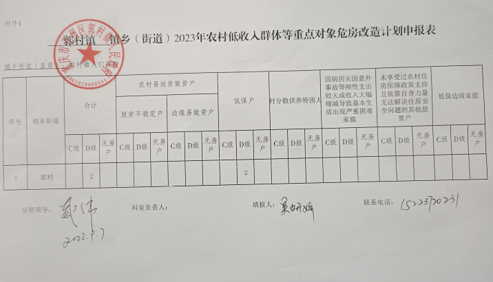 重庆市万州区郭村镇人民政府关于危房改造申报计划