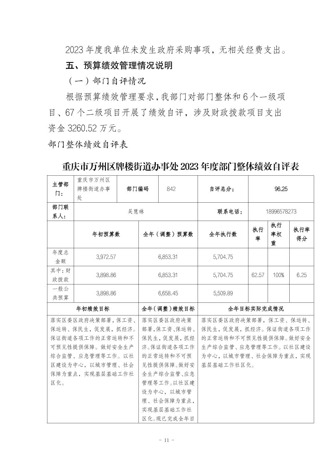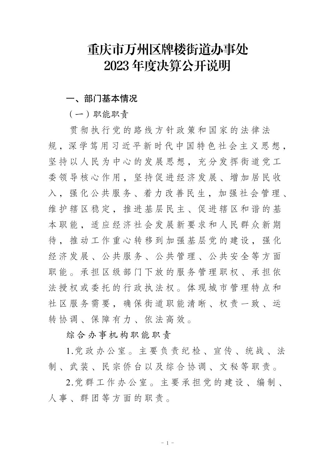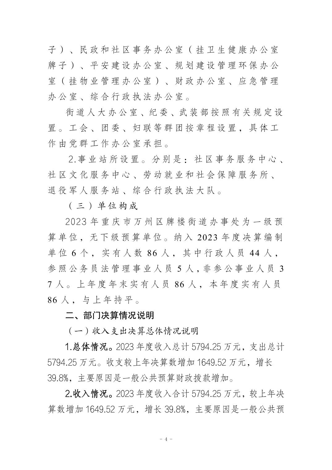 重庆市万州区牌楼街道办事处2023年度决算公开说明