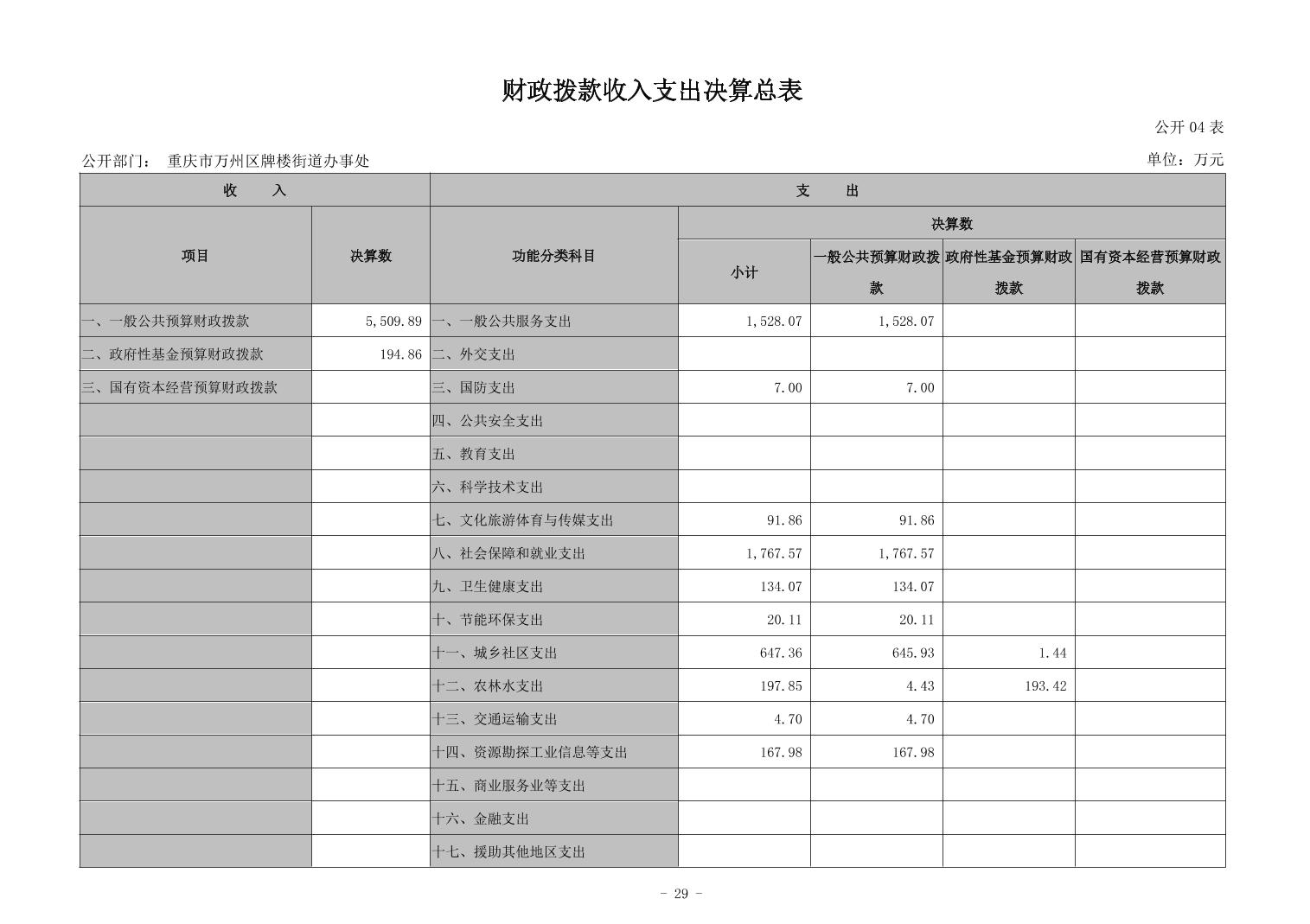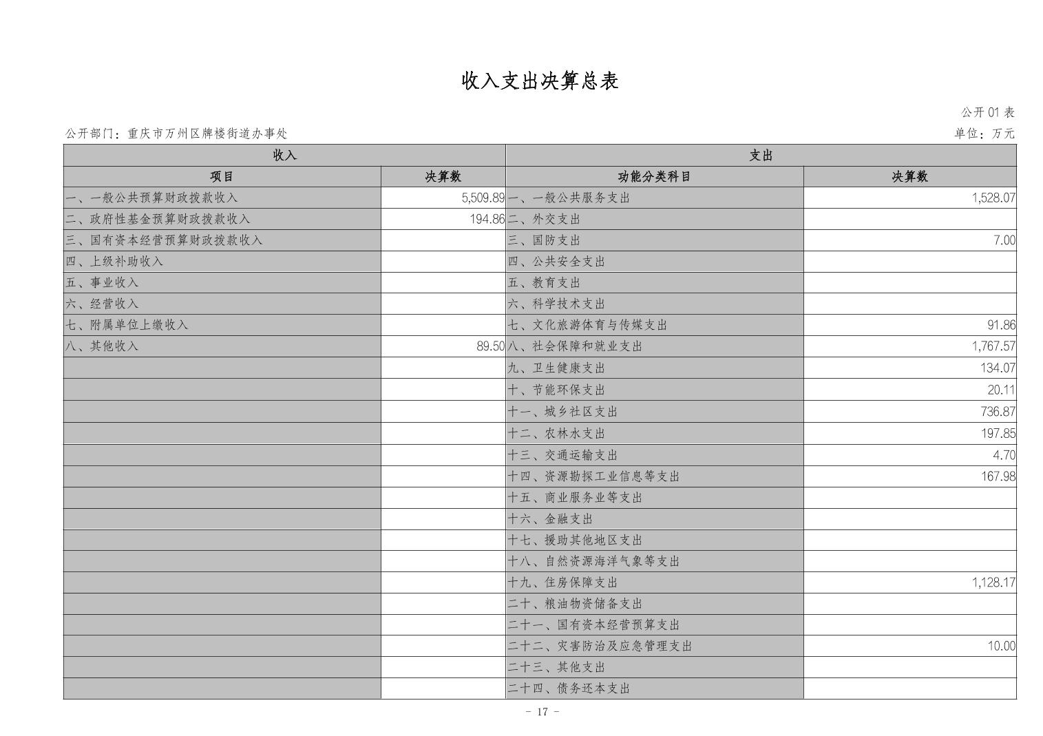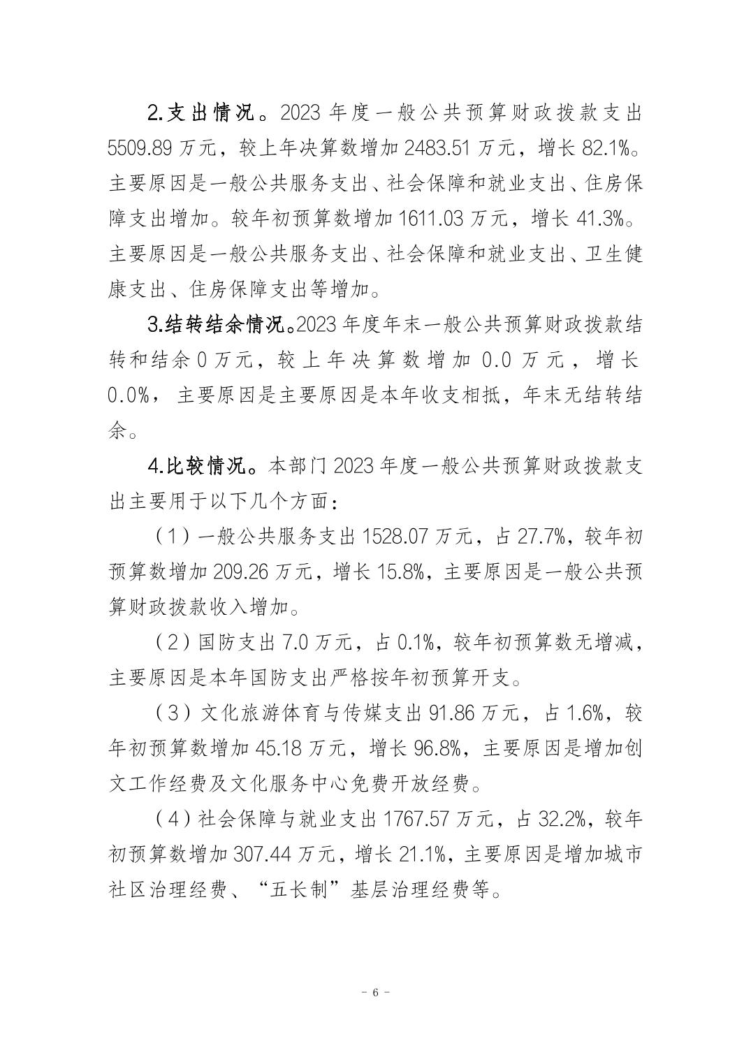 重庆市万州区牌楼街道办事处2023年度决算公开说明