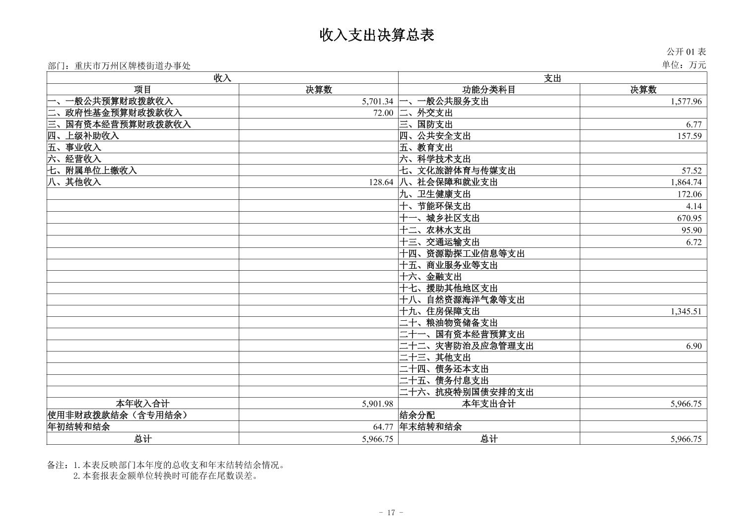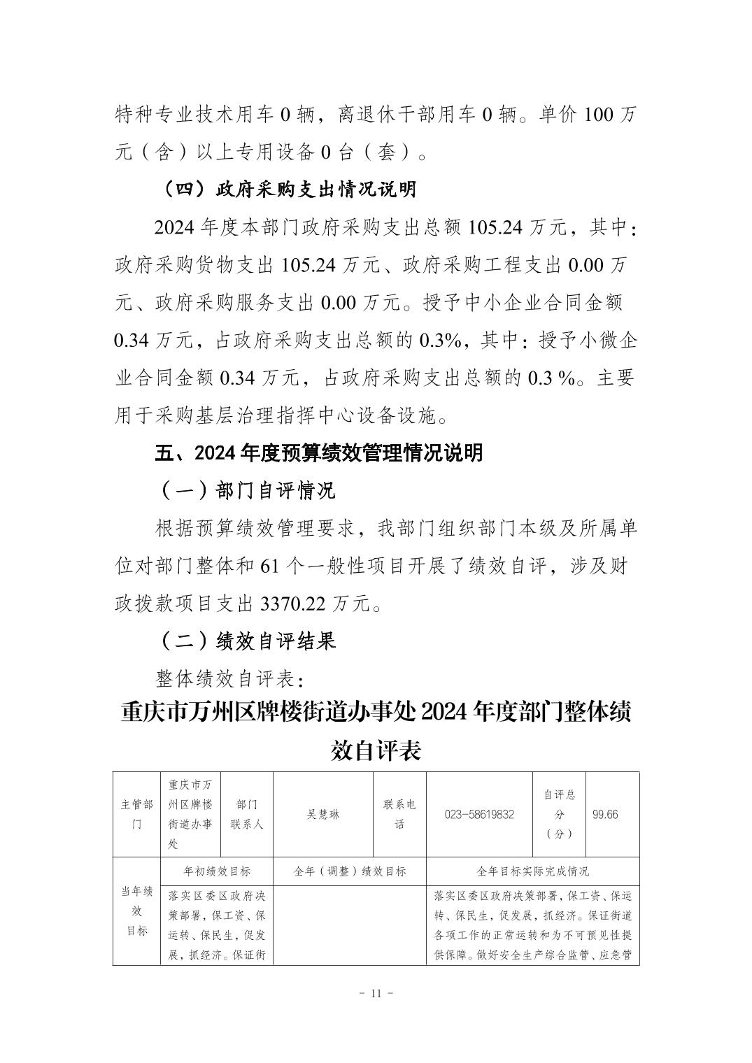 重庆市万州区牌楼街道办事处2024年度决算公开说明