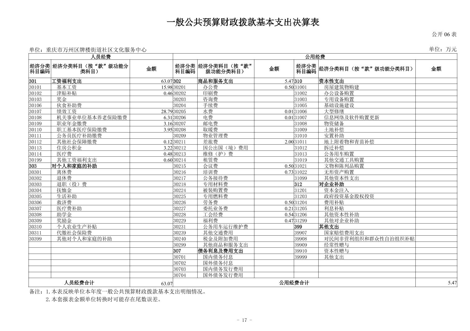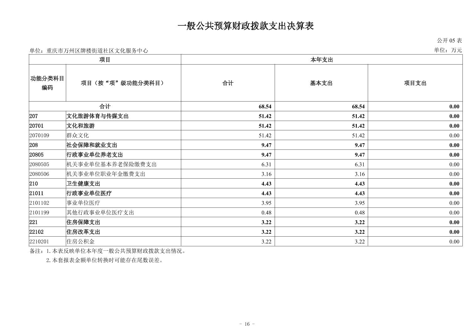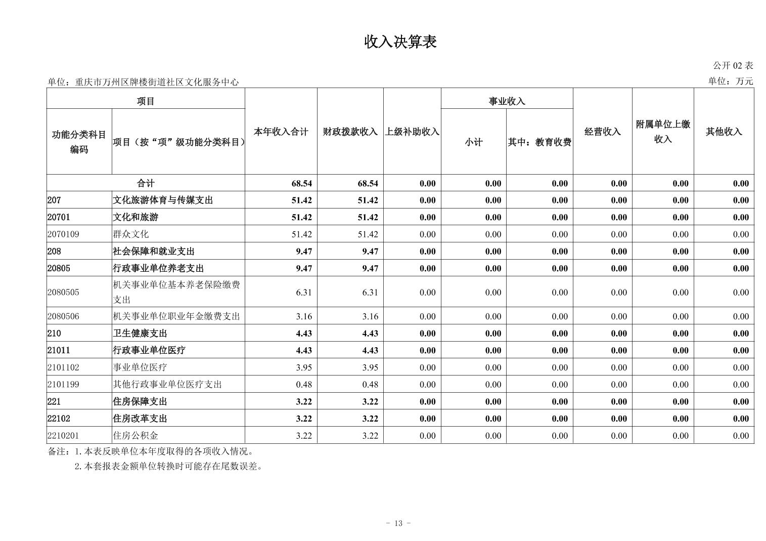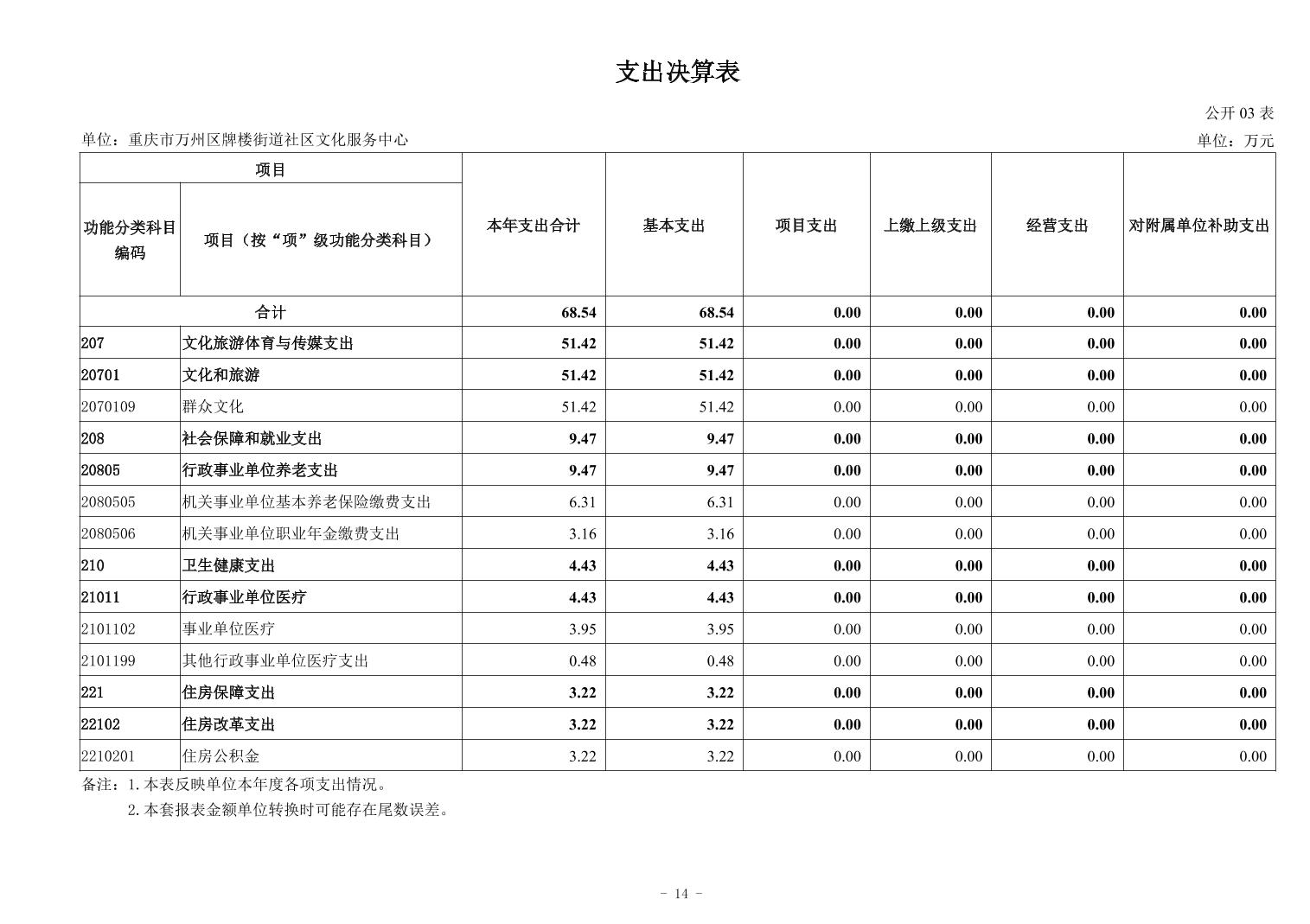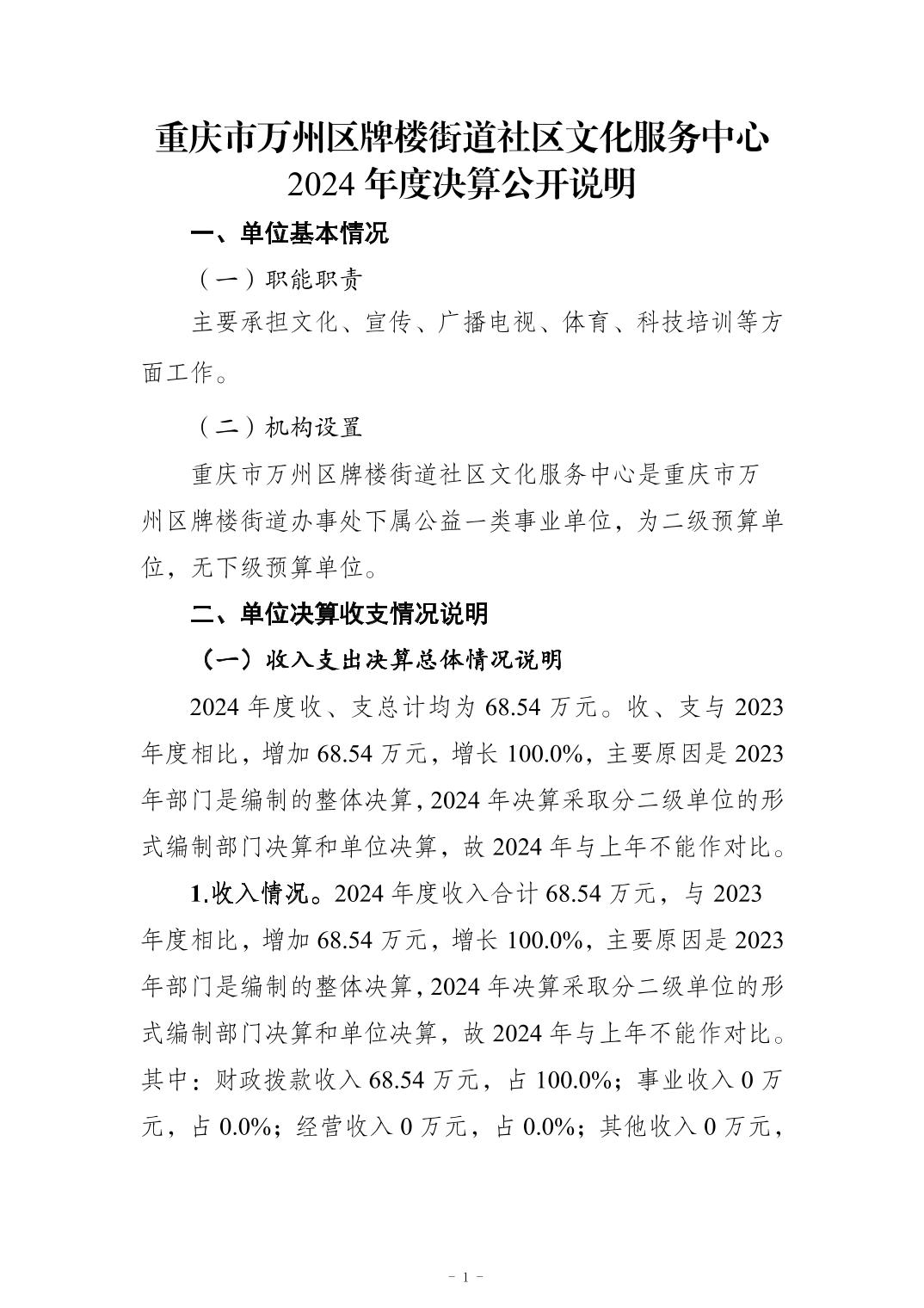 重庆市万州区牌楼街道社区文化服务中心2024年度决算公开说明