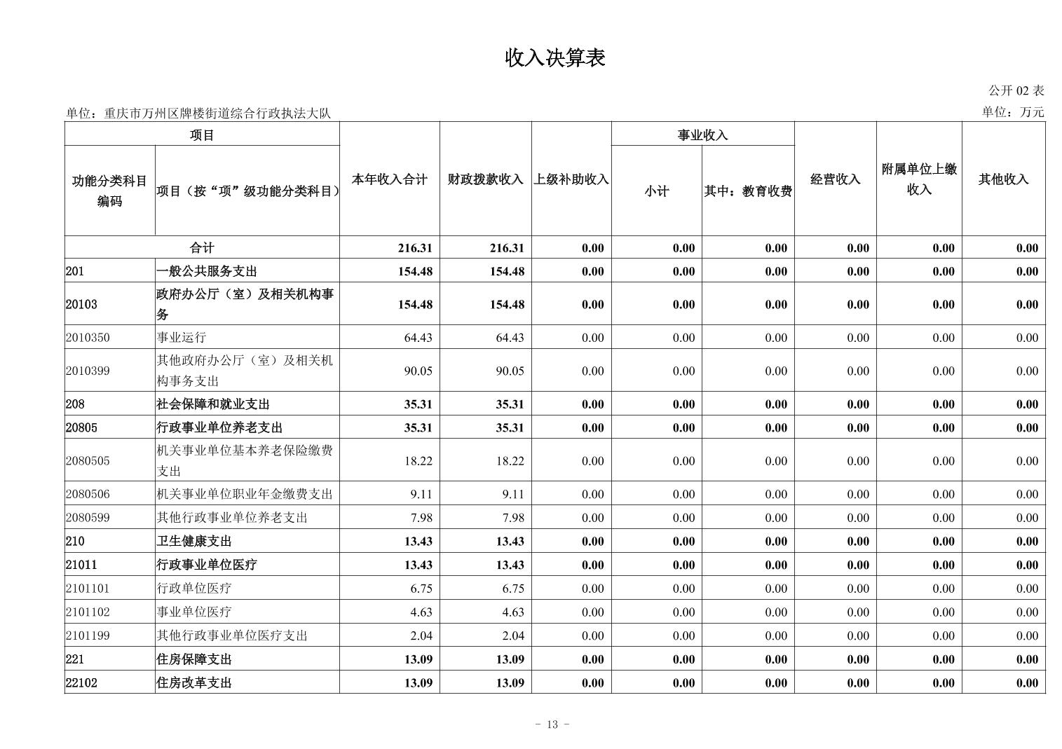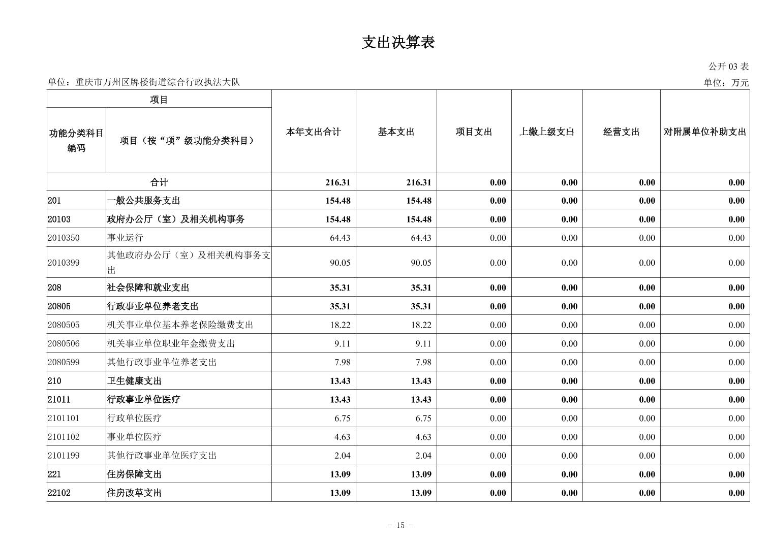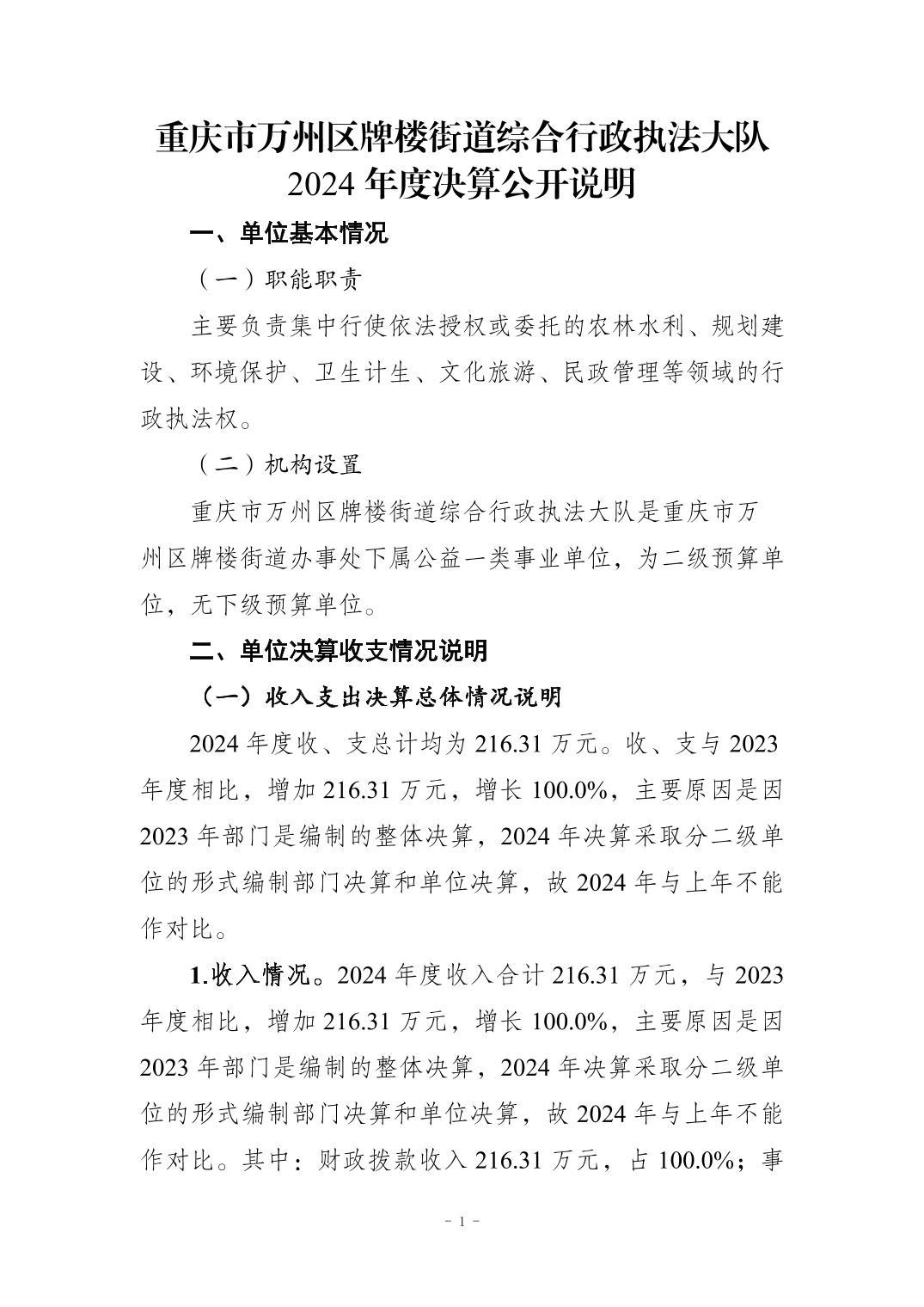 重庆市万州区牌楼街道综合行政执法大队2024年度决算公开说明