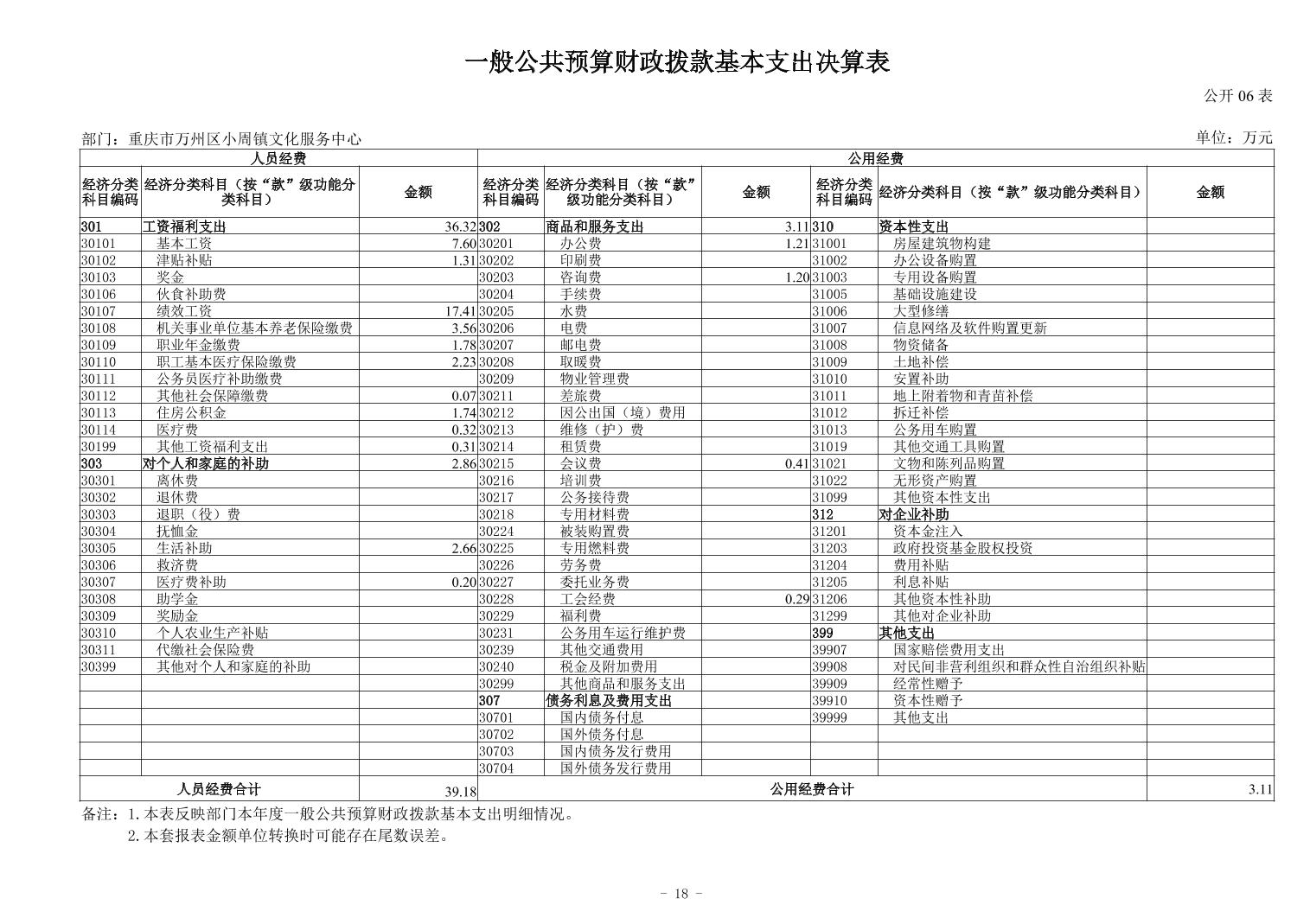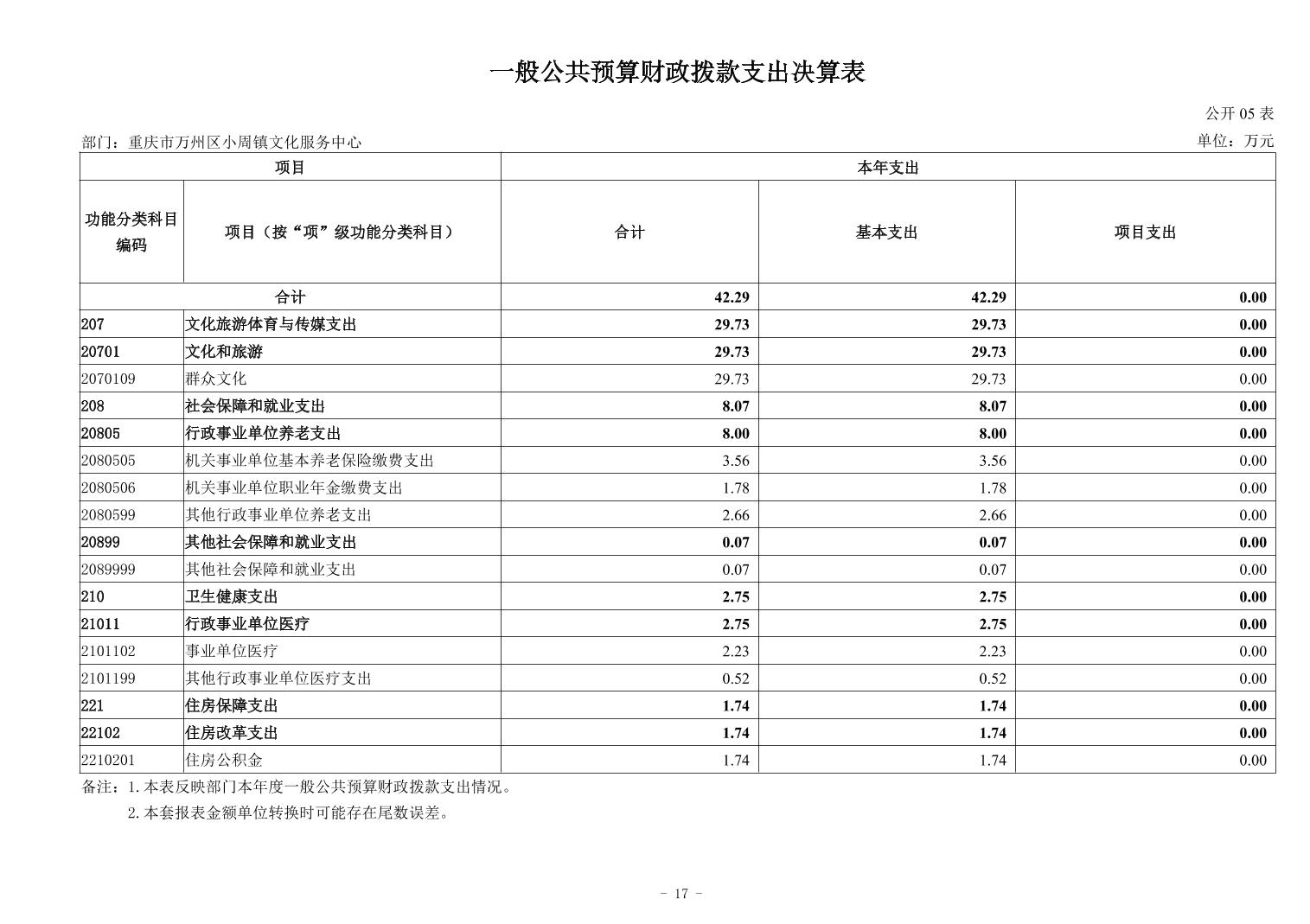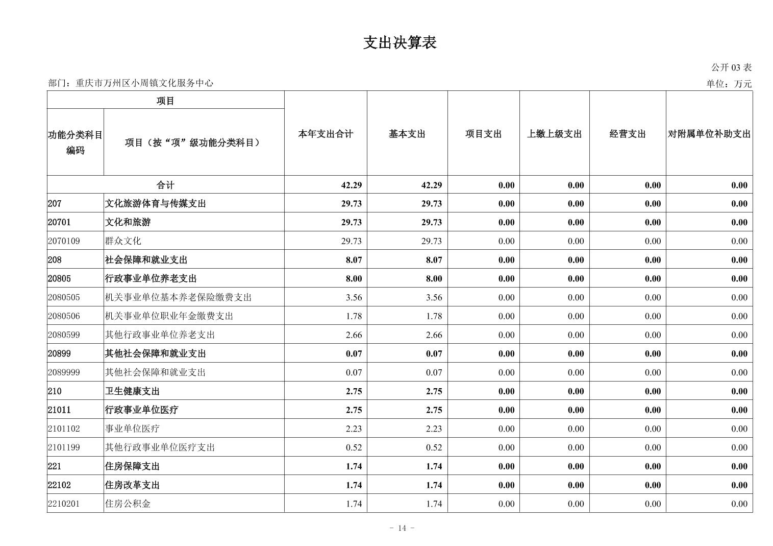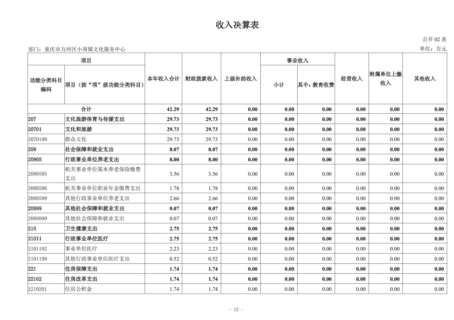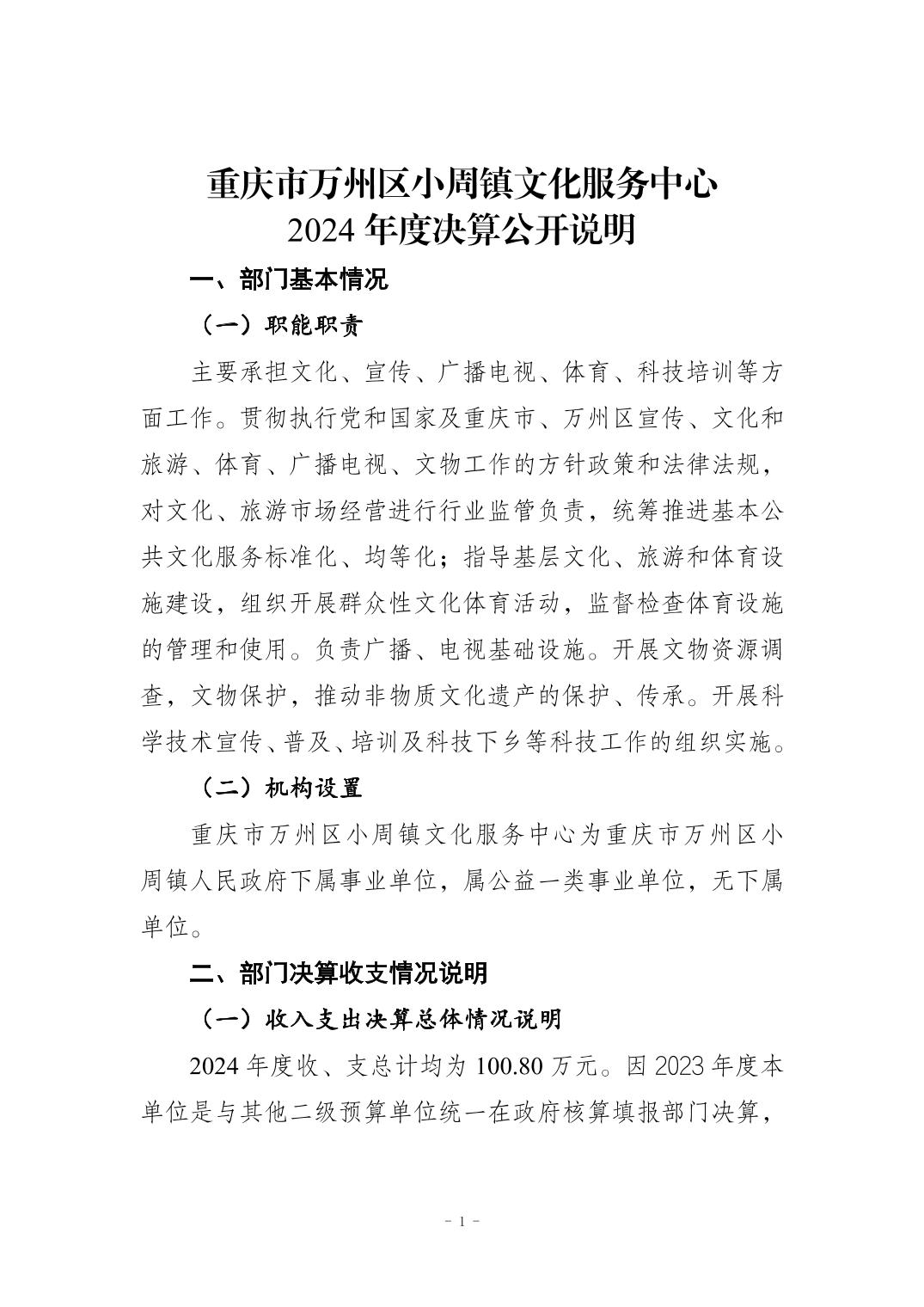 重庆市万州区小周镇文化服务中心2024年度决算公开说明及公开报表