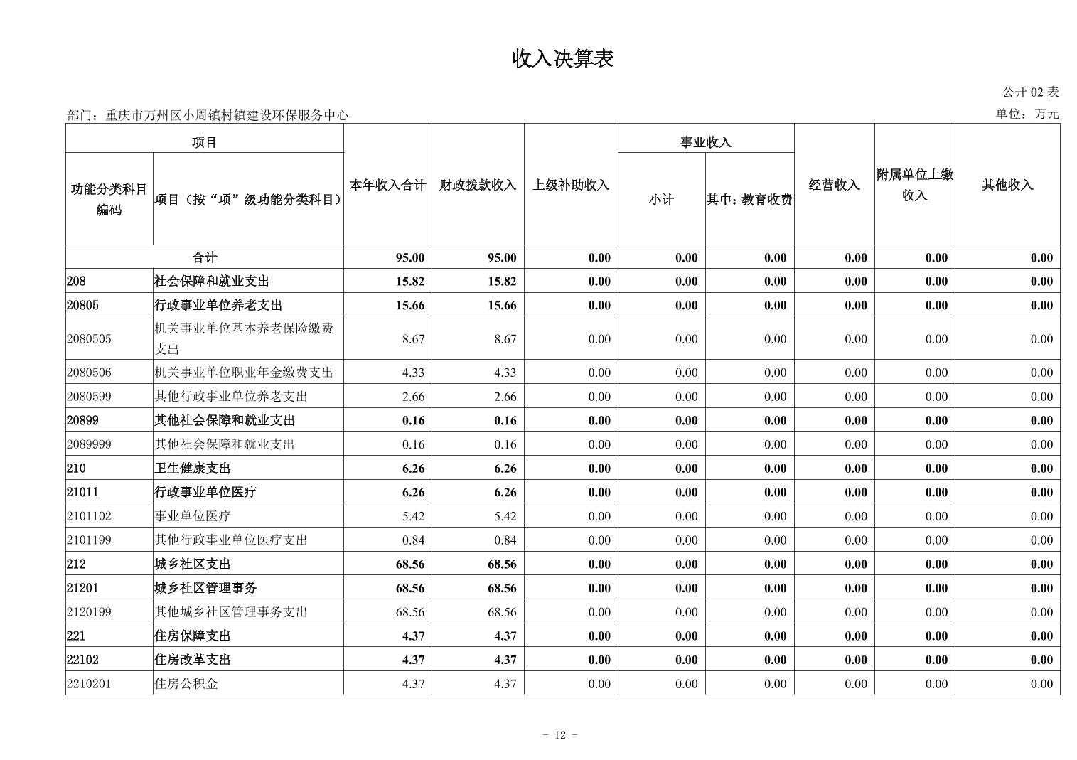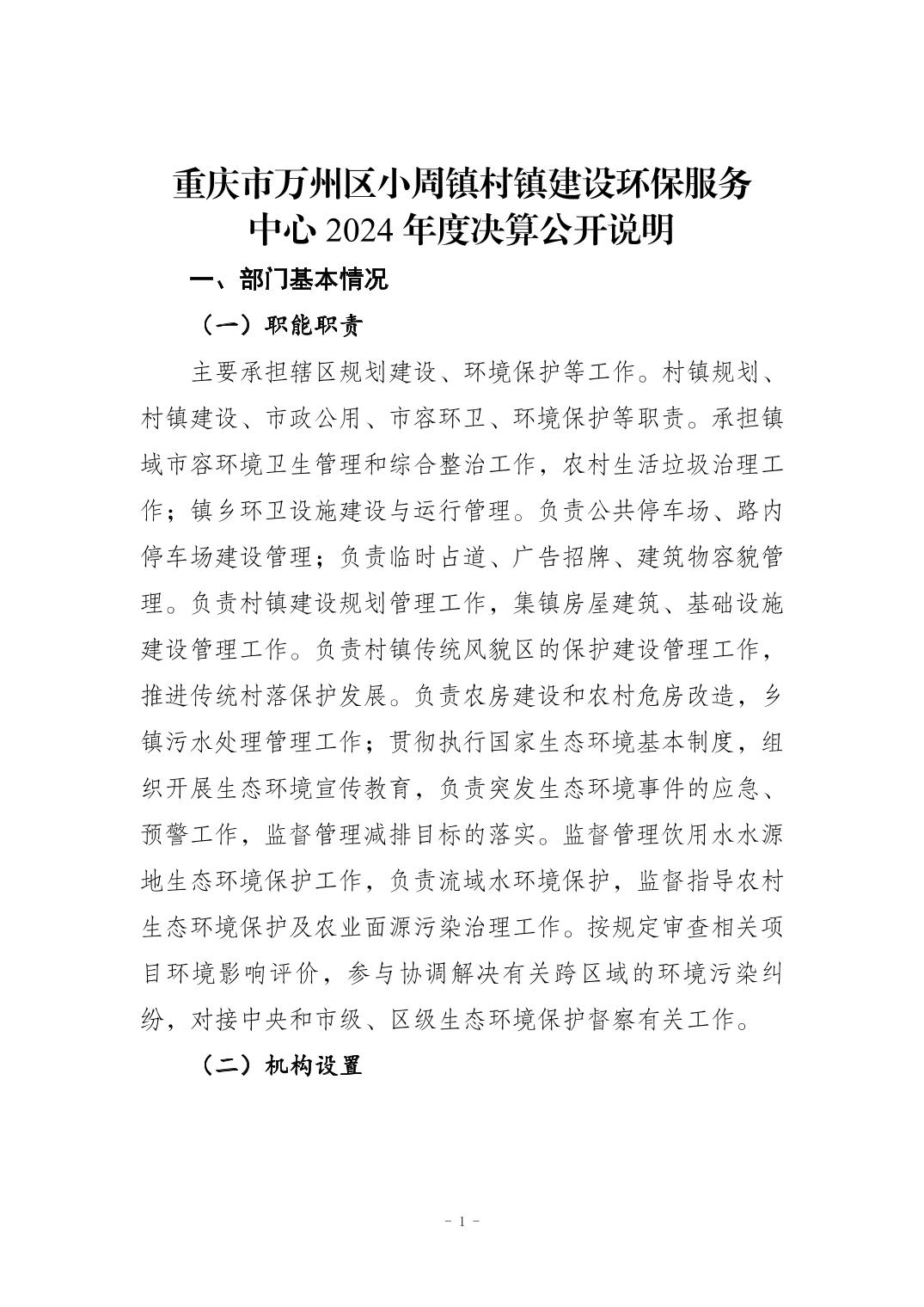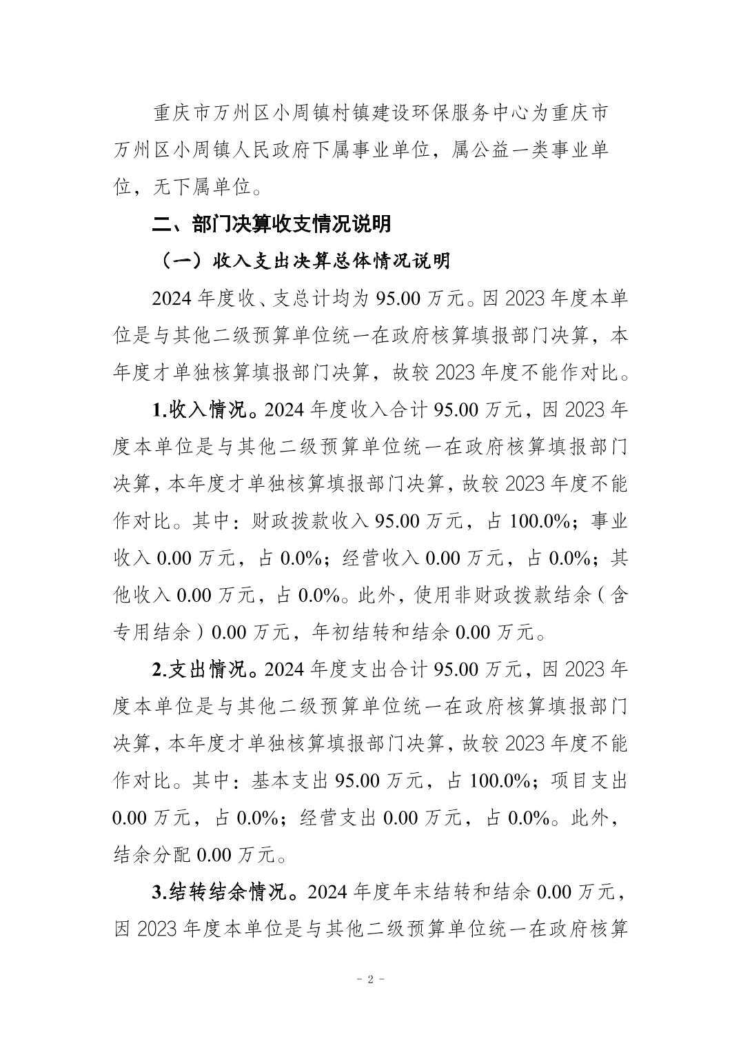 重庆市万州区小周镇村镇建设环保服务中心2024年度决算公开说明及公开报表