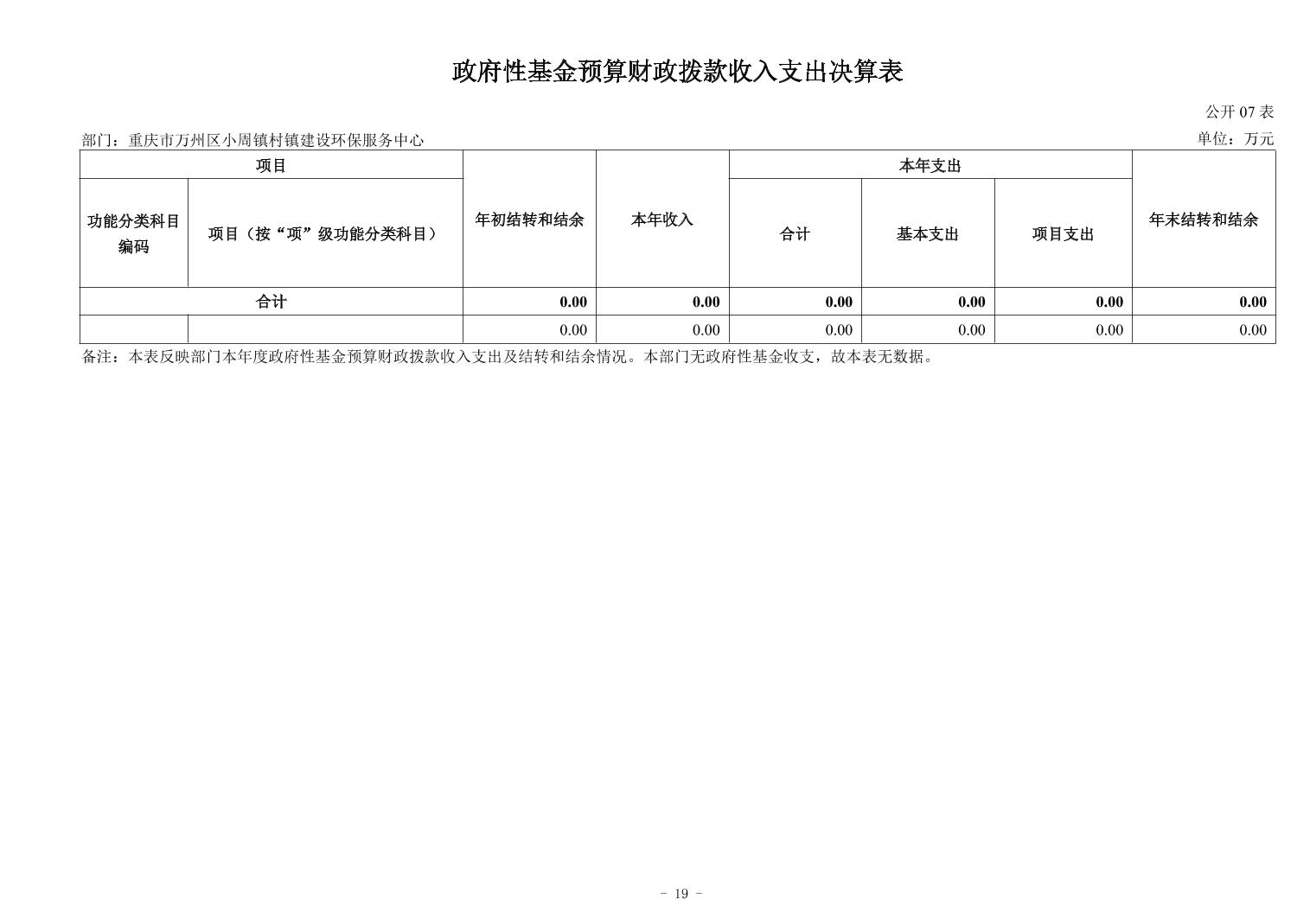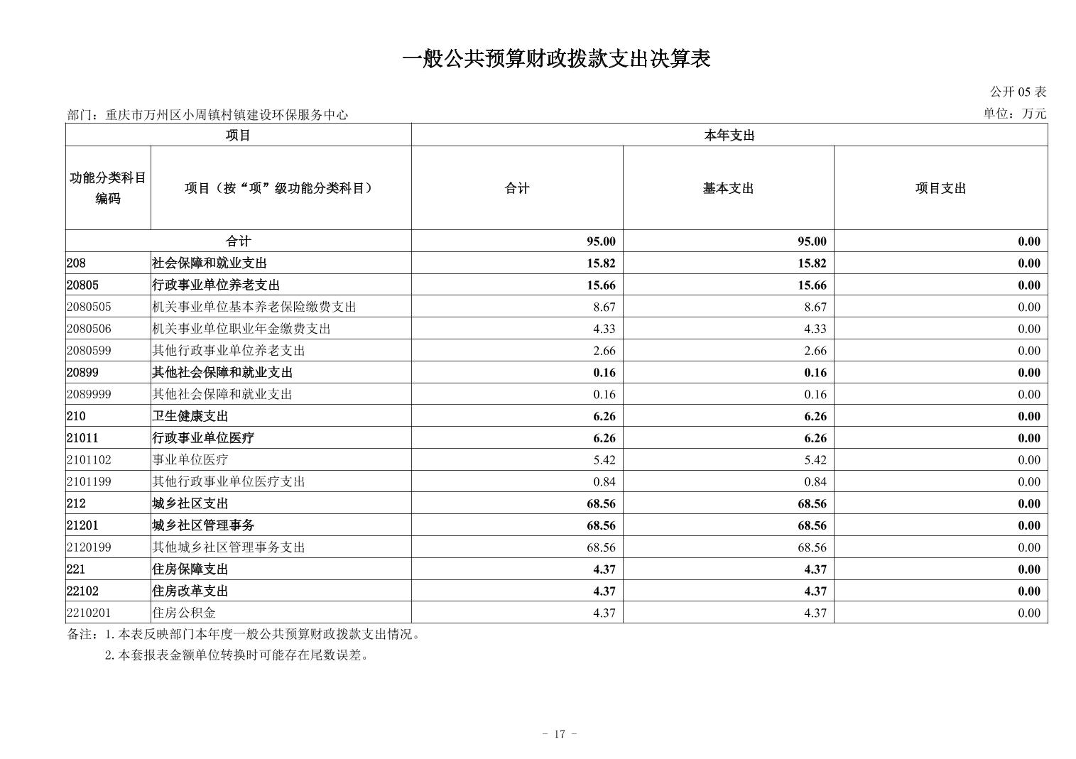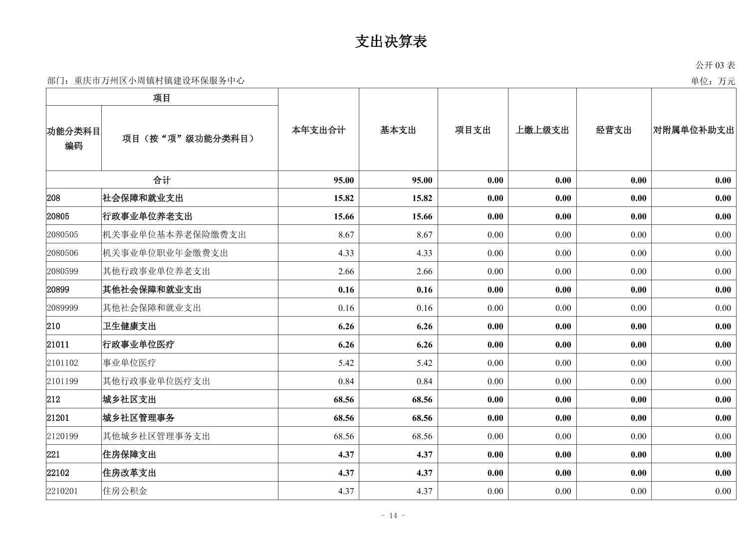 重庆市万州区小周镇村镇建设环保服务中心2024年度决算公开说明及公开报表
