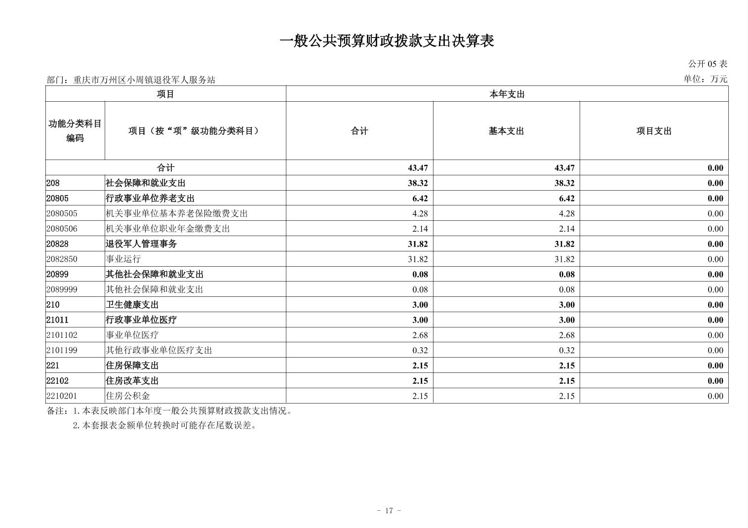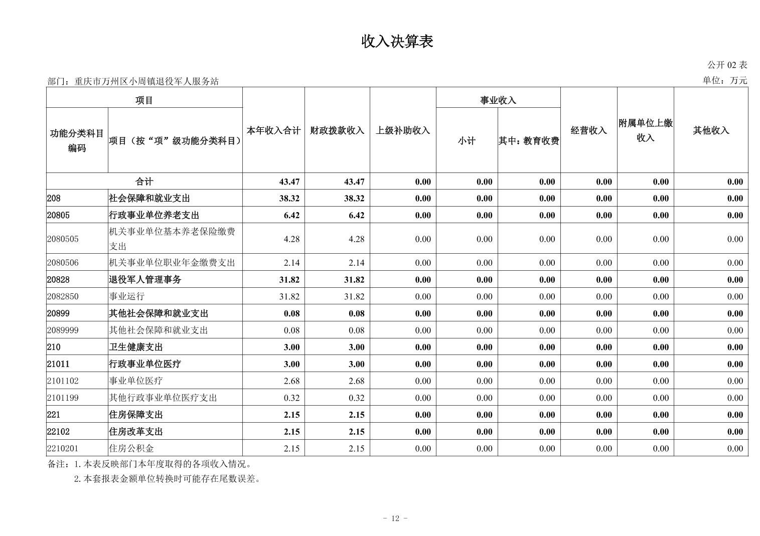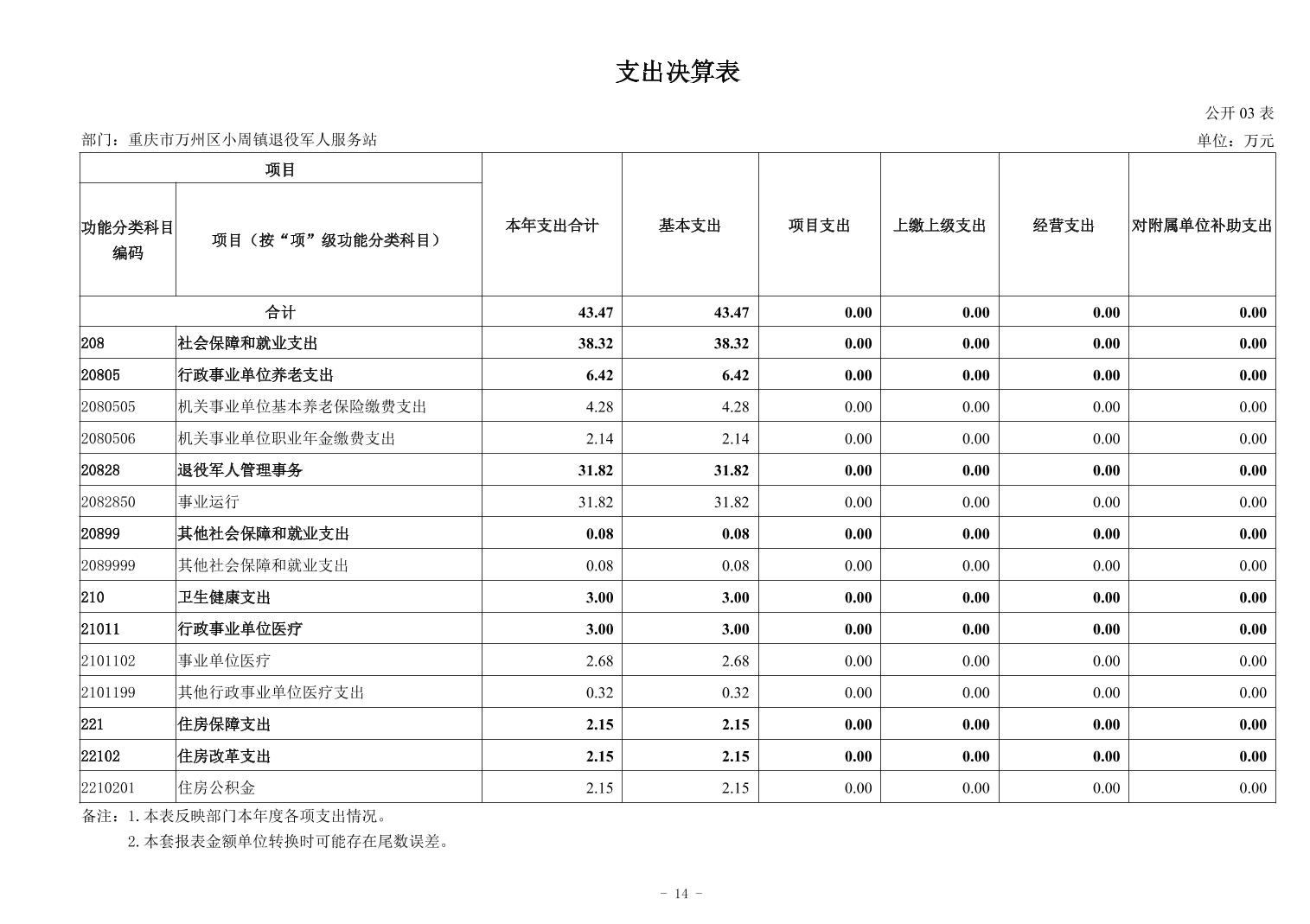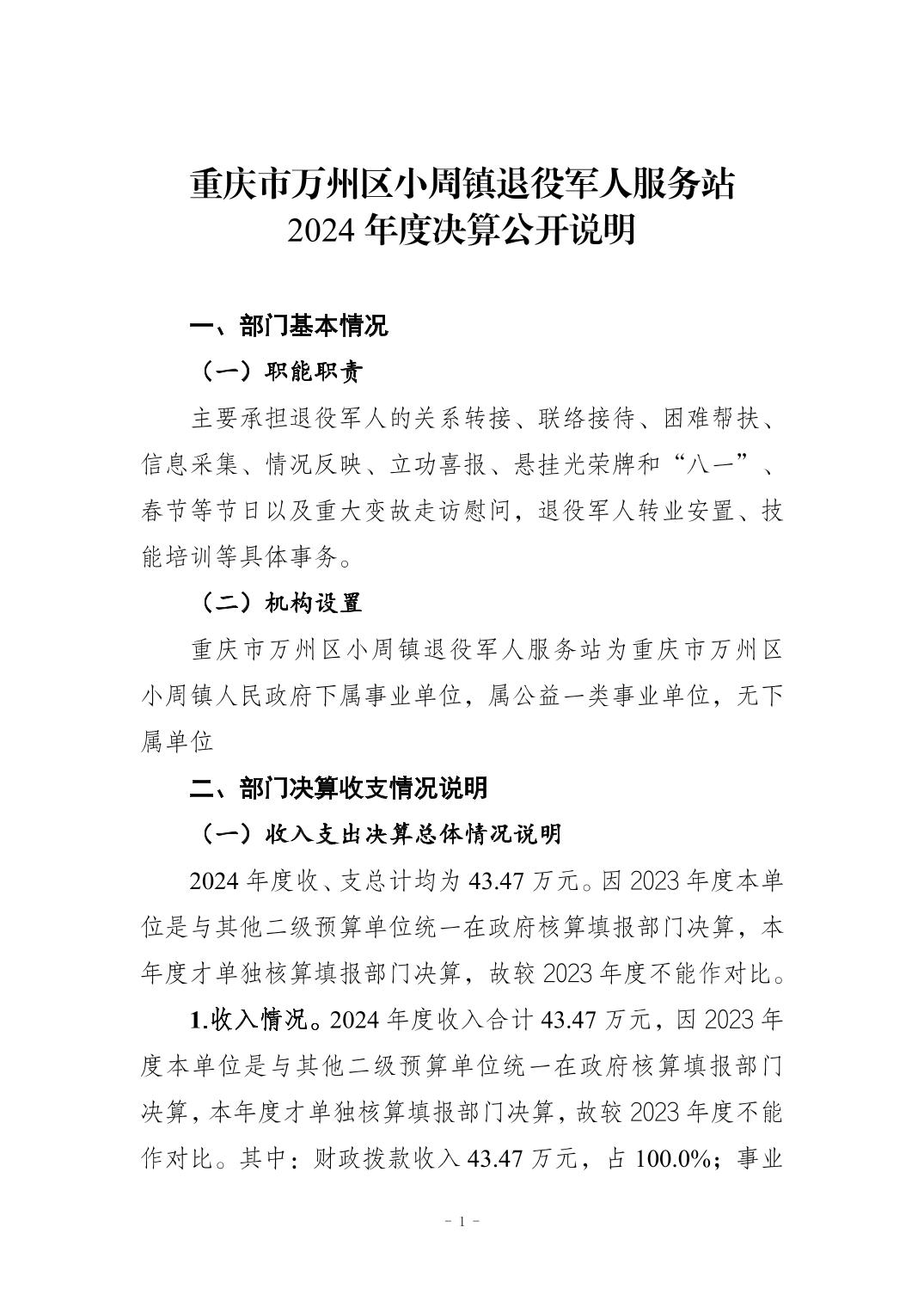重庆市万州区小周镇退役军人服务站2024年度决算公开说明及公开报表