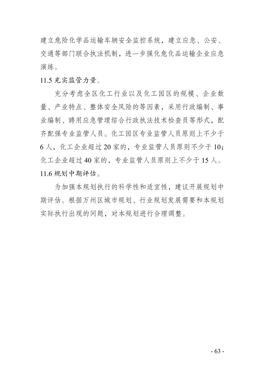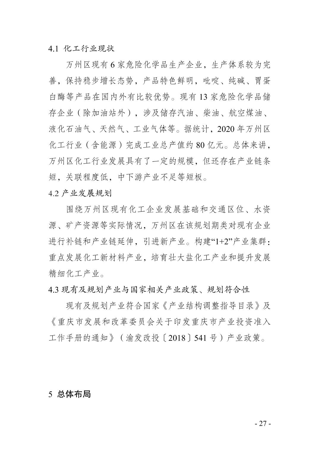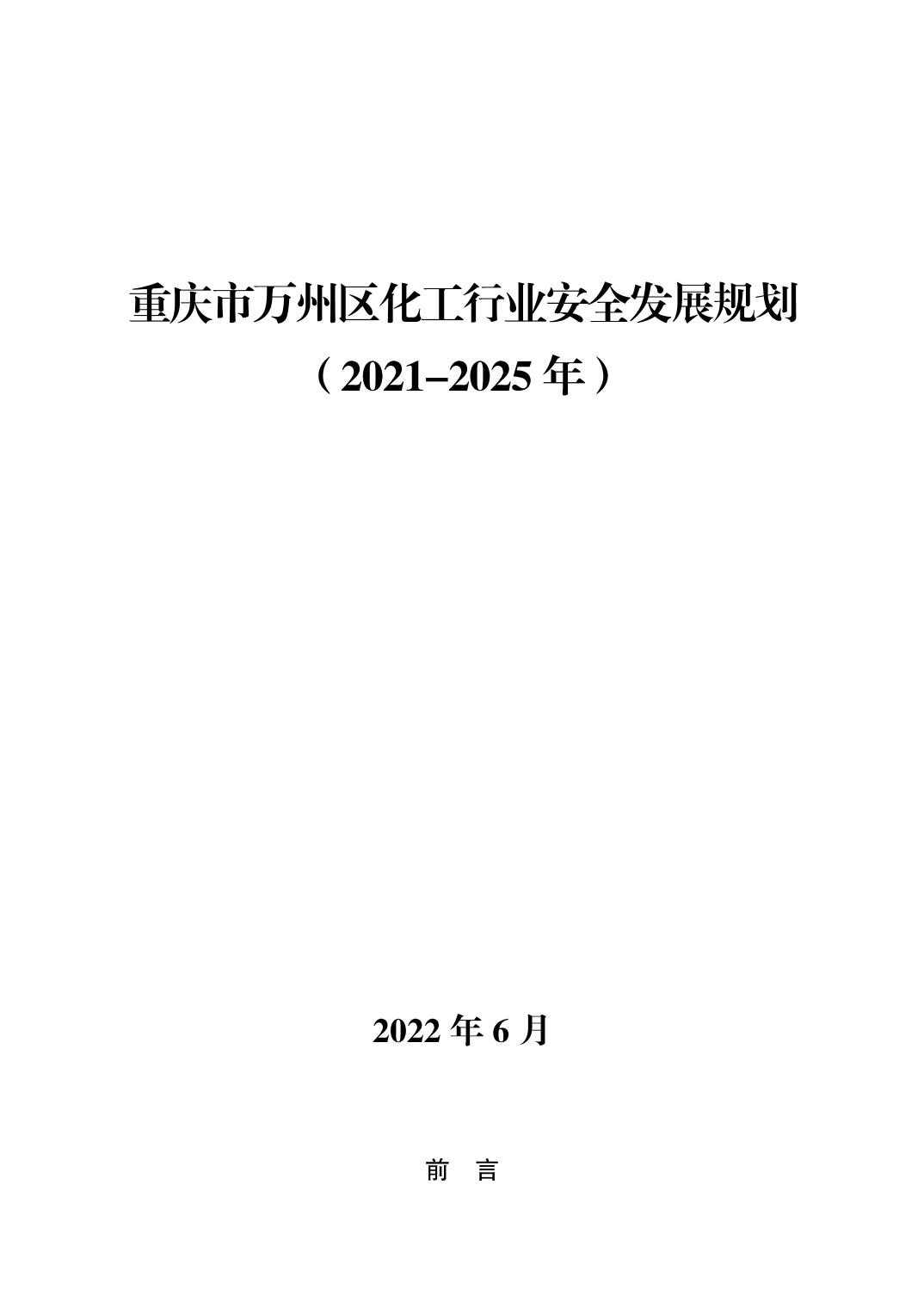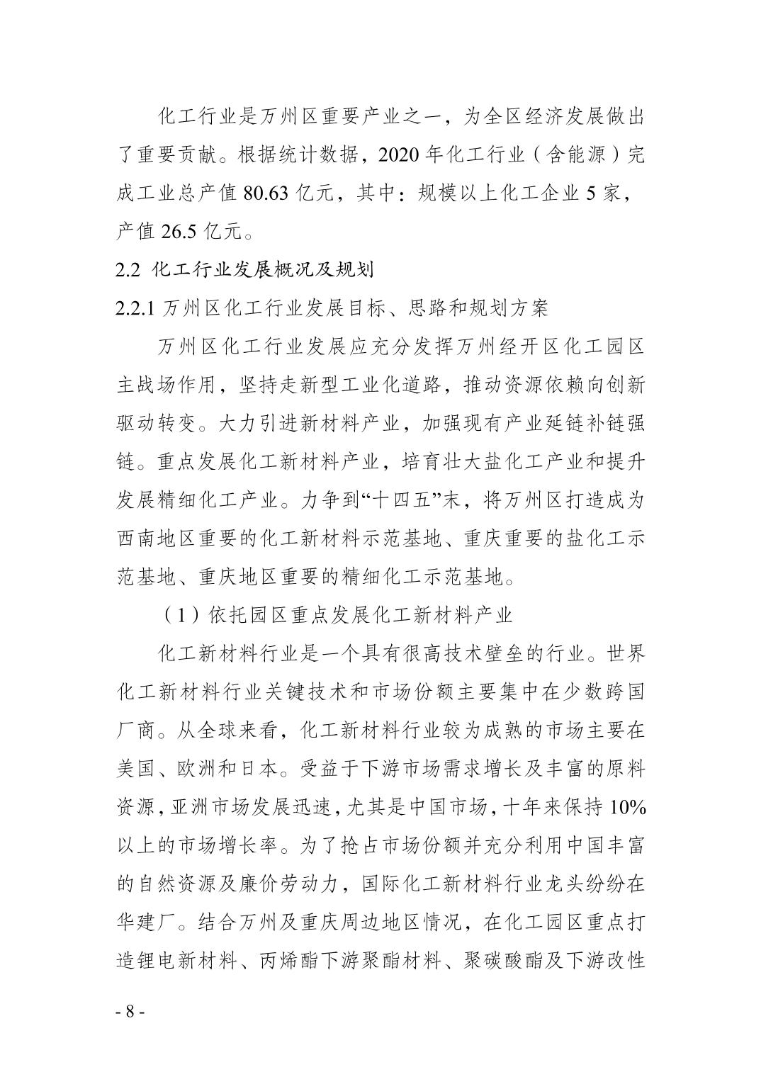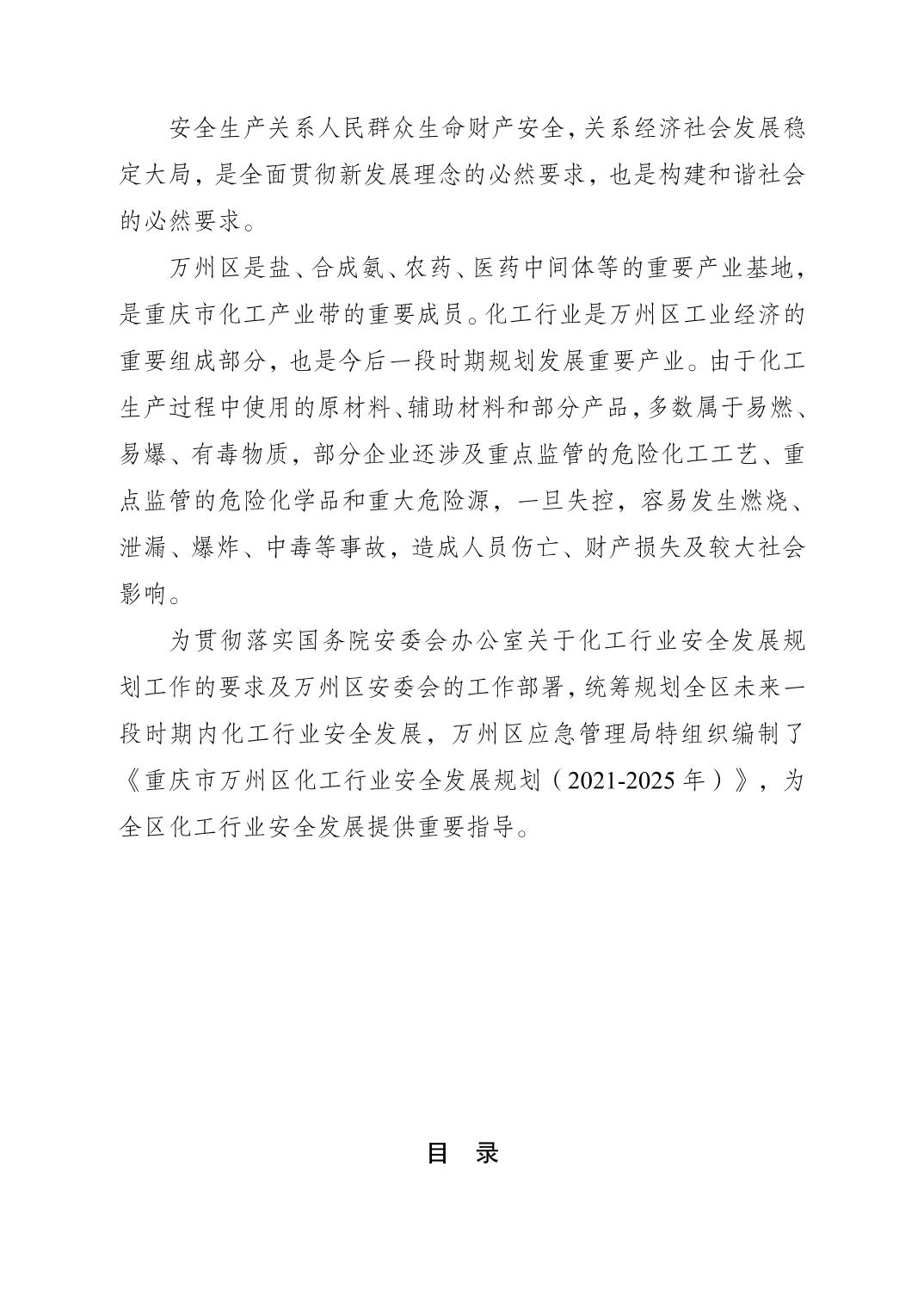 重庆市万州区化工行业安全发展 规划(2021—2025年)