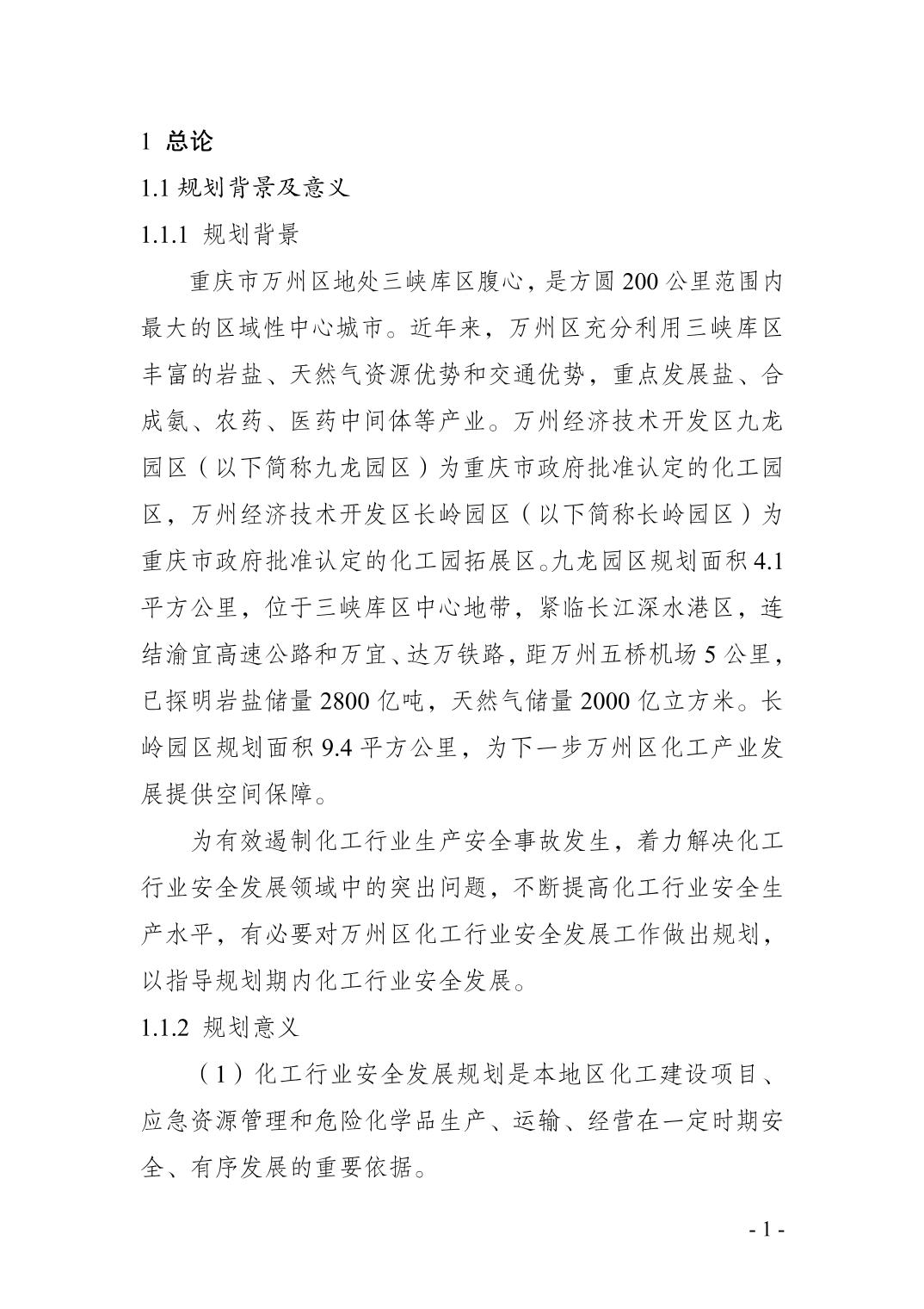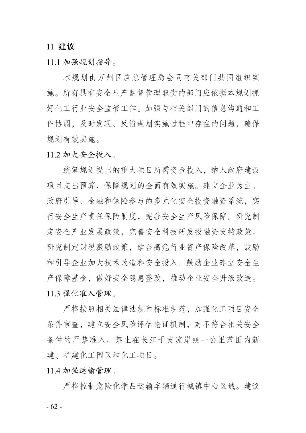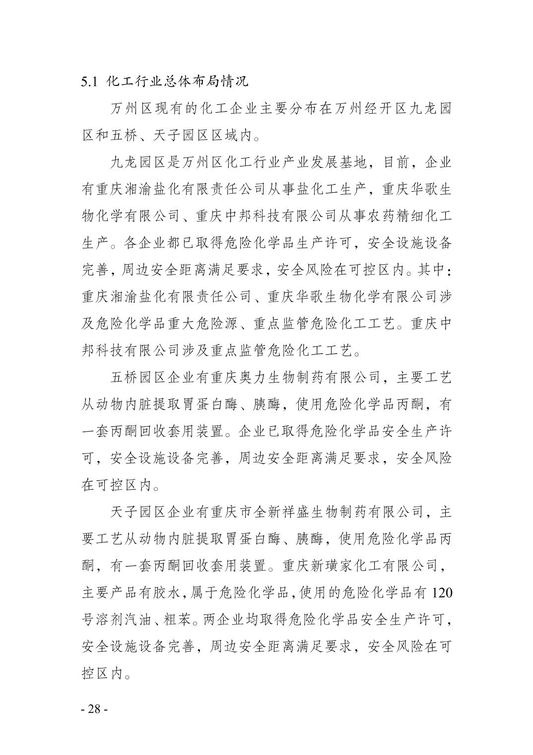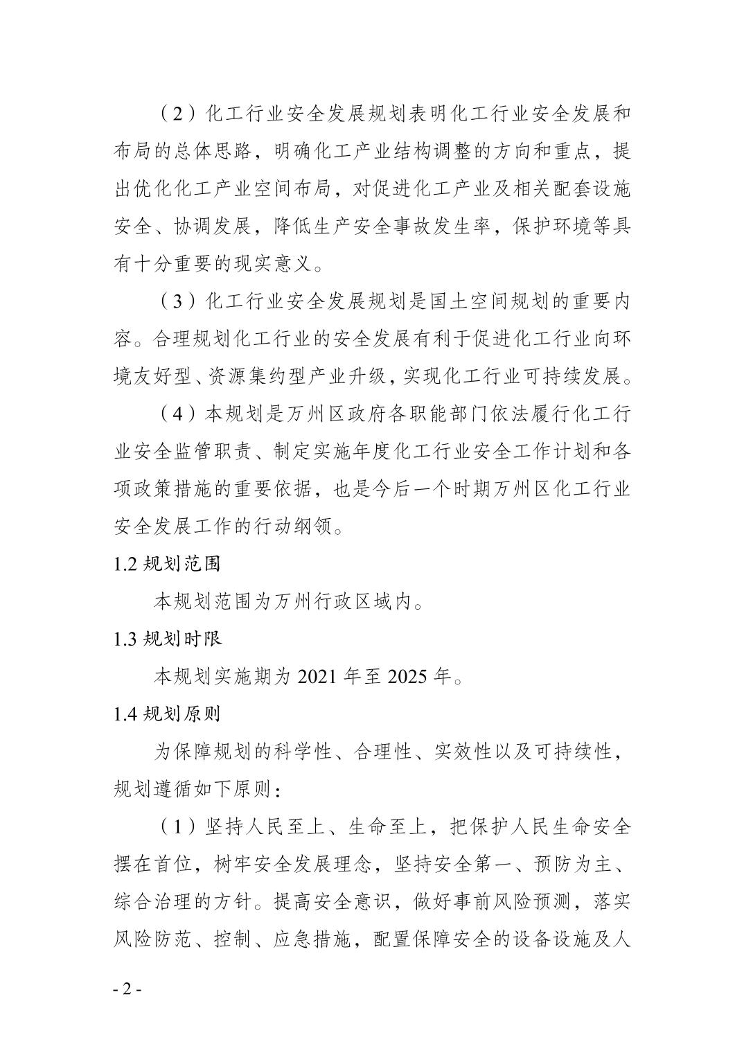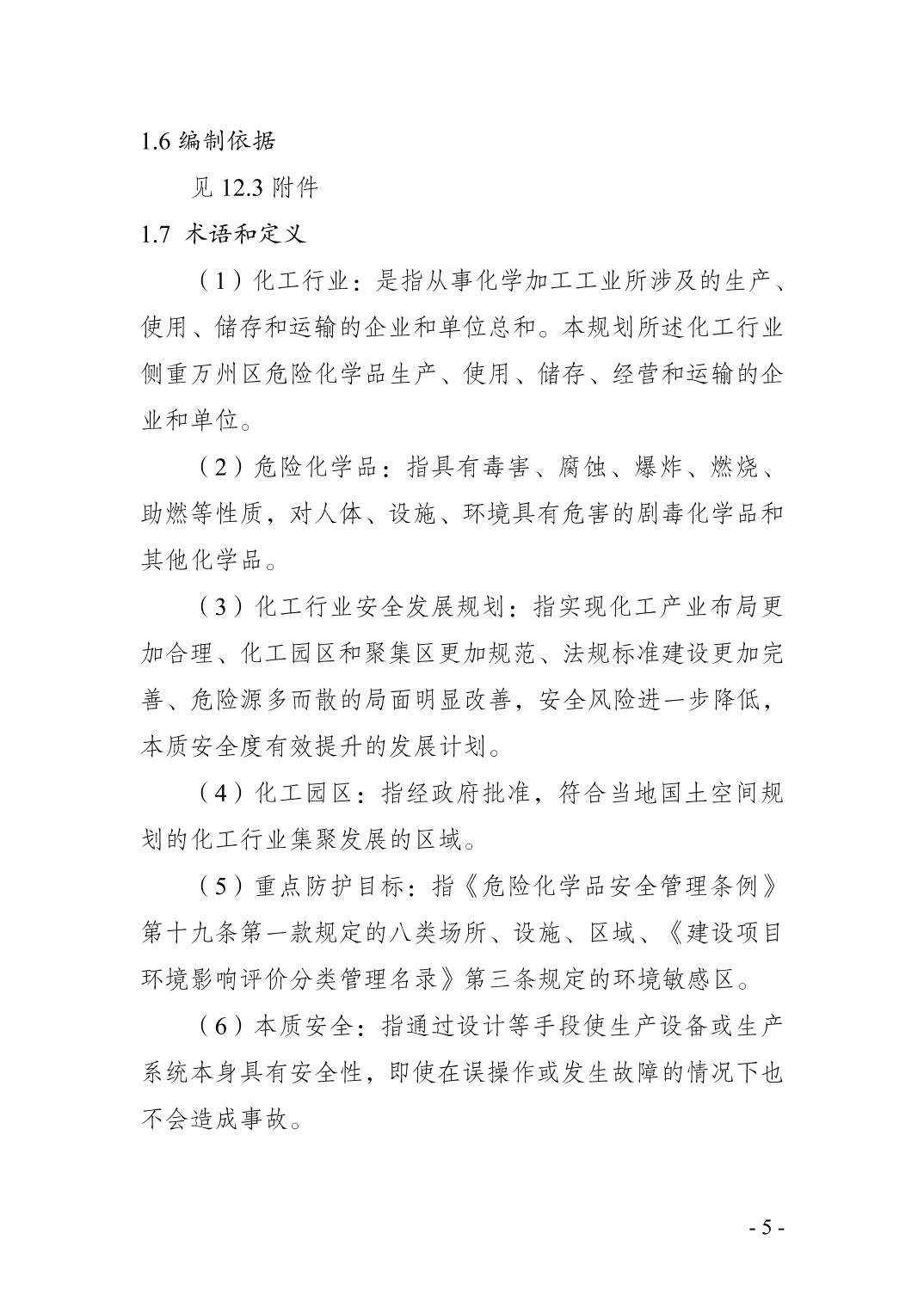 重庆市万州区化工行业安全发展 规划(2021—2025年)