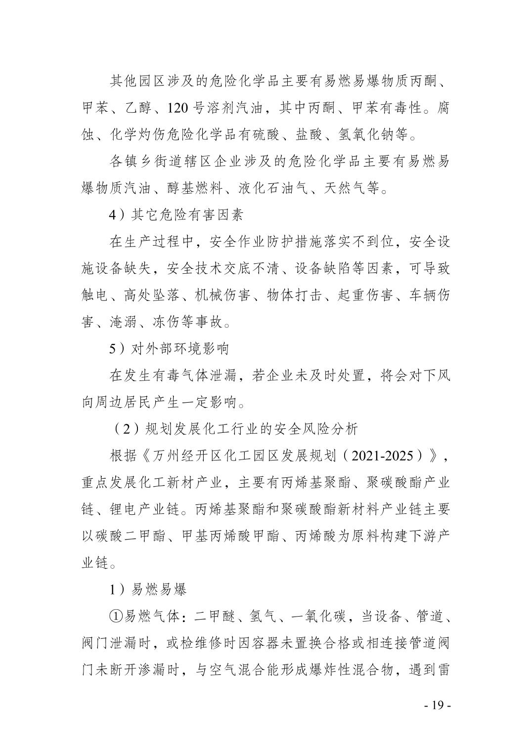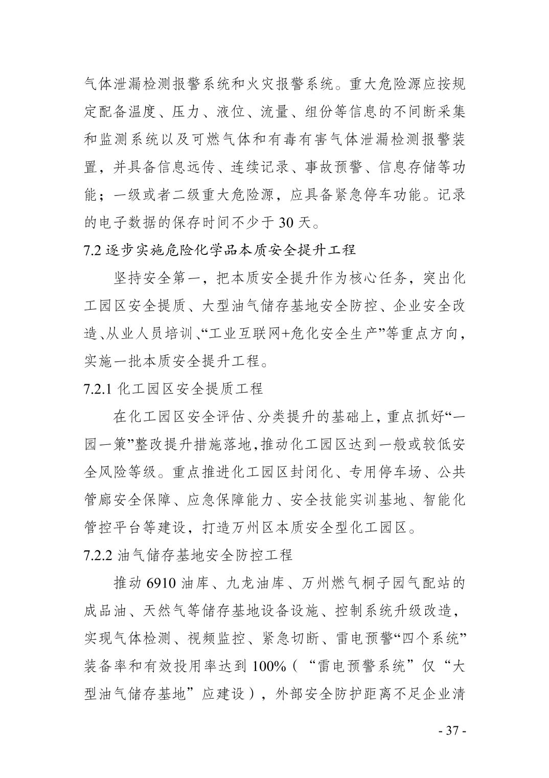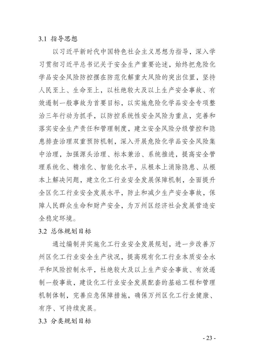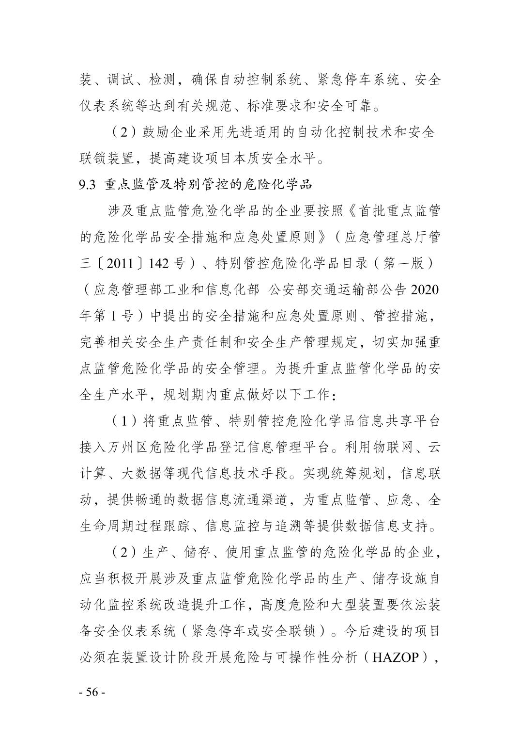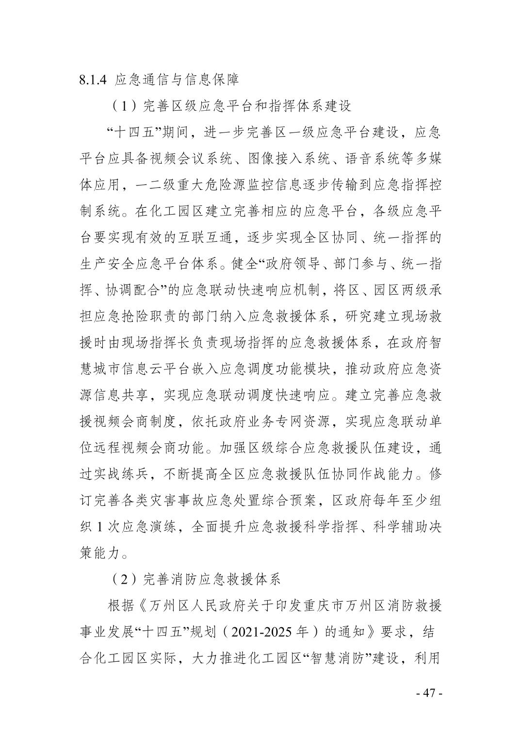 重庆市万州区化工行业安全发展 规划(2021—2025年)