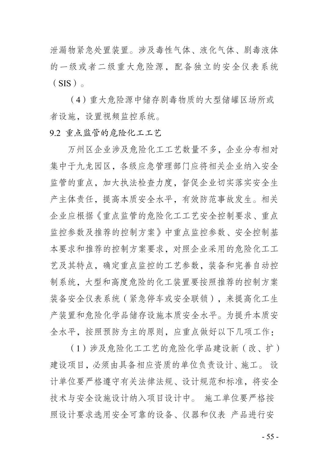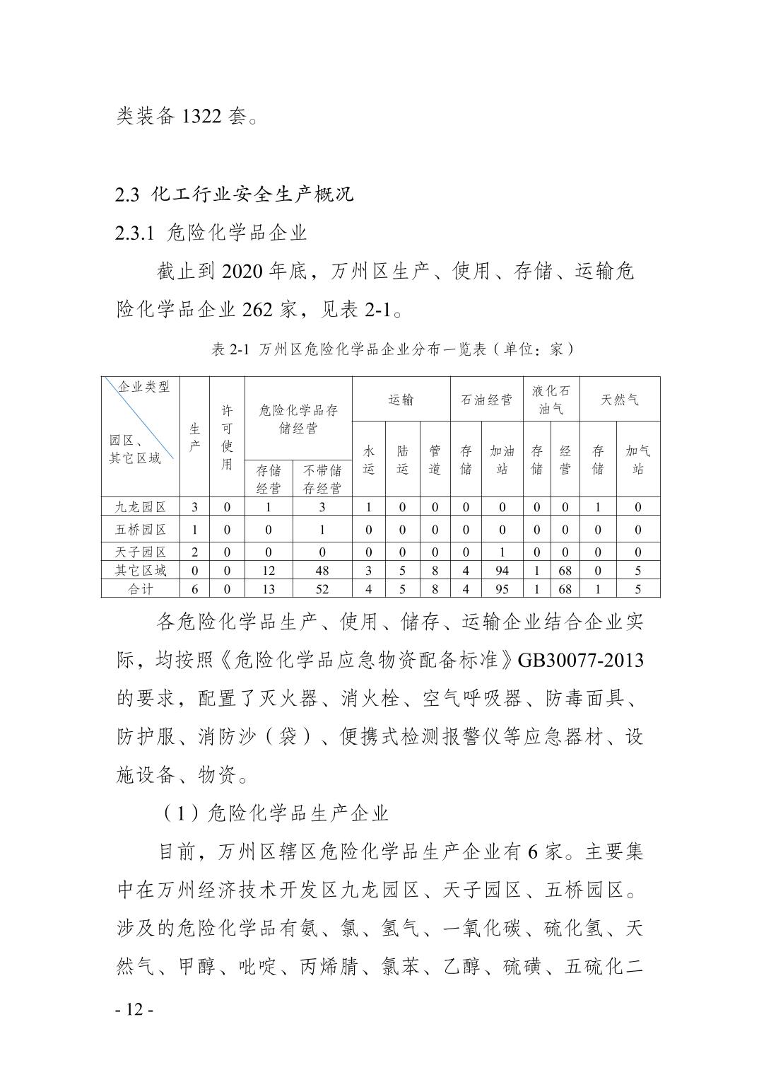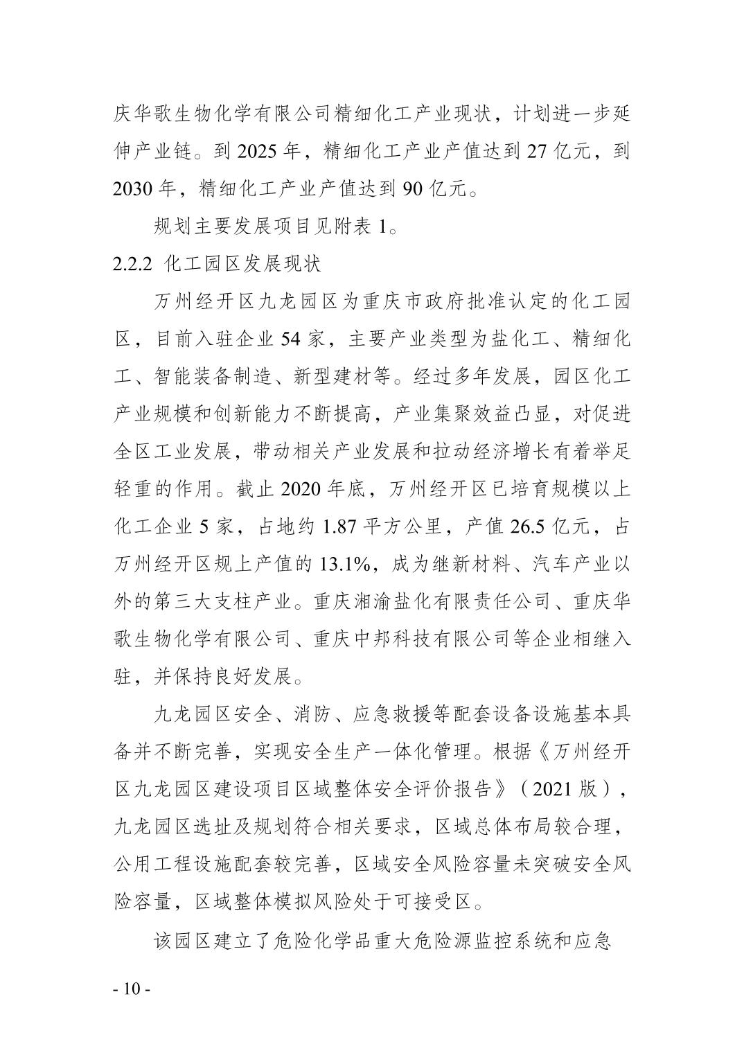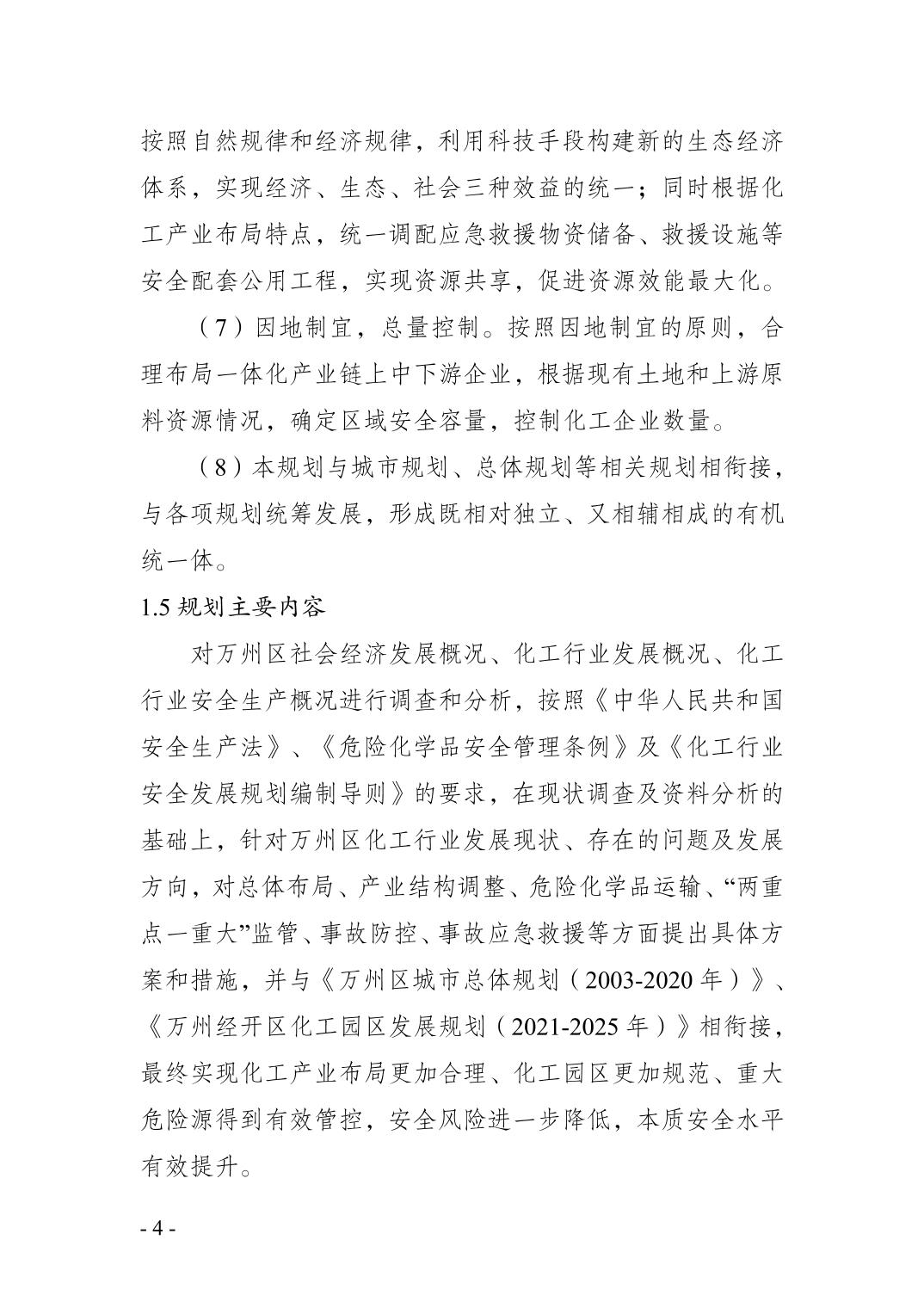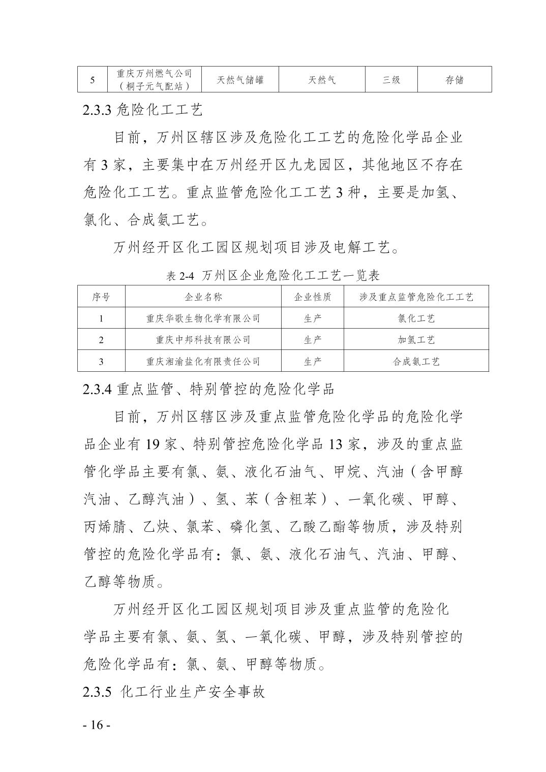重庆市万州区化工行业安全发展 规划(2021—2025年)