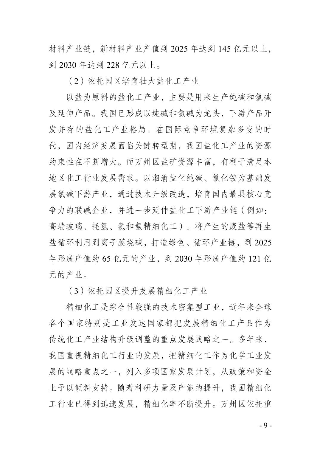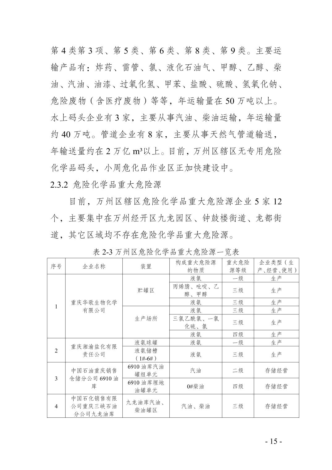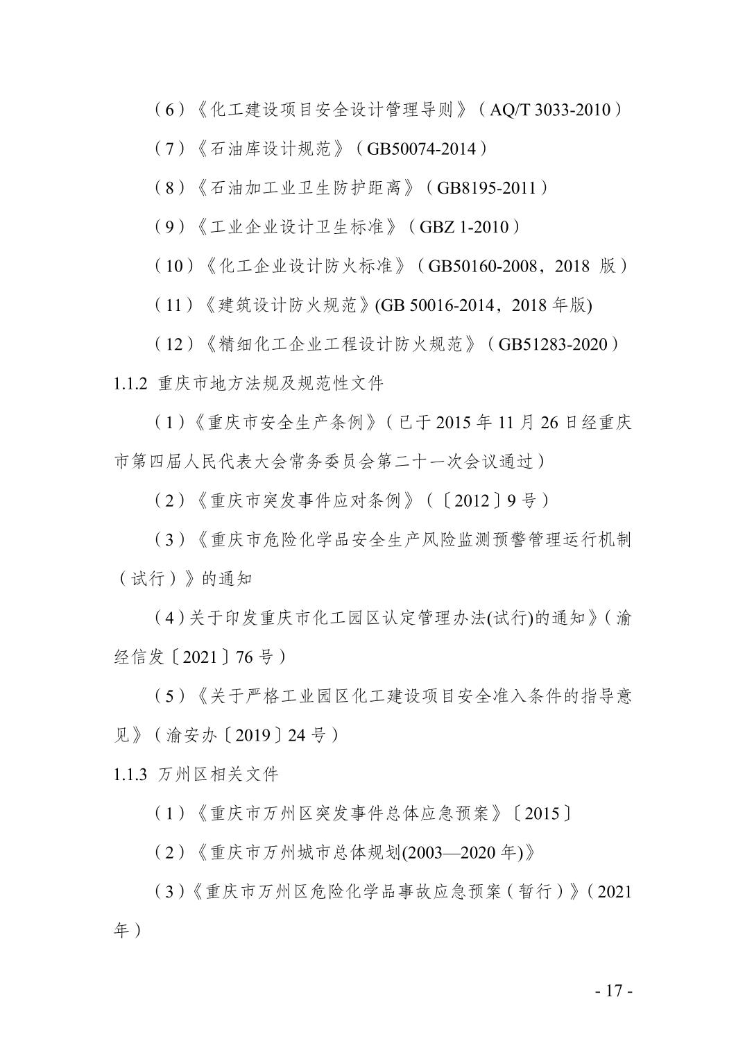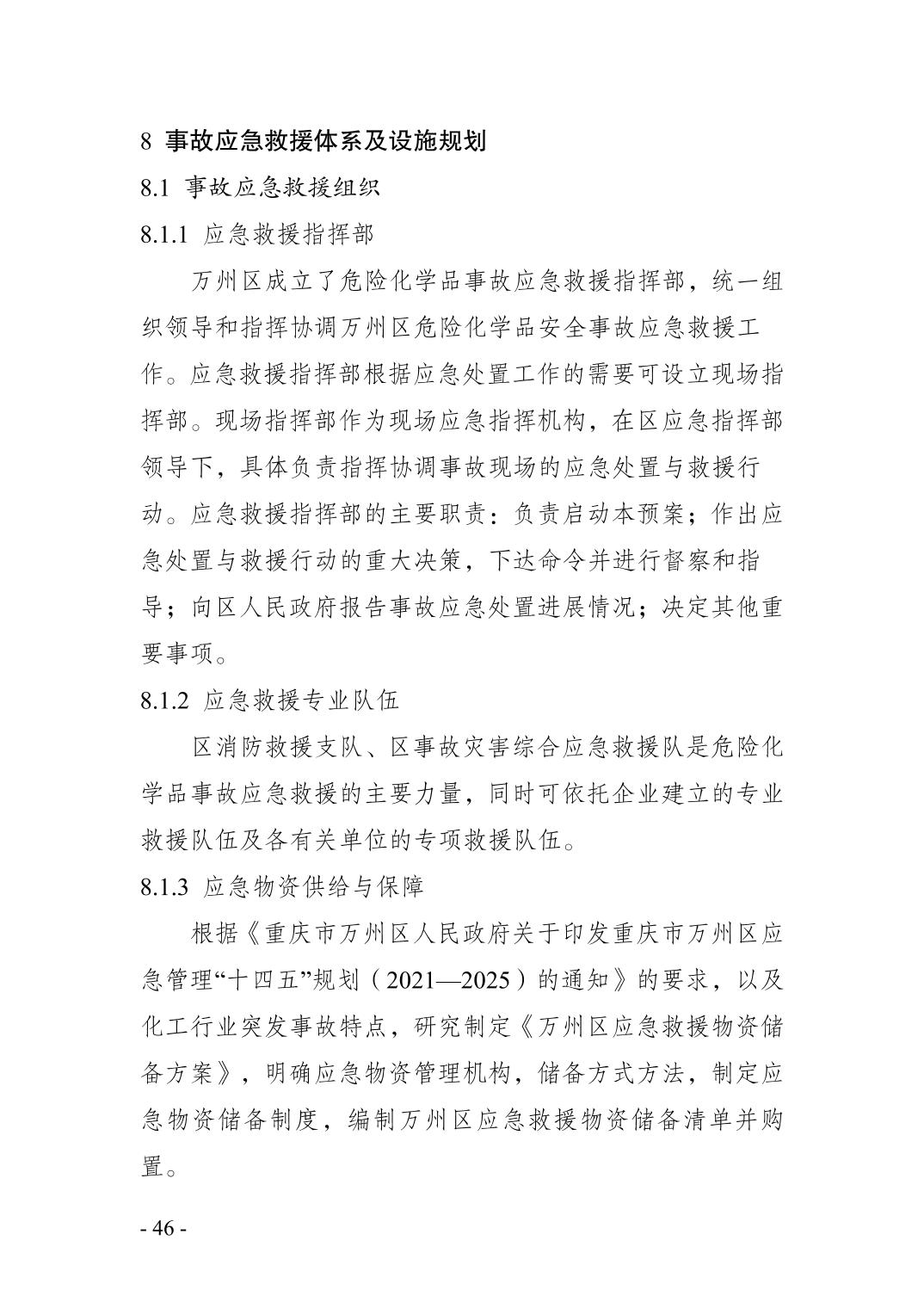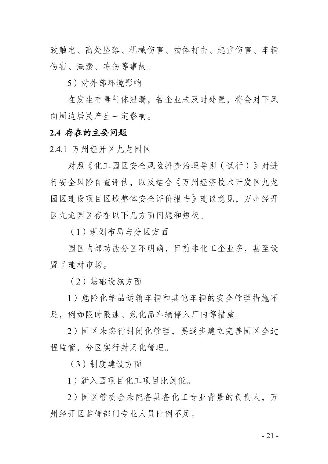 重庆市万州区化工行业安全发展 规划(2021—2025年)