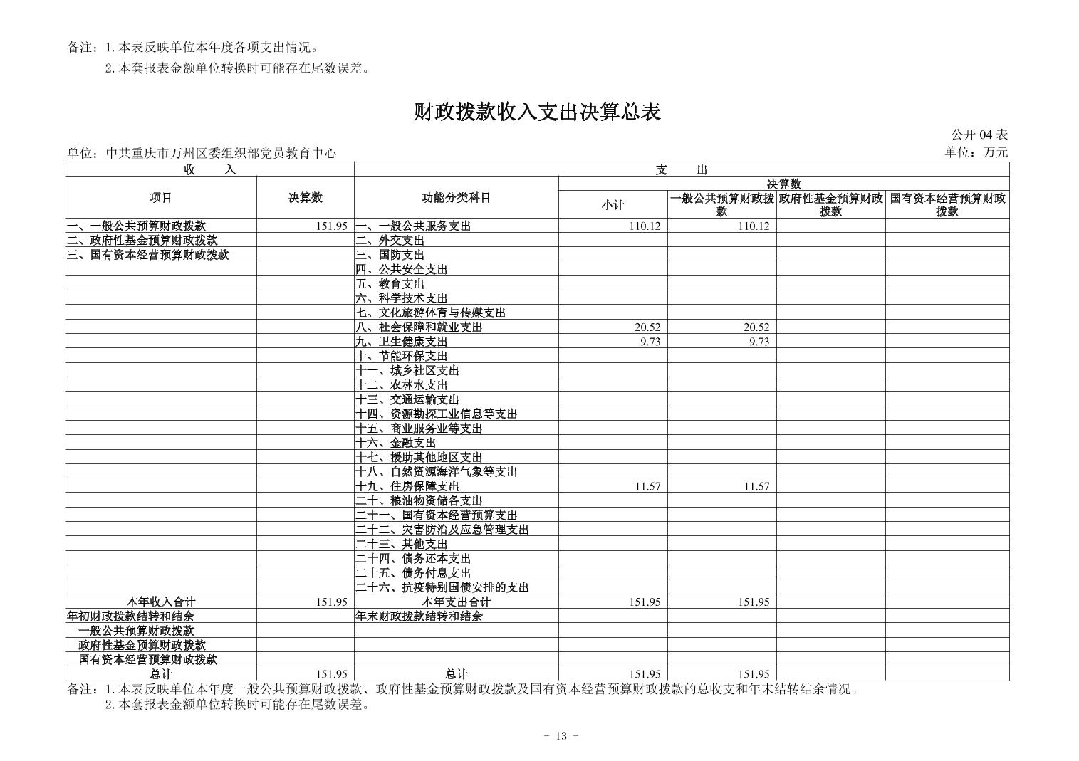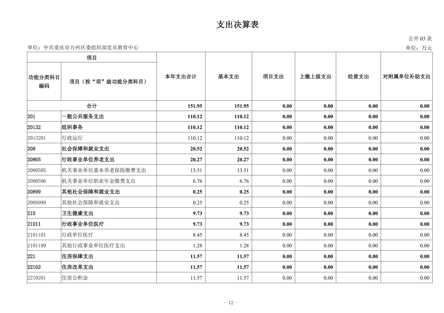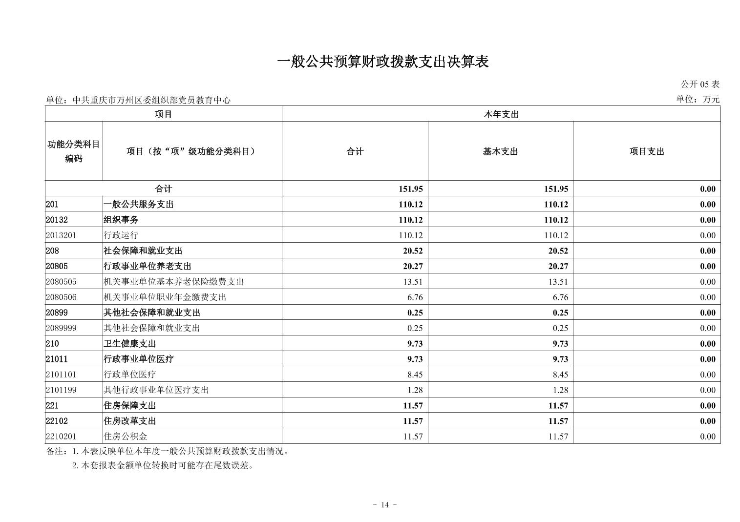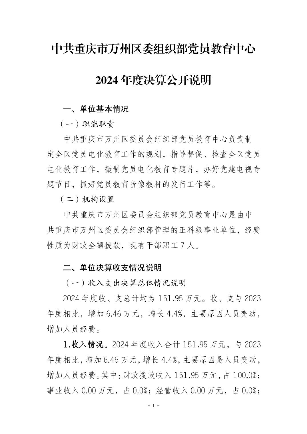 中共重庆市万州区委组织部党员教育中心 2024年度决算公开说明