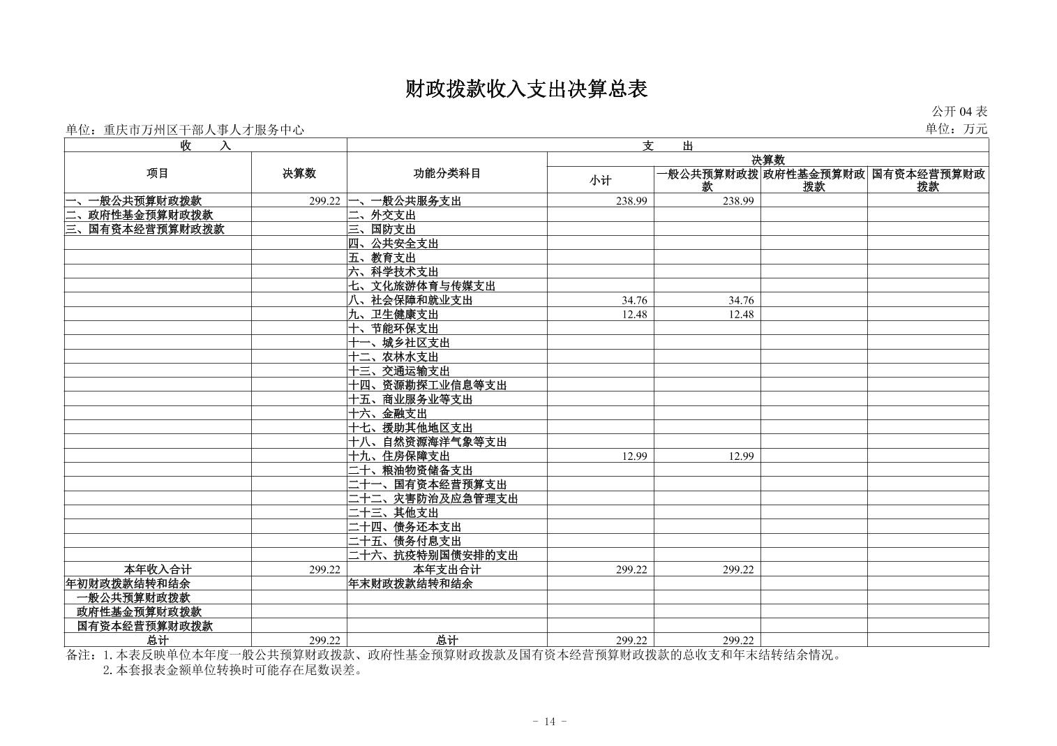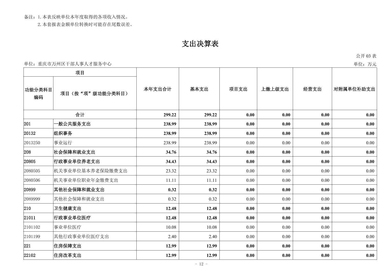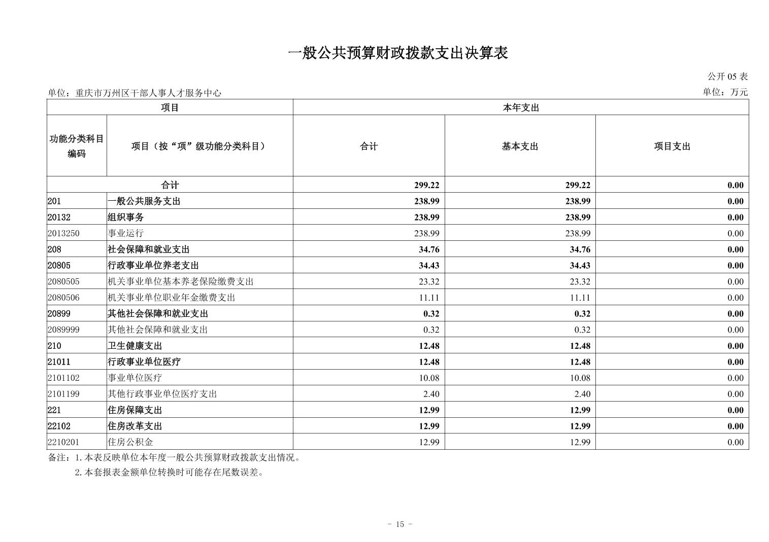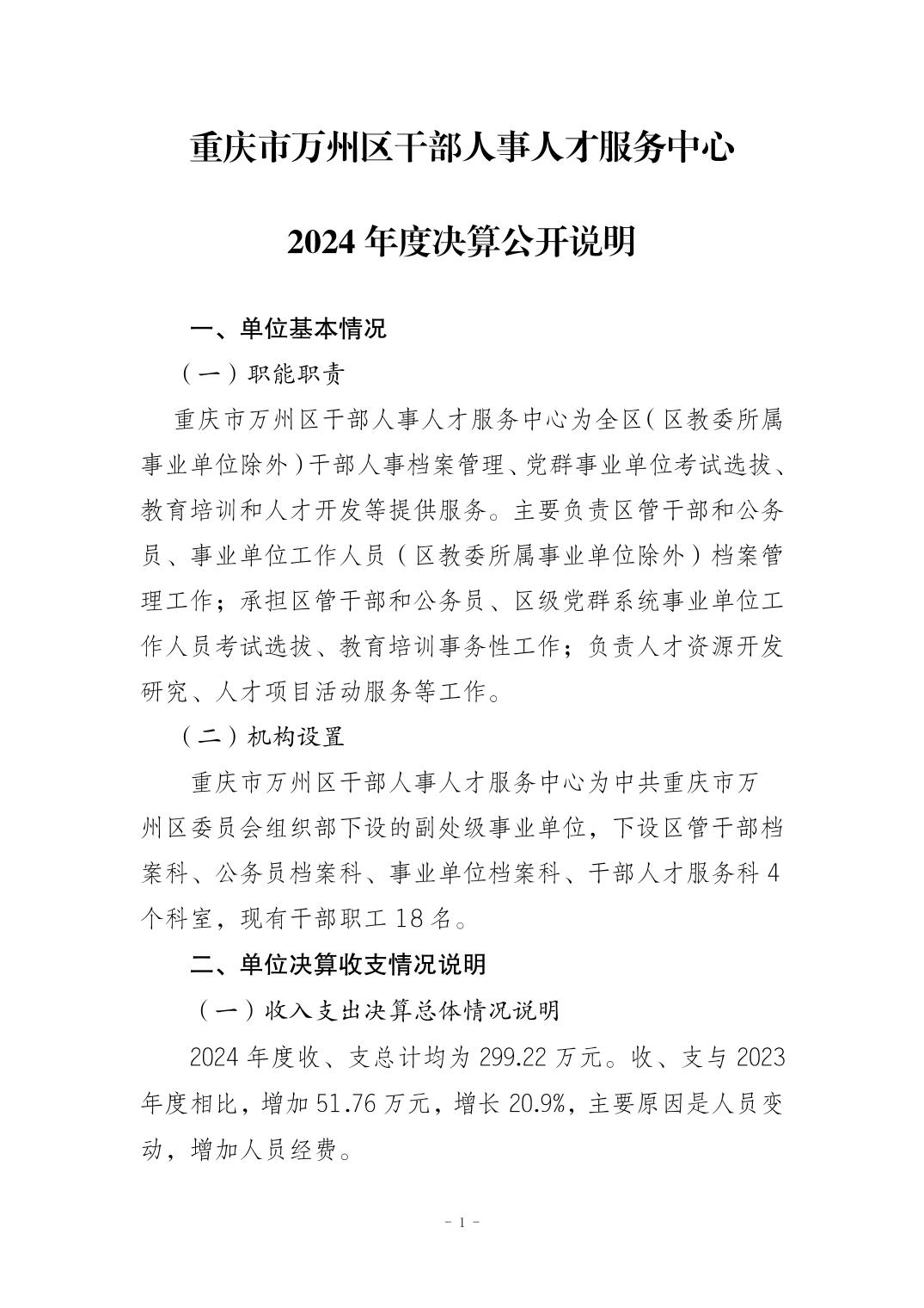 重庆市万州区干部人事人才服务中心 2024年度决算公开说明
