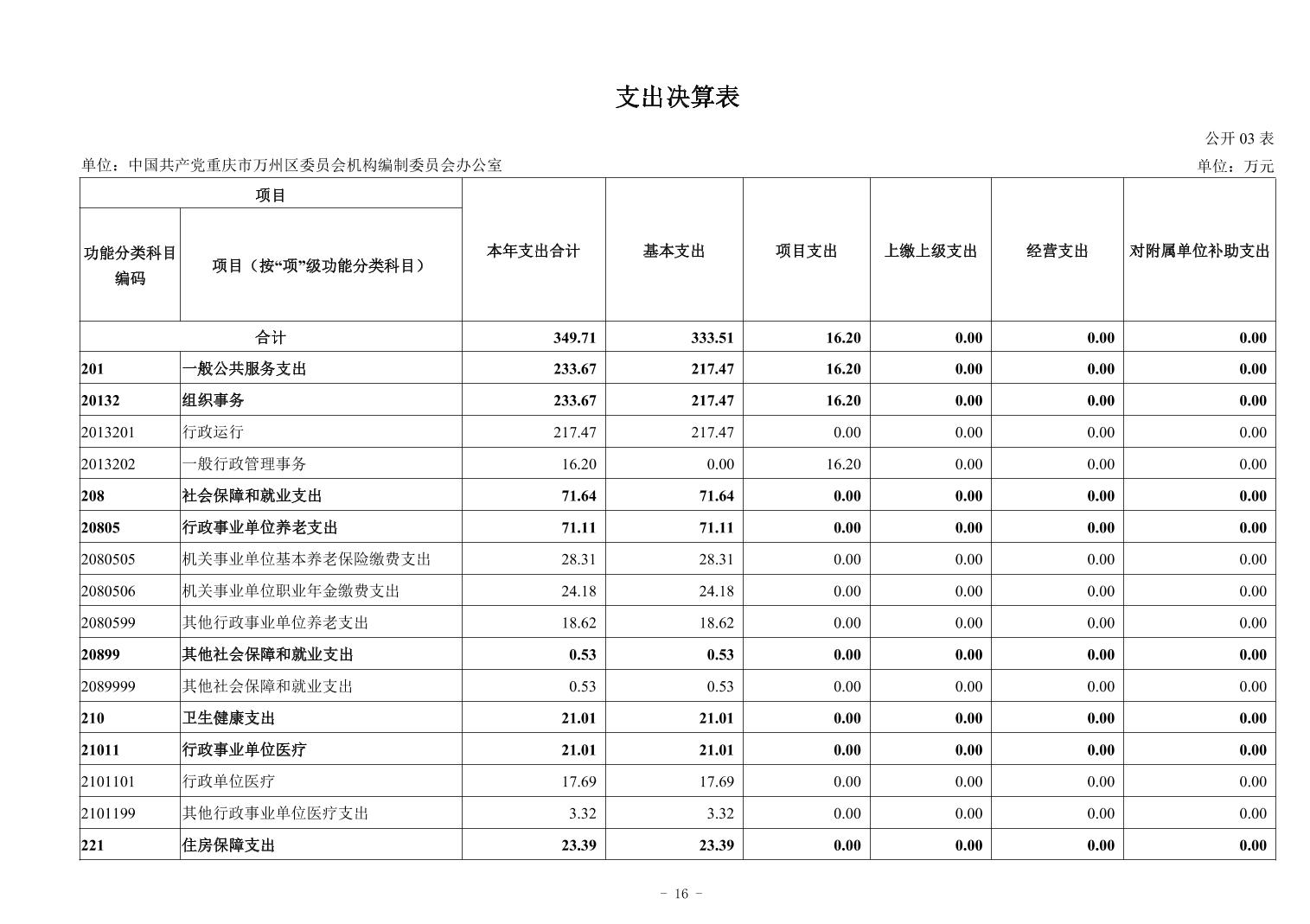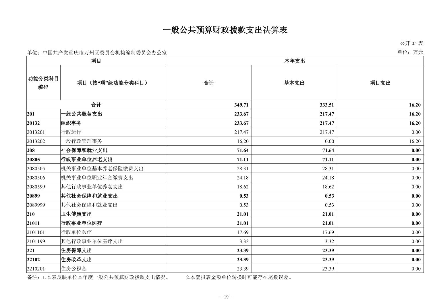 中国共产党重庆市万州区委员会机构编制委员会办公室2024年度决算公开说明