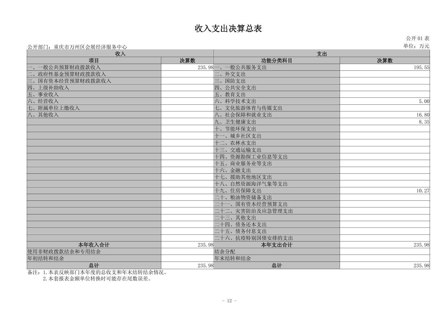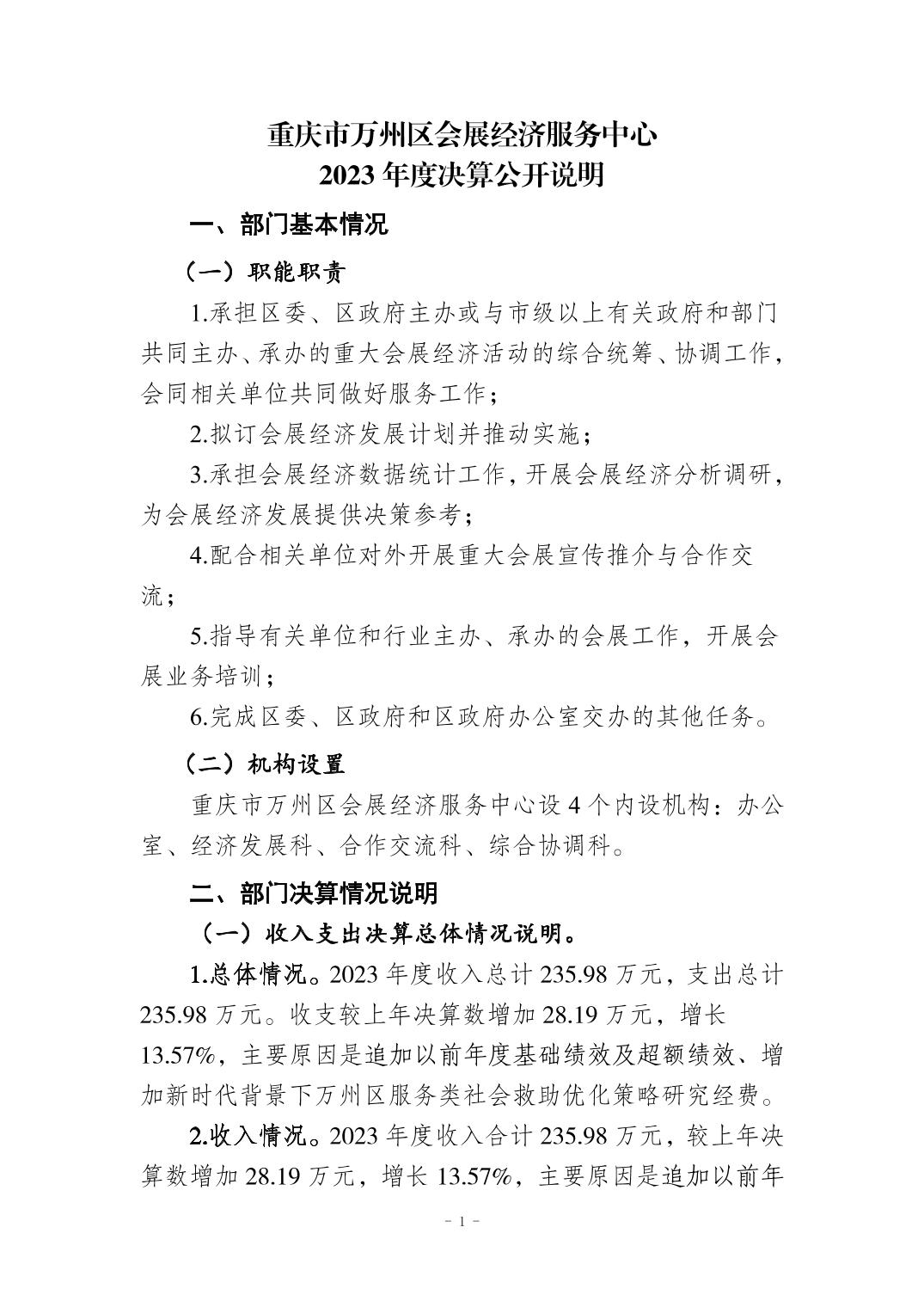 重庆市万州区会展经济服务中心2023年度决算公开说明
