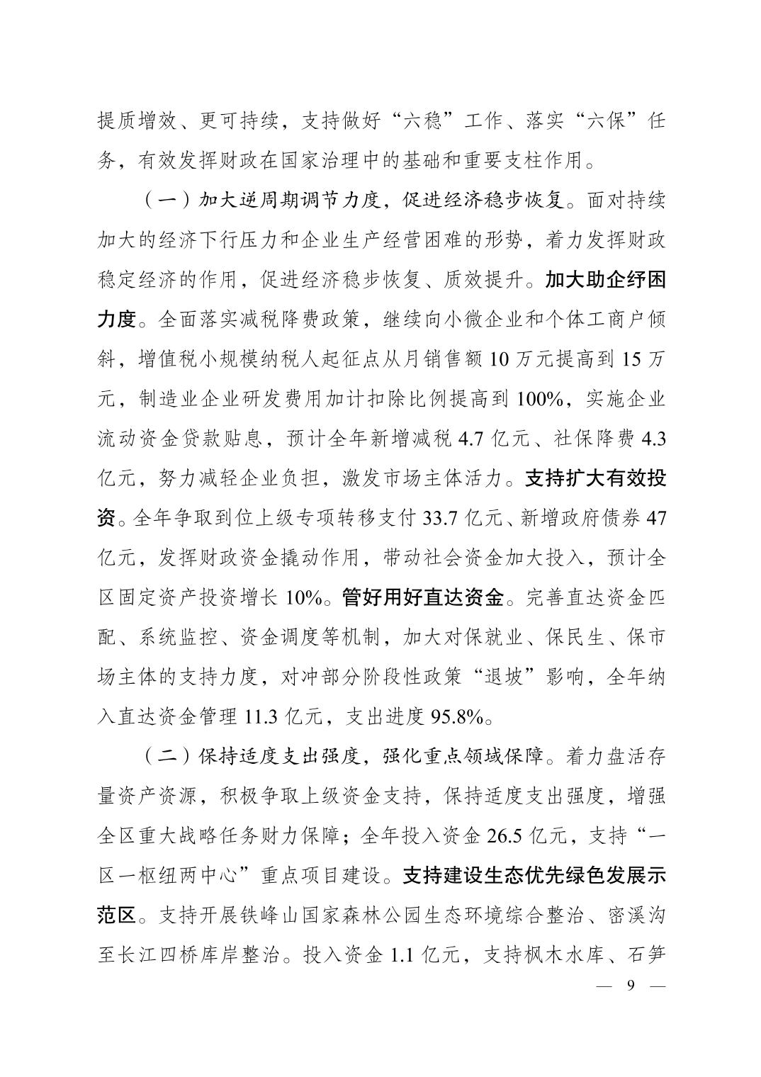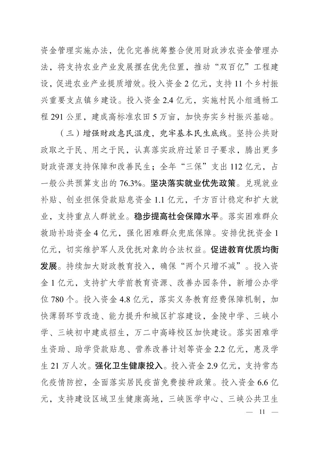 重庆市万州区2021年预算执行和2022年预算草案的报告