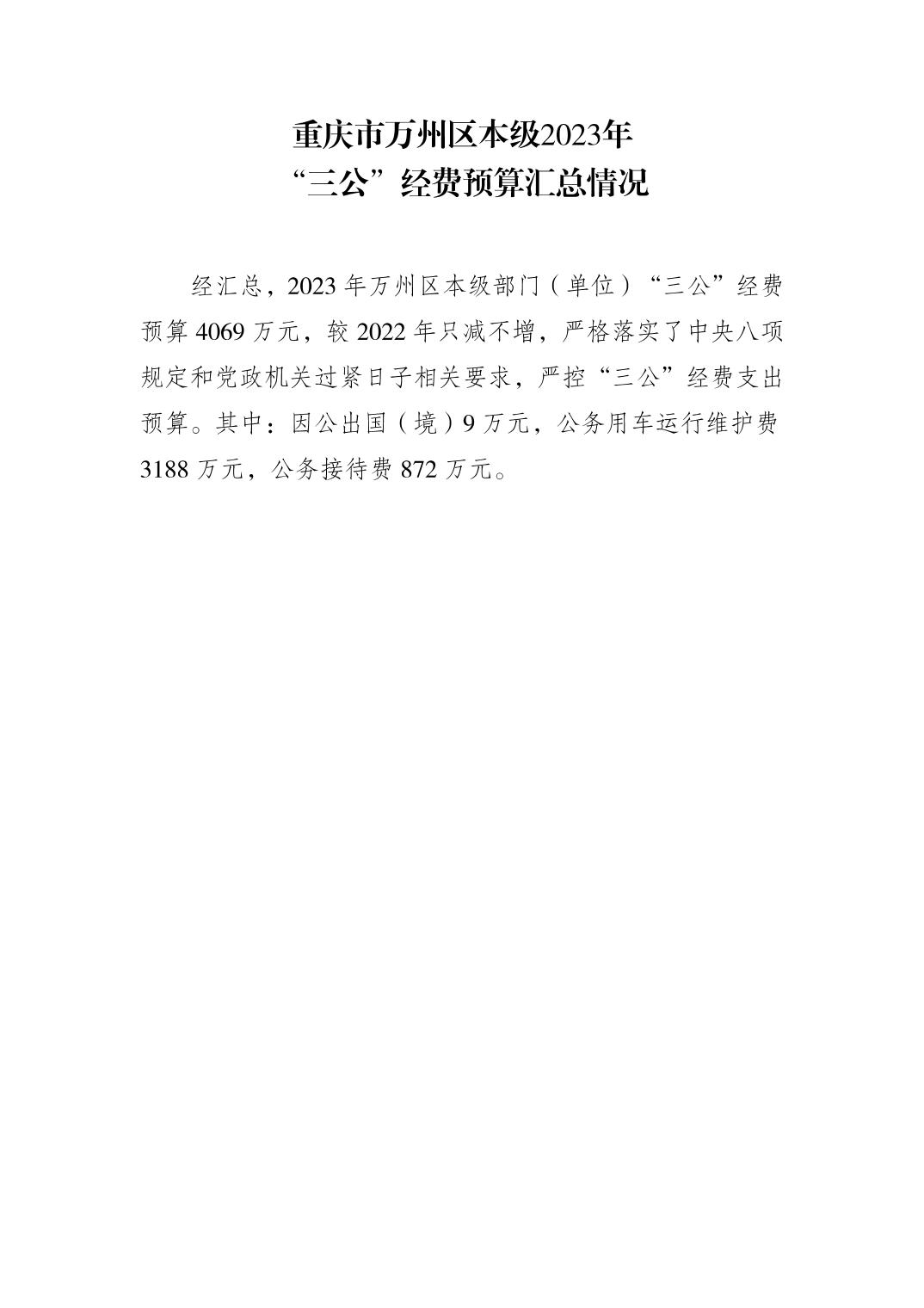 重庆市万州区本级2023年“三公”经费预算汇总情况
