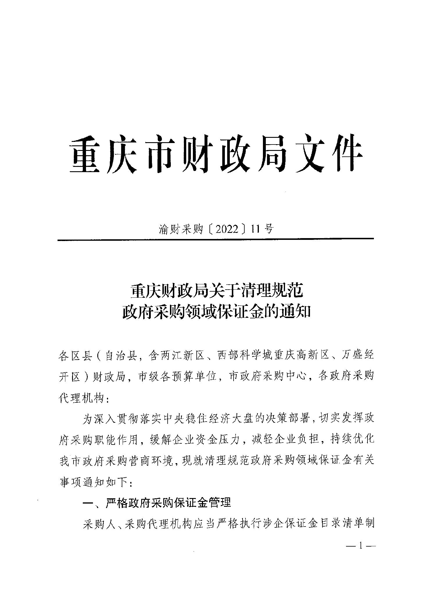 重庆市万州区财政局转发重庆市财政局《关于清理规范政府采购领域保证金的通知》的通知