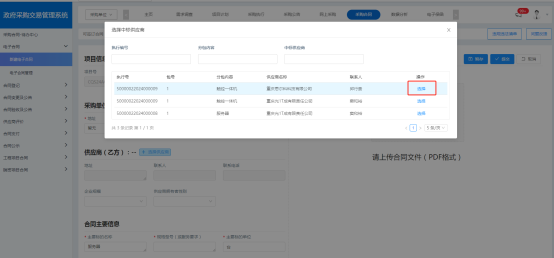 第二步:上传合同PDF文件。点击“上传”按钮,上传PDF格式的合同文件,如图3-43-5所示。