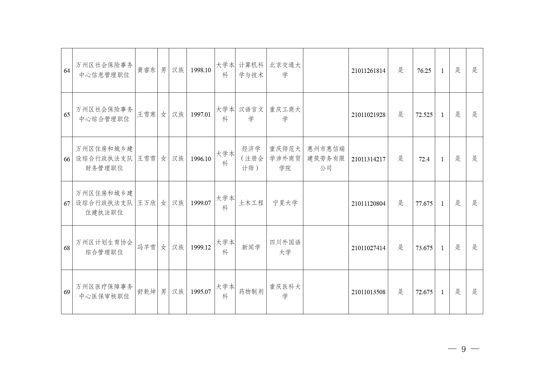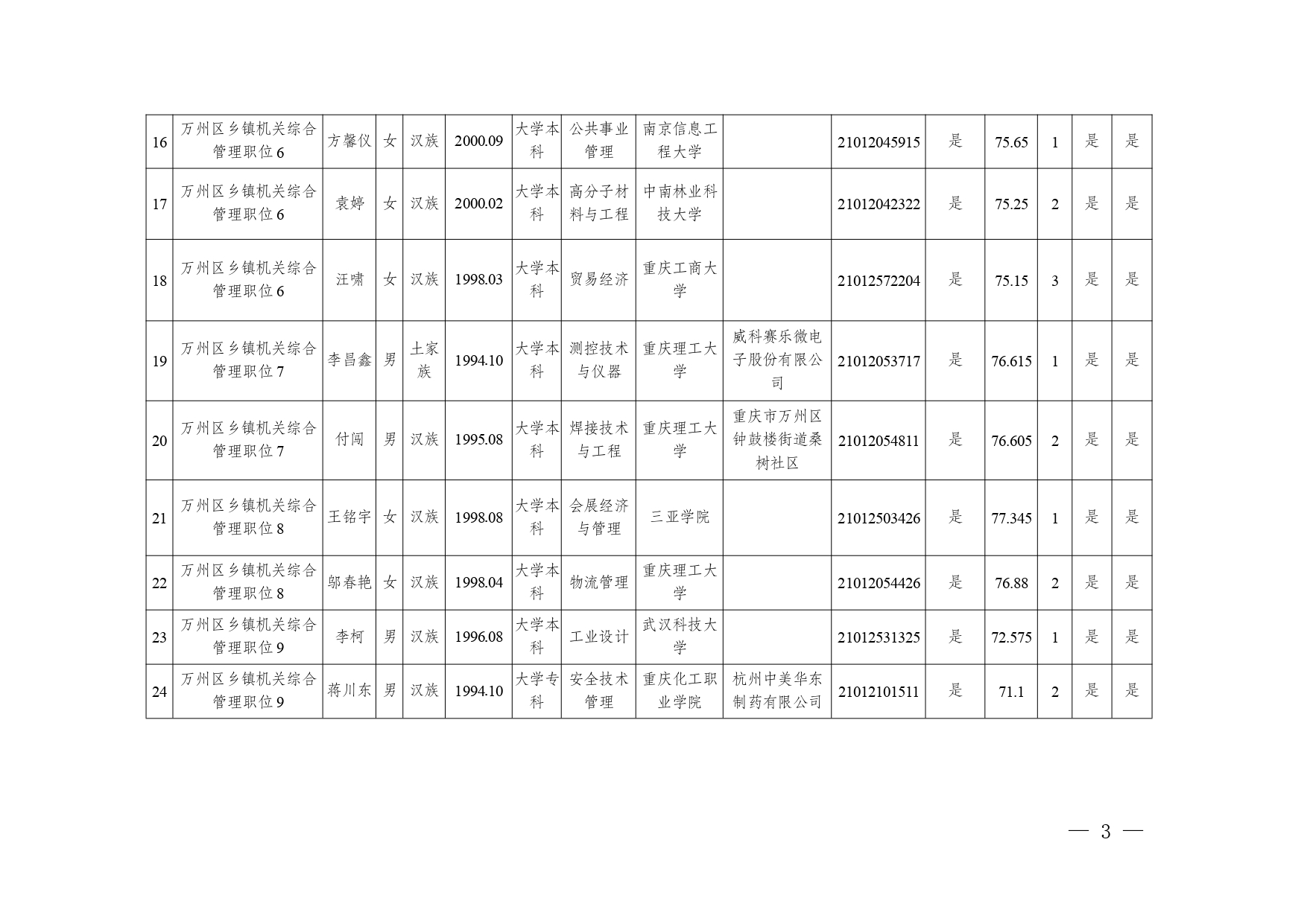 万州区2022年度拟录用公务员(参照公务员法管理单位工作人员)公示(第一批)