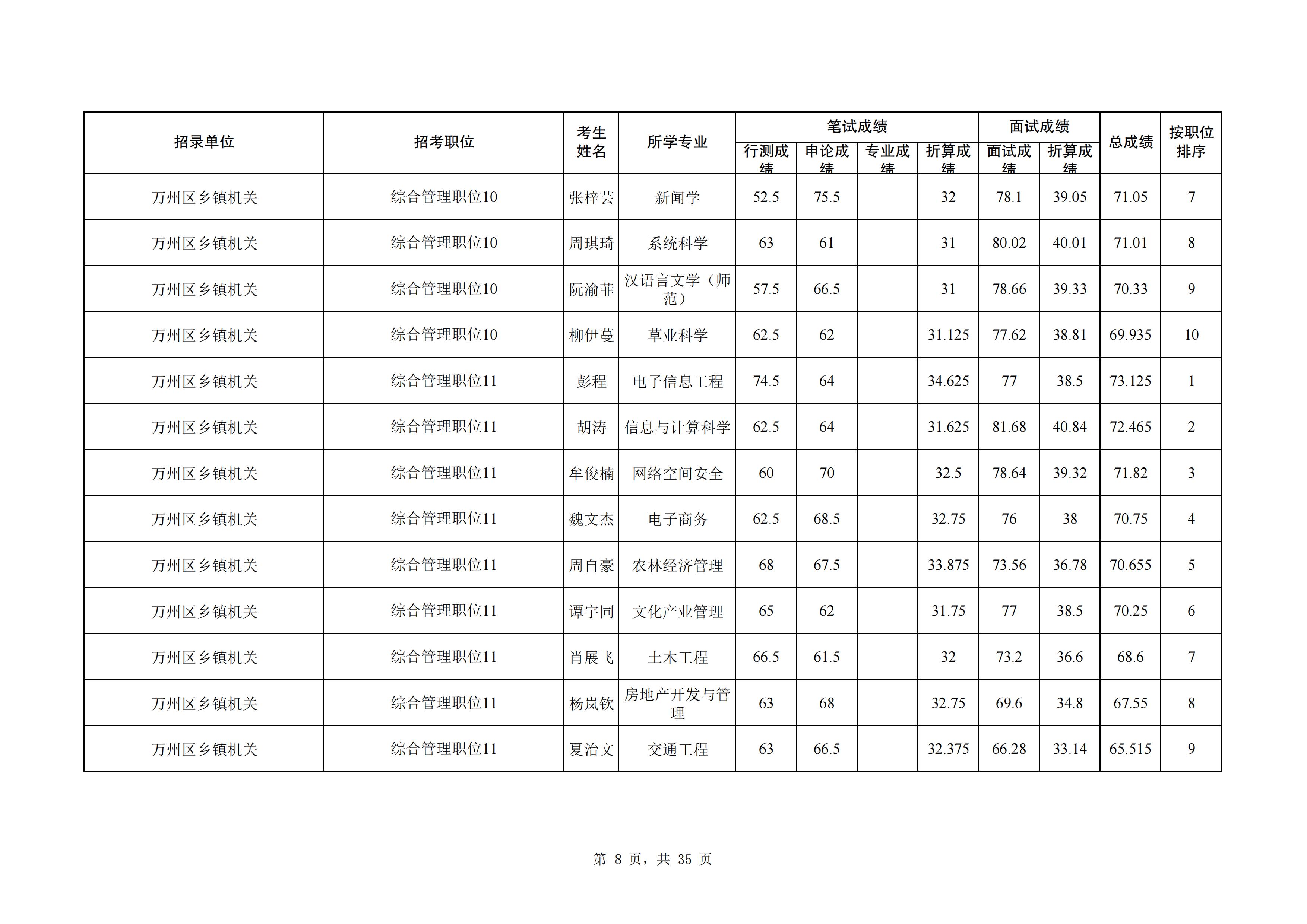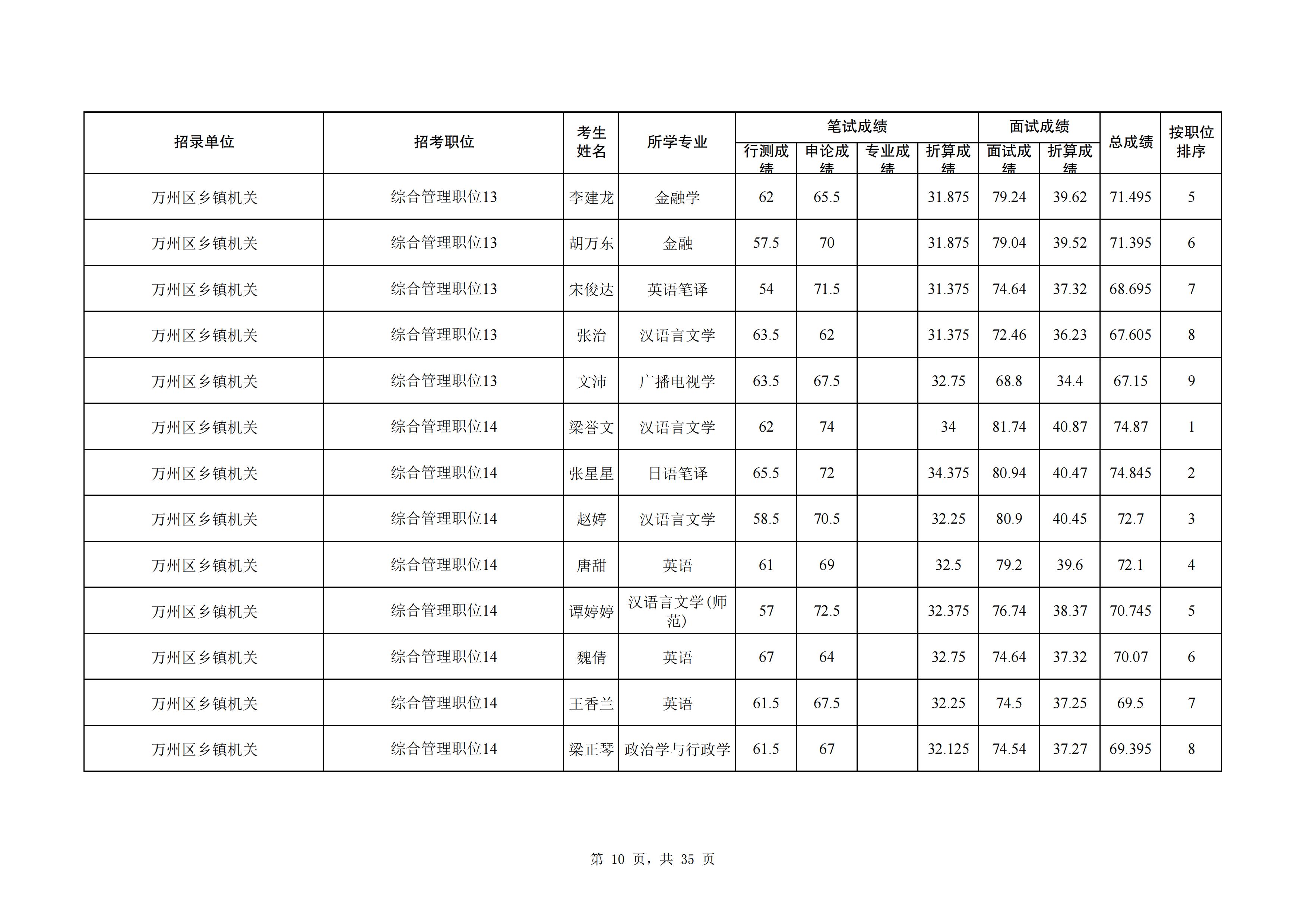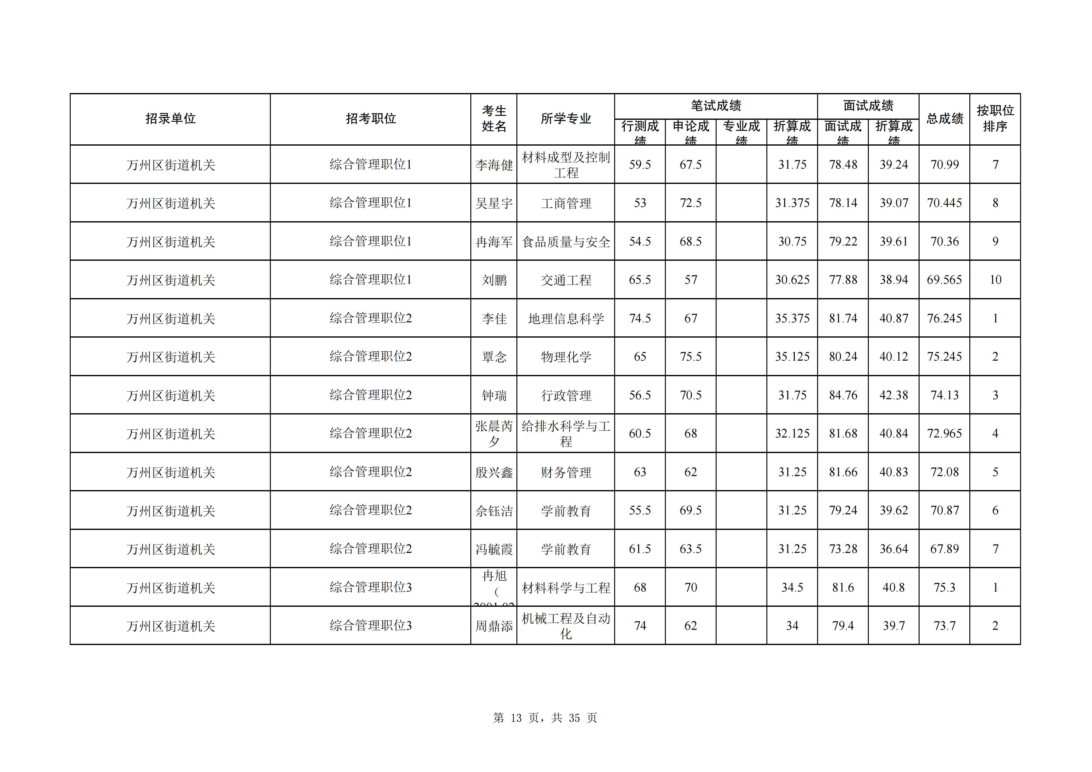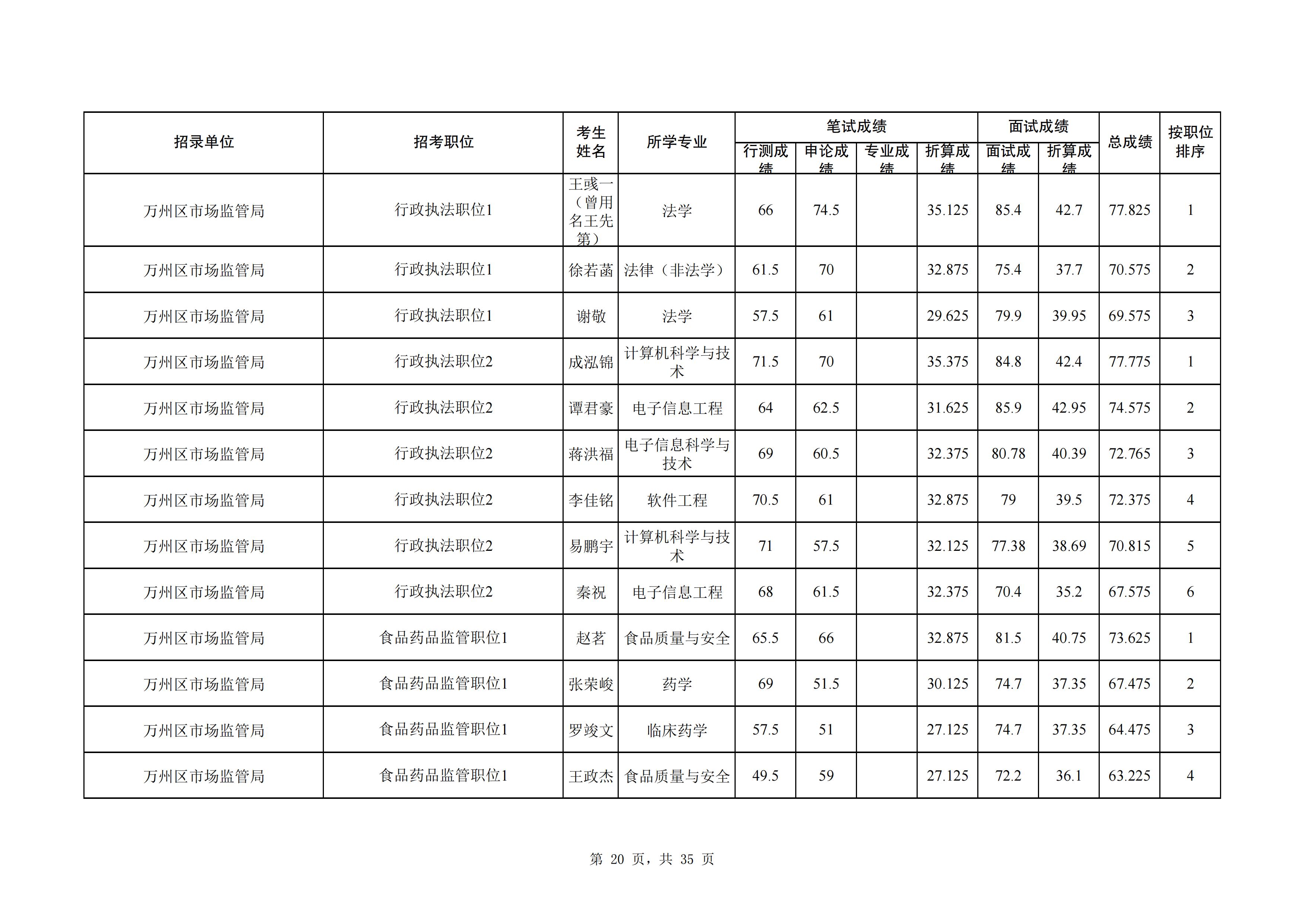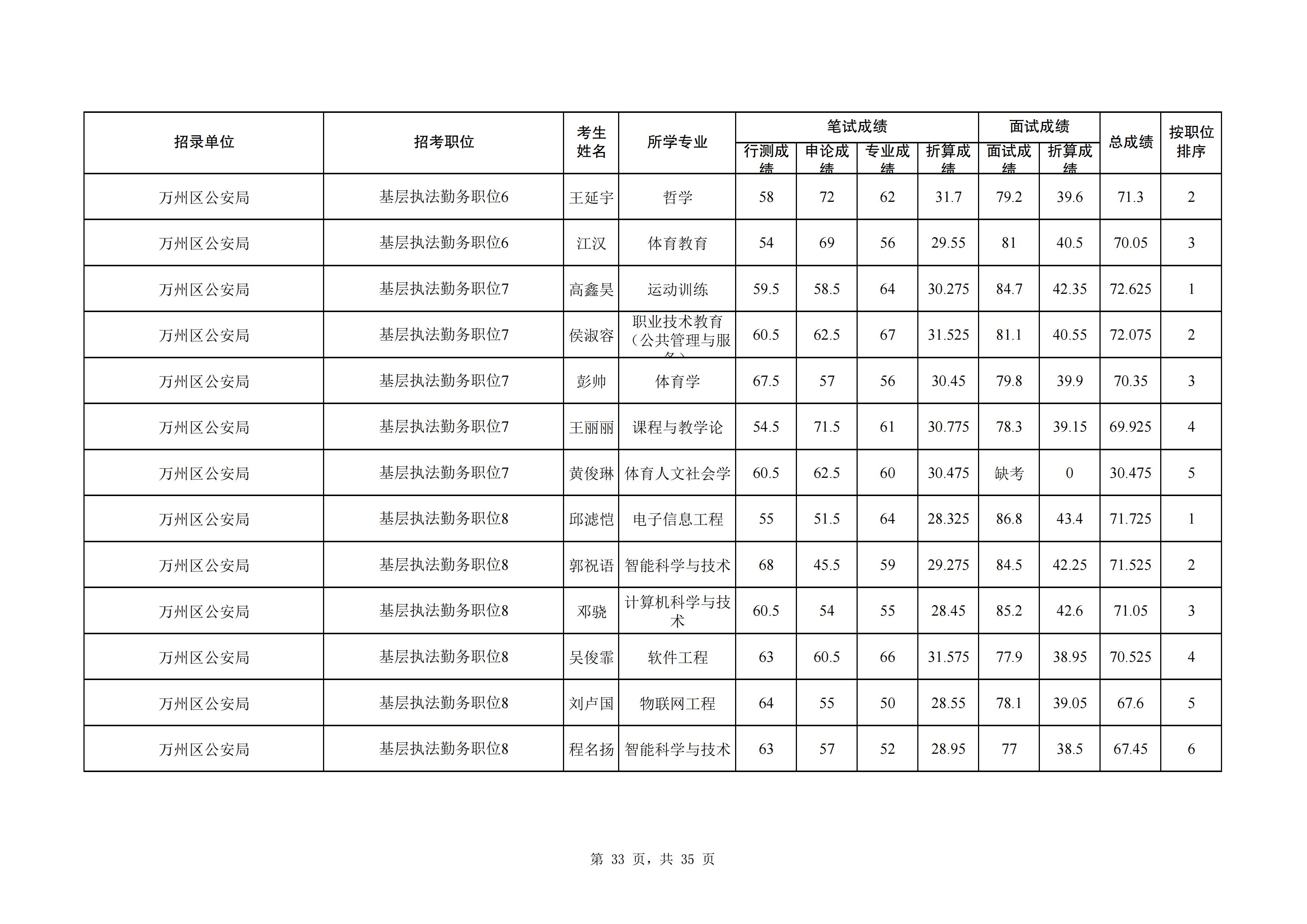 万州区2025年度考试录用公务员笔试、面试和总成绩公布表