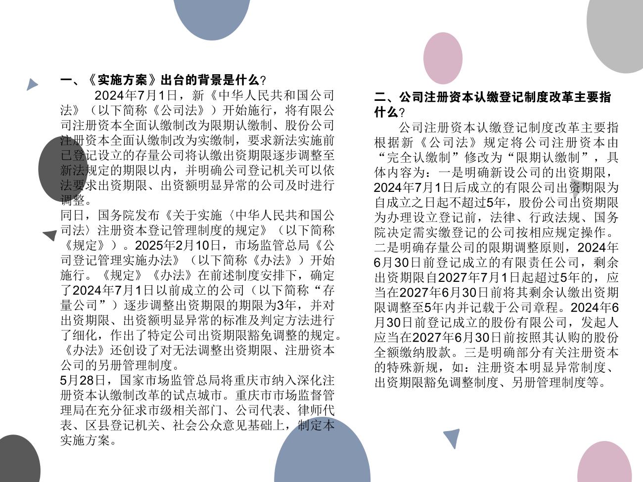 【政策问答图解】《重庆市深化公司注册资本认缴登记制度改革实施方案(2025——2027年)》